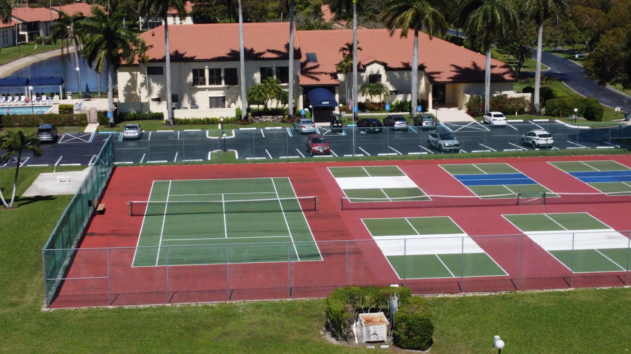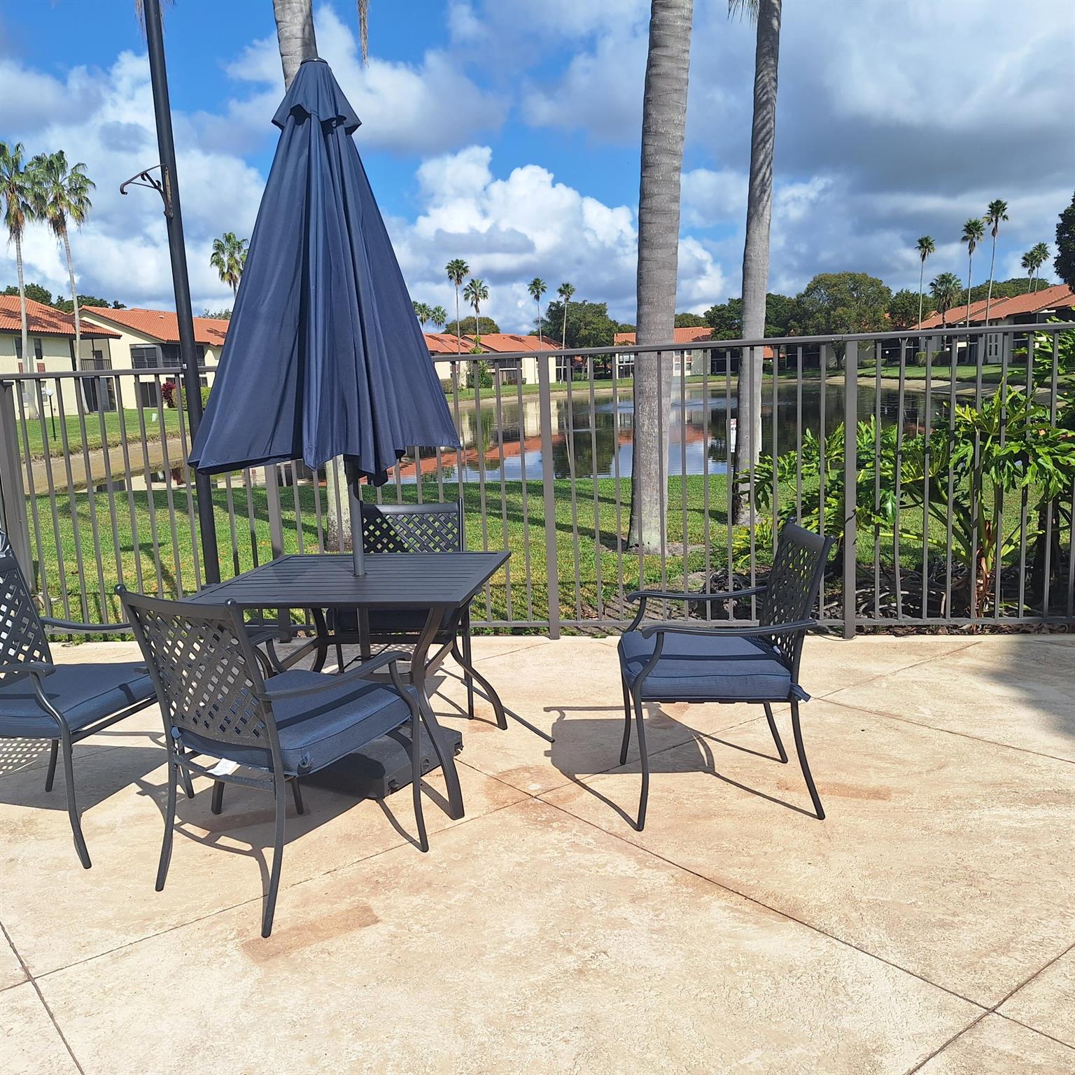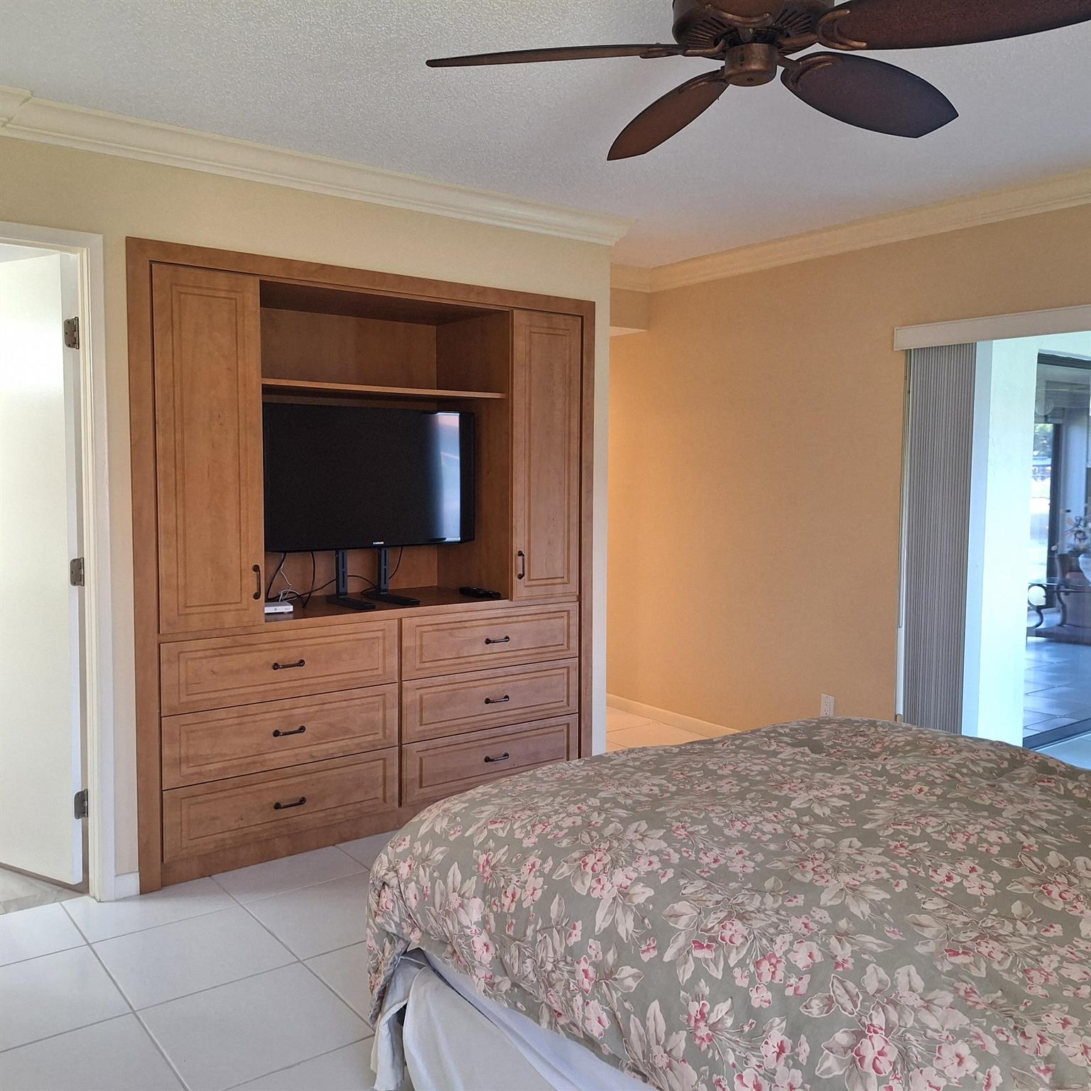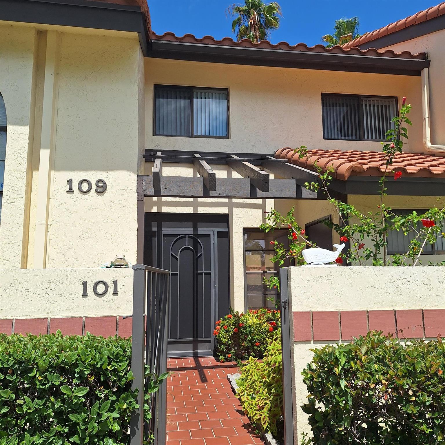 Reduced - bring your offer!! Bright, spacious, ground floor quad in sought after Palm Chase Lakes. The open great room showcases the stunning renovations from top to bottom. Starting with granite counters and stainless steel appliances in the kitchen and including the beautifully finished bathrooms, California closets, built-ins, crown molding, fans and so much more! Two bedrooms plus a den that can be readily converted to a third bedroom or office. Relax in the closed-in lanai overlooking a calming water view. Walking distance to houses of worship. Come join all the activities in this 55+ community!