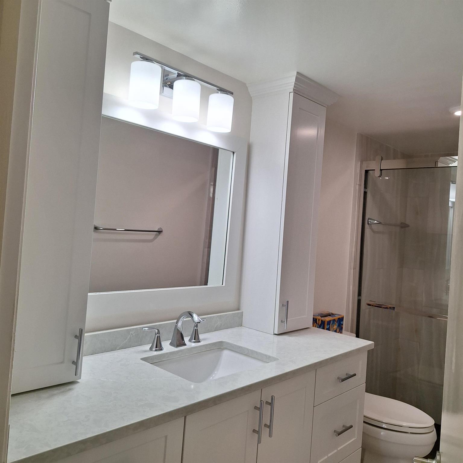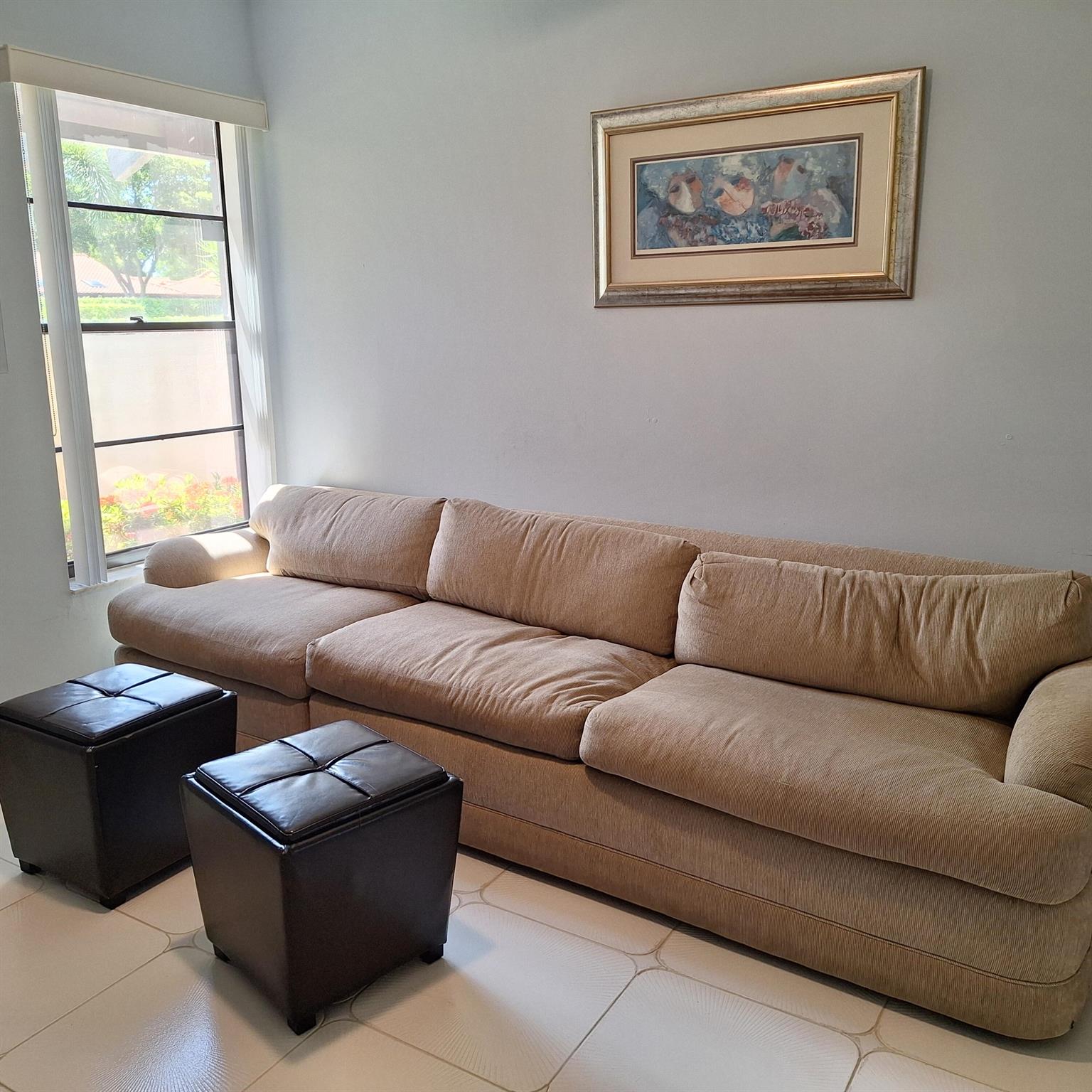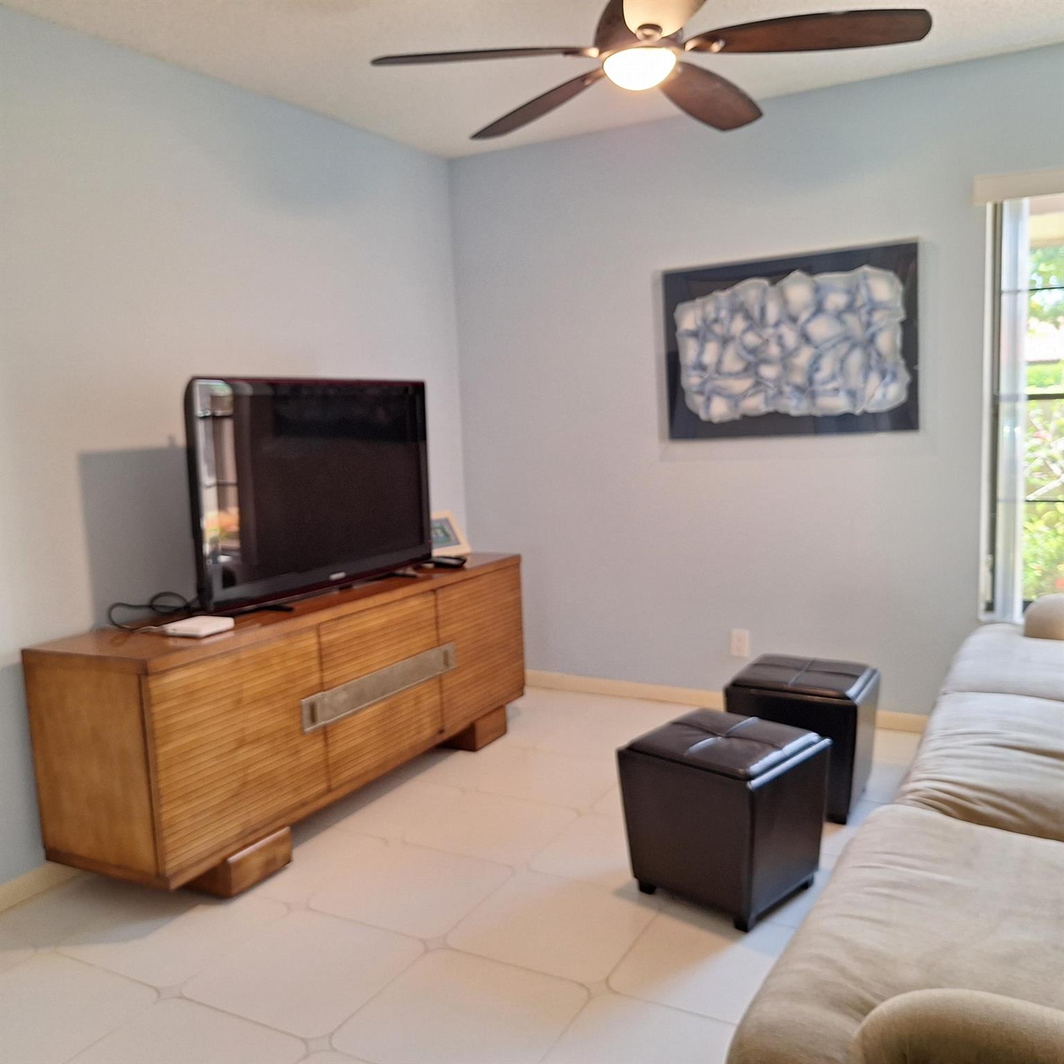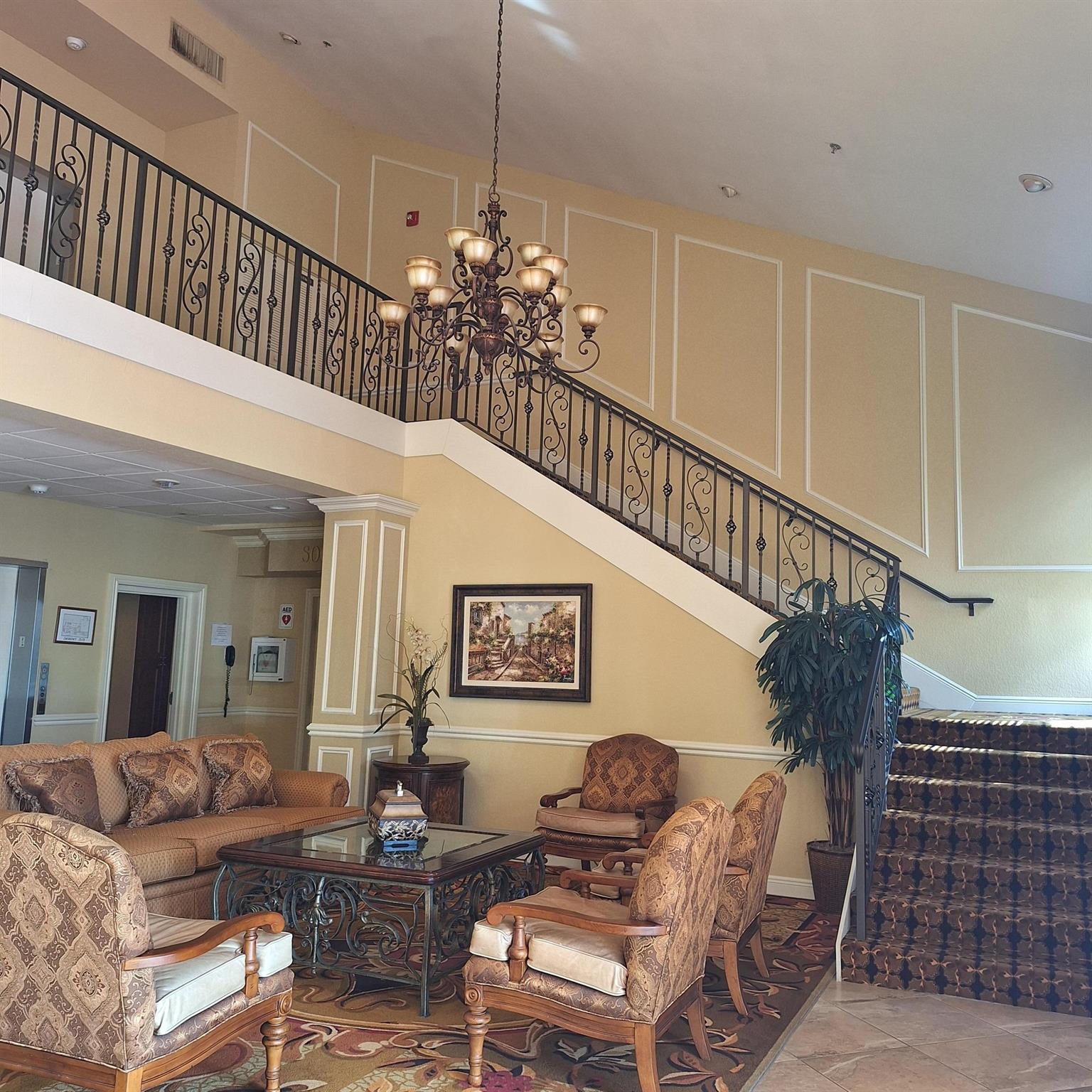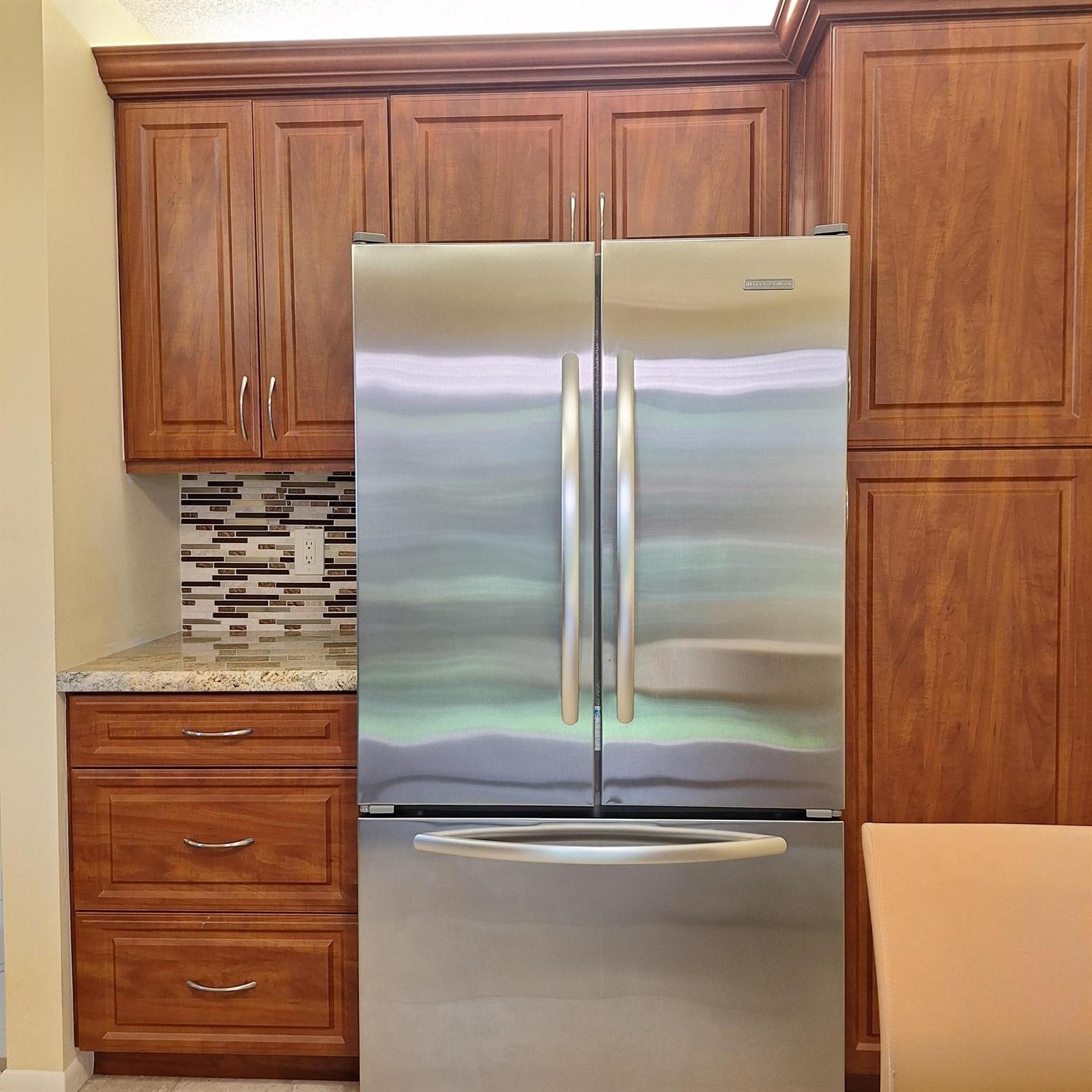 Reduced - bring your offer!! Bright, spacious, ground floor quad in sought after Palm Chase Lakes. The open great room showcases the stunning renovations from top to bottom. Starting with granite counters and stainless steel appliances in the kitchen and including the beautifully finished bathrooms, California closets, built-ins, crown molding, fans and so much more! Two bedrooms plus a den that can be readily converted to a third bedroom or office. Relax in the closed-in lanai overlooking a calming water view. Walking distance to houses of worship. Come join all the activities in this 55+ community!