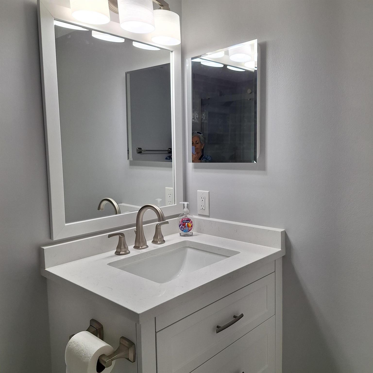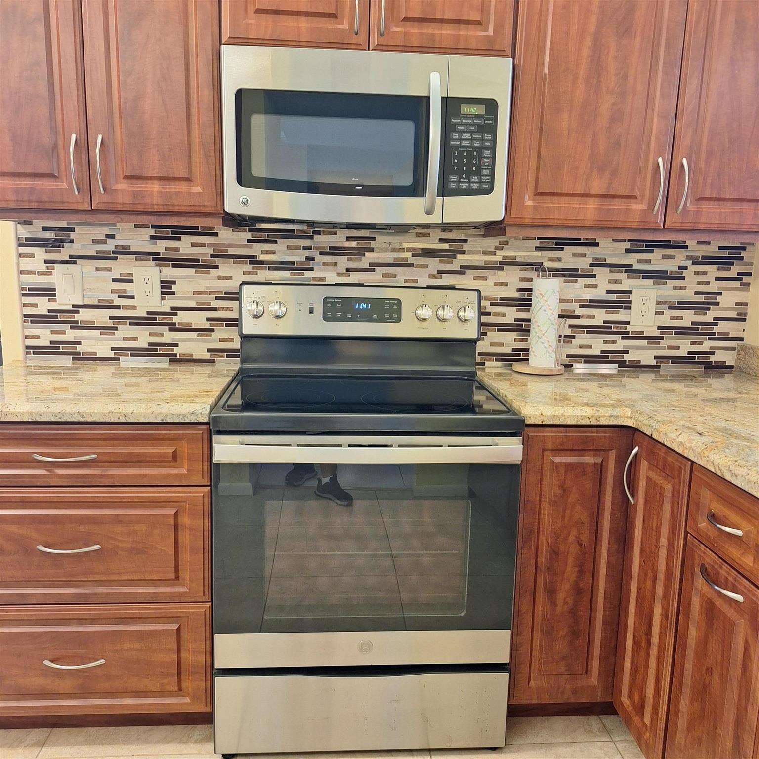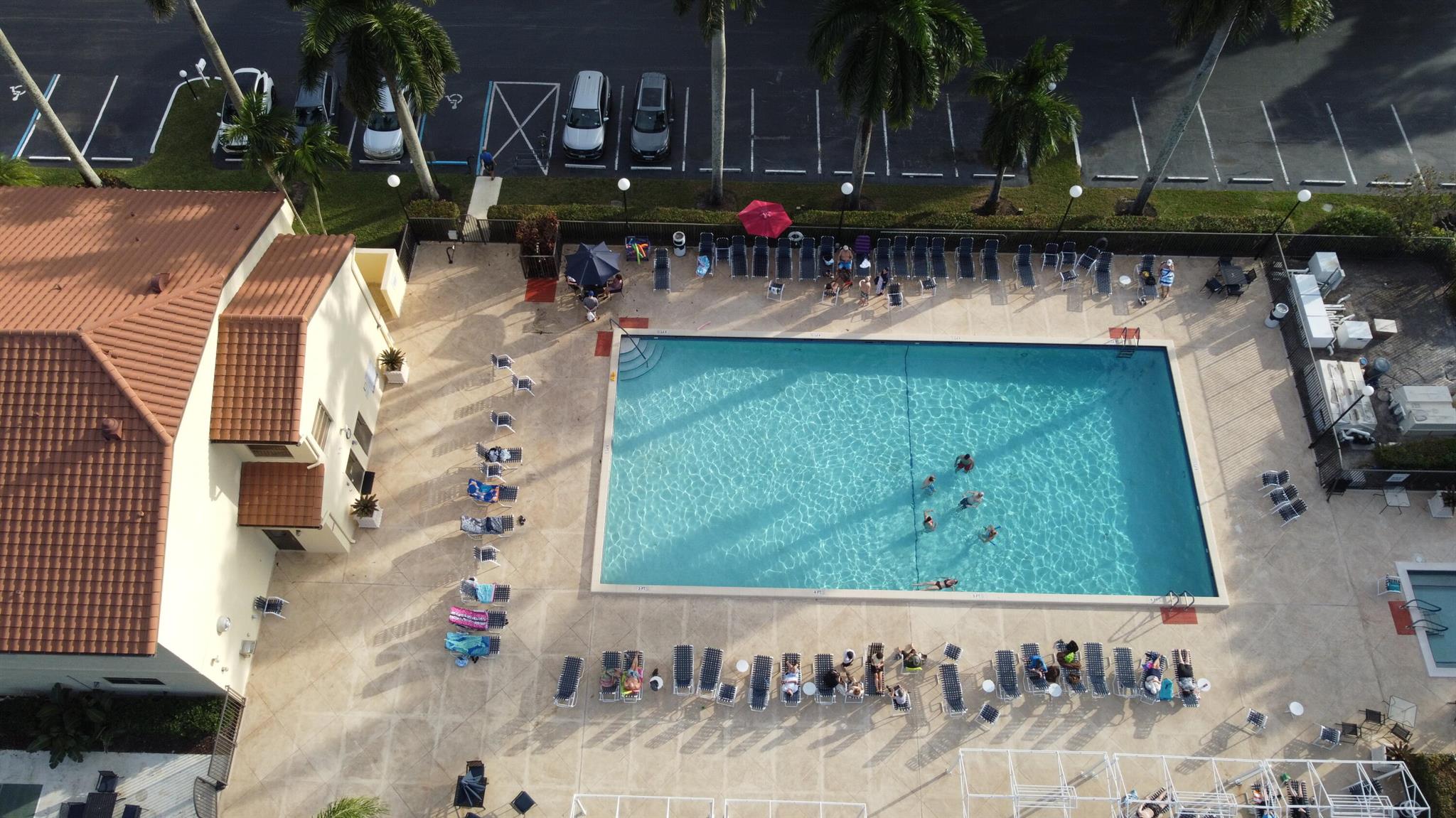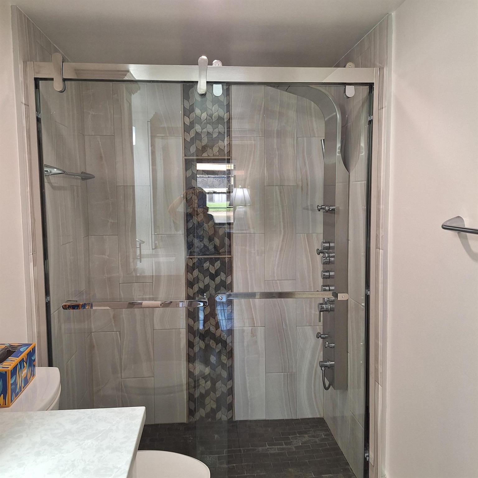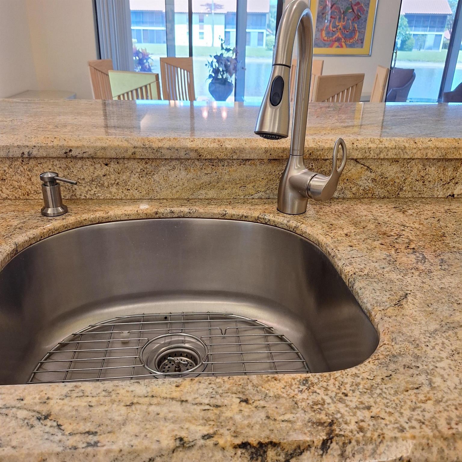 Reduced - bring your offer!! Bright, spacious, ground floor quad in sought after Palm Chase Lakes. The open great room showcases the stunning renovations from top to bottom. Starting with granite counters and stainless steel appliances in the kitchen and including the beautifully finished bathrooms, California closets, built-ins, crown molding, fans and so much more! Two bedrooms plus a den that can be readily converted to a third bedroom or office. Relax in the closed-in lanai overlooking a calming water view. Walking distance to houses of worship. Come join all the activities in this 55+ community!