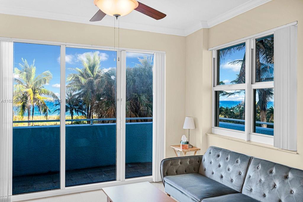 Direct Oceanfront Views –Lowest priced 3 Bedroom in Surfside with 2 Parking spaces! Live in a upscale beach town known for its uncrowded, pristine beaches! The Waverly is a boutique high-rise, this 3-bedroom, 2-bath, split level layout residence offers 1,239 SF of living space with 321 SF wraparound terrace and ocean views from every room. Updated kitchen, tile floors, washer/dryer, impact windows & doors, and a new A/C. Highspeed internet included, fitness center, beachfront pool, BBQ area, lounge with billiards, volleyball court, and on-site management. Pet-friendly and surrounded by luxury neighbors like Four Seasons & Fendi Château. Walk to Bal Harbour Shops, top restaurants, grocery, and places of worship.Beachside paths for biking, running, and walking. Reserves included in HOA fee.