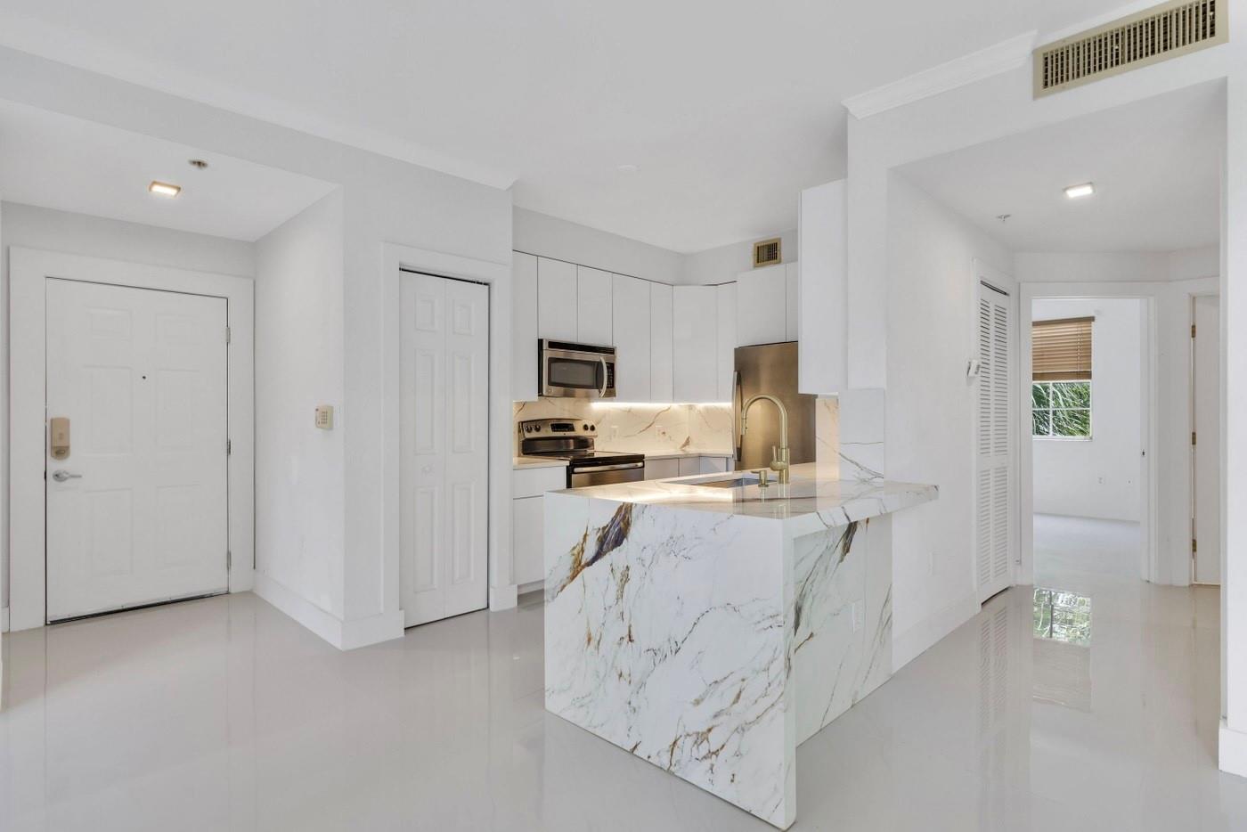Absolutely Gorgeous Completely Renovated 3 Bed 2 Bath Condo in the Prestigious Gated Community Flagler Pointe Condominium in Downtown West Palm Beach! Welcome to Luxury, This corner Unit Features New Luxury Imported 48x48 Porcelain Tiles! Luxury Bookmatch waterfall Quartz Countertops with Full backsplash! European Cabinets! SS Appliances, New Modern Sink with New Faucet & Disposal! Completely Renovated Primary & Guest Bathroom with New Vanities, New LED Mirrors, New Toilets, New Shower Heads! New Recessed Lights, New Baseboards! Freshly Painted, Washer & Dryer inside the unit! Private Balcony, 2 Assigned Parking. Huge Community Pool, Gym, Clubhouse, Sauna! Minutes to The Beach, Highways, Shopping, Restaurants! PROPERTY LEASED UNTIL 30/09/26 at $3450 a month. Buyer to assume tenants.