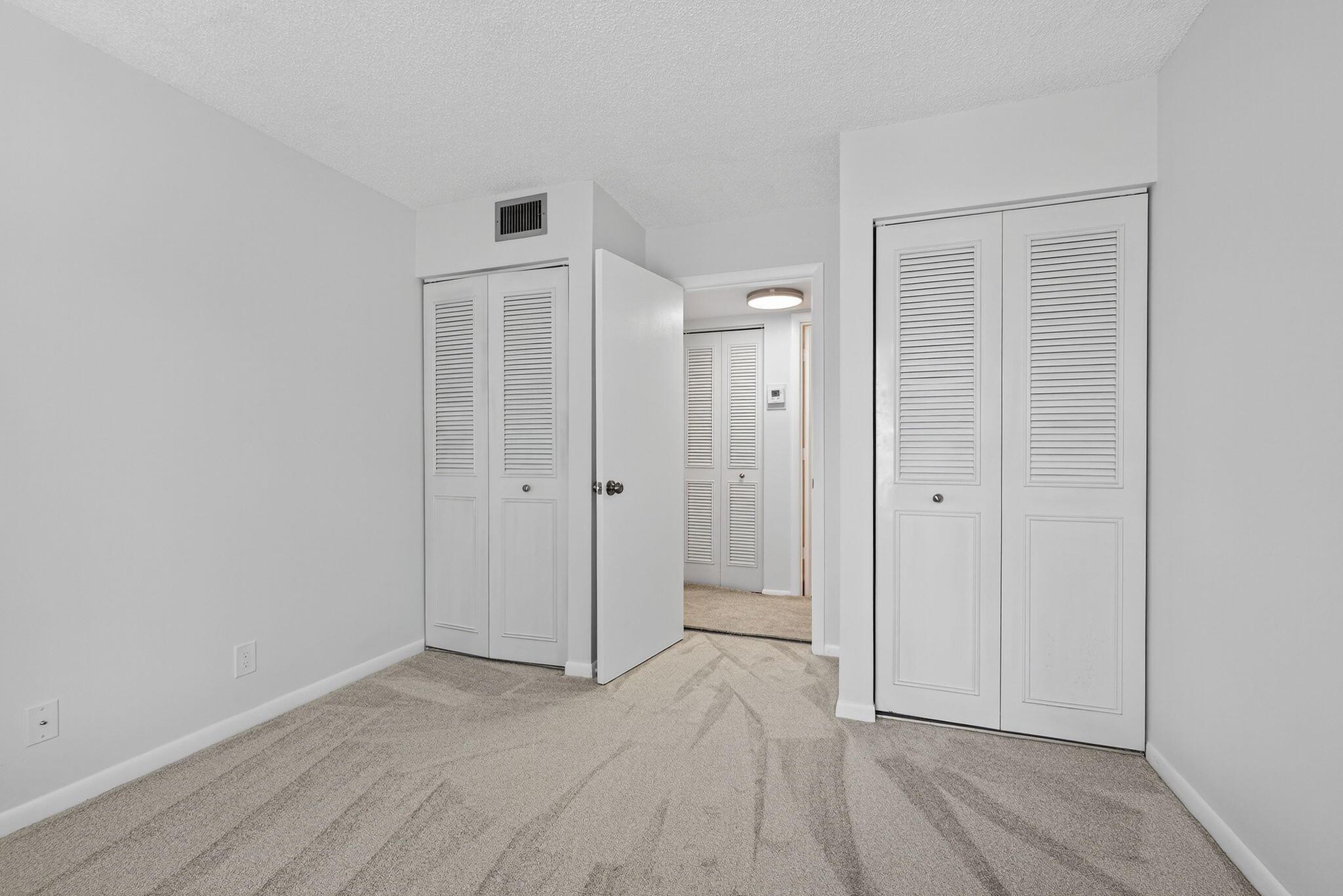 LOCATION, LOCATION, Newly painted, Light and Bright spacious 2 bedroom, 2 bathrooms. NEW Stainless Steel Appliances, NEW lifetime waterproof vinyl plank flooring, NEW high quality neutral carpeting , New Hot water heater, A/C 2023, walk in closet, eat in kitchen, inside laundry room with full size Washer & Dryer, Brand NEW screens, large attic storage space. This unit has a prime parking spot directly outside the unit and plenty guest parking. Seller is willing to contribute $5000 towards buyers closing costs with a full price offer. Palm Club II has reserves & is FHA Eligable. 24 hour manned gated community with community pool, clubhouse, tennis courts, bike/jog path, & wooded landscaping. conveniently located close to I 95, Major shopping, Fine Dining,10 minutes to the airport.