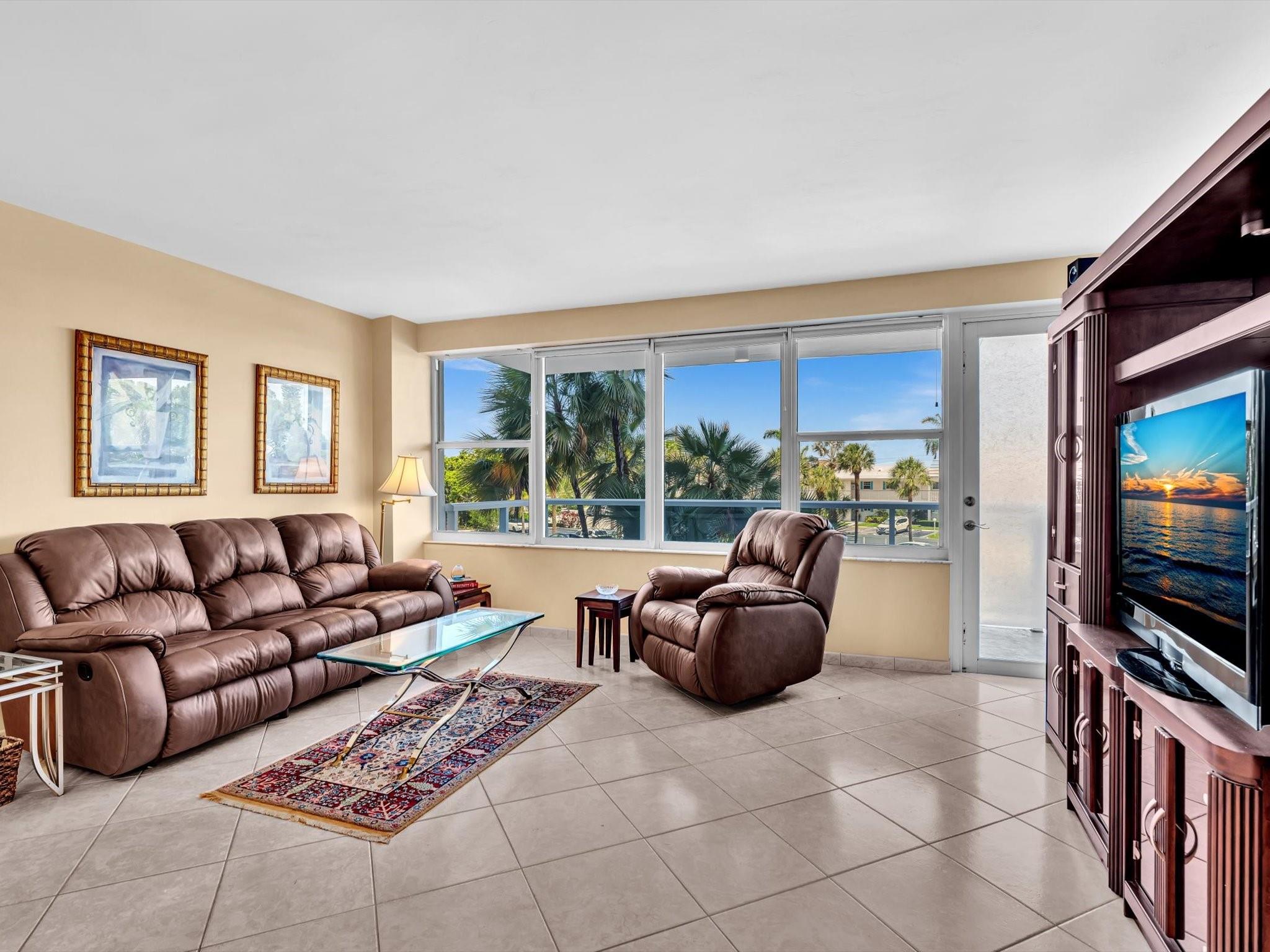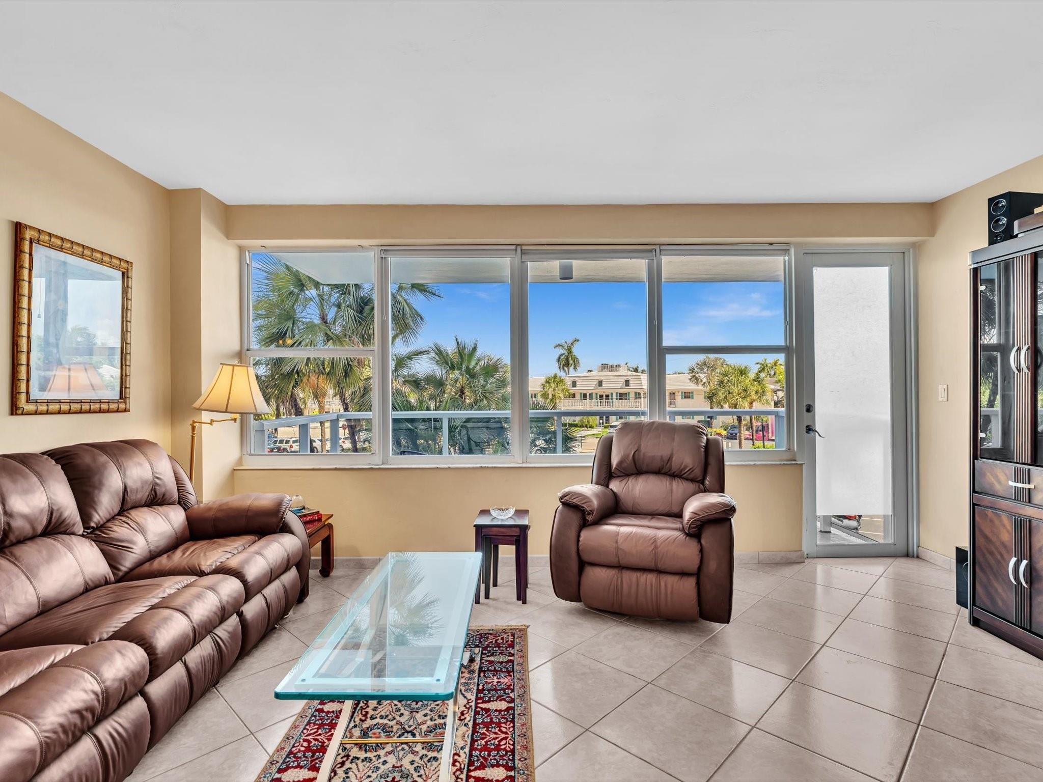 A+ resort style building with full amenities. Fully furnished and move in Ready by the beach. FINANCIALLY SOLID WITH NO UPCOMING ASSESSMENTS. Beautifully installed large, bright ceramic tiles flow seamlessly throughout this residence. Newly updated kitchen cabinetry with a fresh kitchen ceiling. Bath features carerra marbled walls. 55+ active community with many social events, resort style pool, fitness center, concierge desk and on site management. IntraCoastal clubhouse for your gatherings belongs to this buildings. In the middle of everything! Restaurants, shopping, golf, boating, entertainment. Water, sewer, trash, cable and internet included in maintenance. Building requires: one buyer to be age 55 or over, min 700 credit score, Cash only, no renting.
