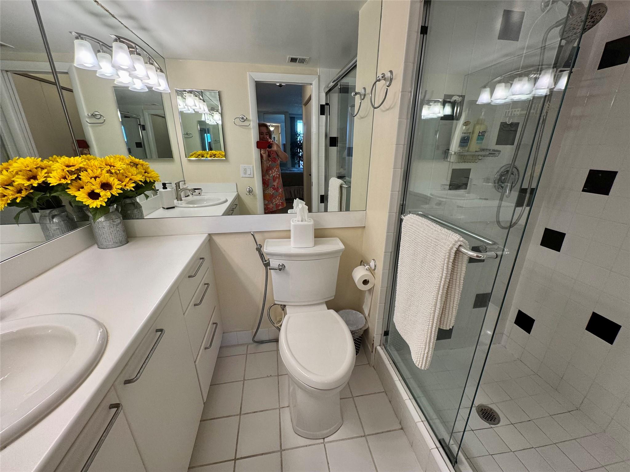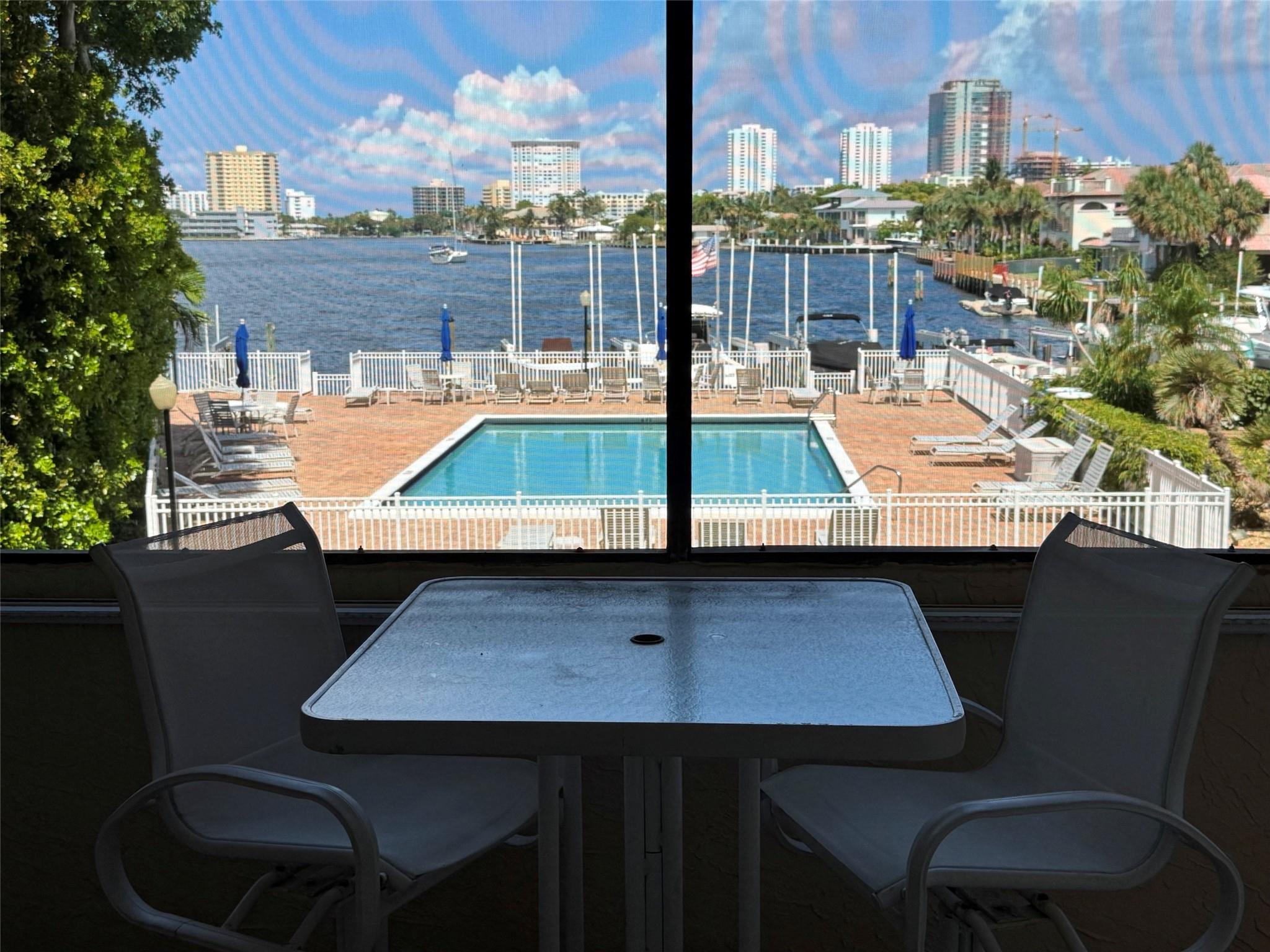 Enjoy direct water views from every room of the pool, marina, and ICW/Lake Santa Barbara! This spacious 2-bedroom, 2-bathroom unit boasts a 40-foot screened-in balcony accessible from the living room and both bedrooms, featuring impact windows and high-end sliding shutters. Inside, you'll find floor-to-ceiling sliders in the living room and bedrooms, custom blackout shades in the bedrooms, and large, neutral porcelain floor tiles throughout the living, dining, and kitchen areas. Both bedrooms have Berber carpet. This unit offers one of the largest 2/2 floor plans in the building, plus extra closet space and the largest covered parking space. Small pets ok.