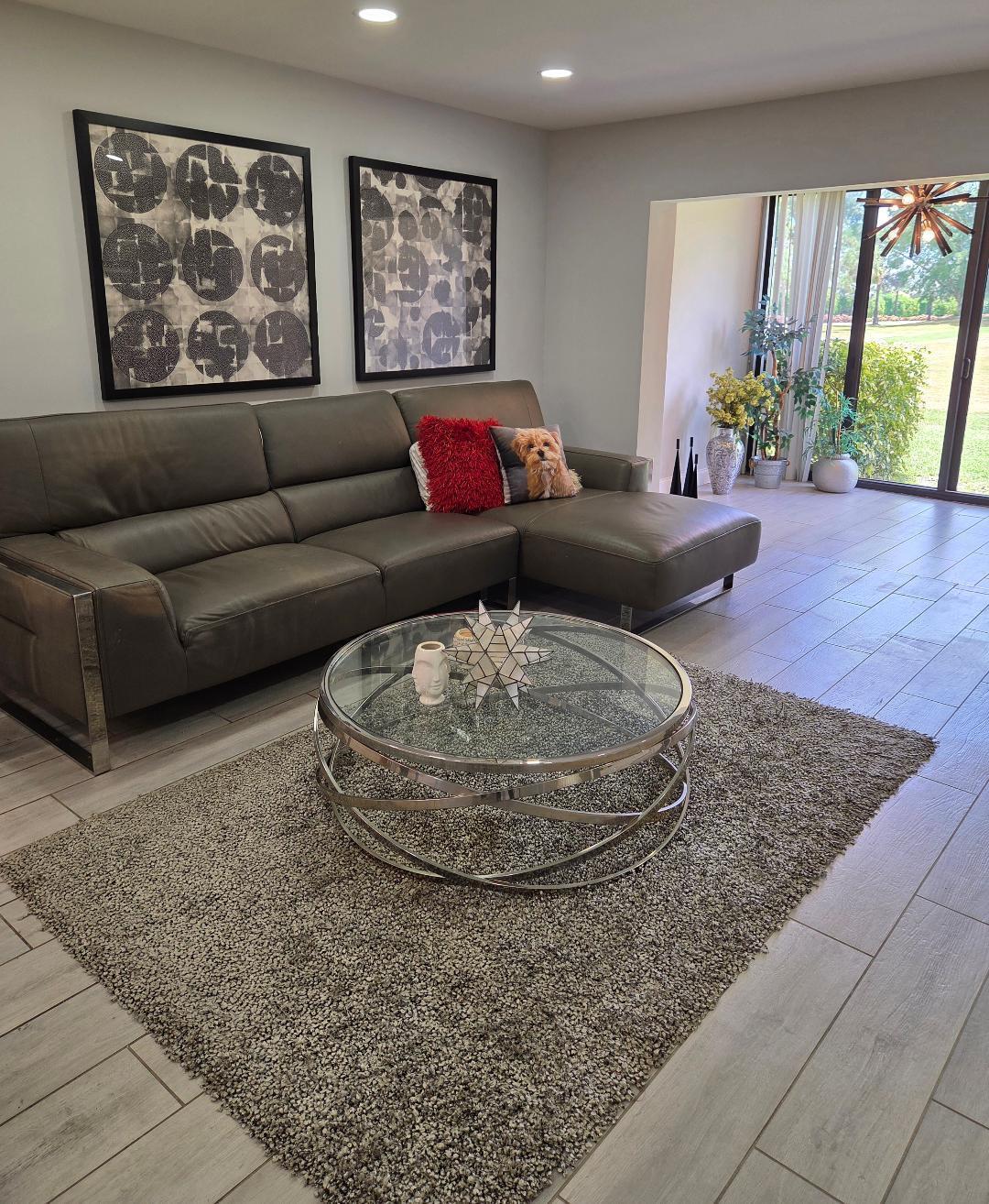 Welcome to Boca Lago! This beautifully updated first-floor condo features 2 bedrooms and 2 baths, perfectly positioned on the 4th hole of the golf course with breathtaking views. The renovated kitchen and baths boast a granite waterfall countertop, stainless steel appliances, and stylish ceramic tile flooring. Enjoy the glass-enclosed patio/den, impact windows, recessed lighting, and the convenience of being just steps from the pool and clubhouse. Offered furnished or unfurnished move right in and start enjoying the Boca Lago lifestyle!
