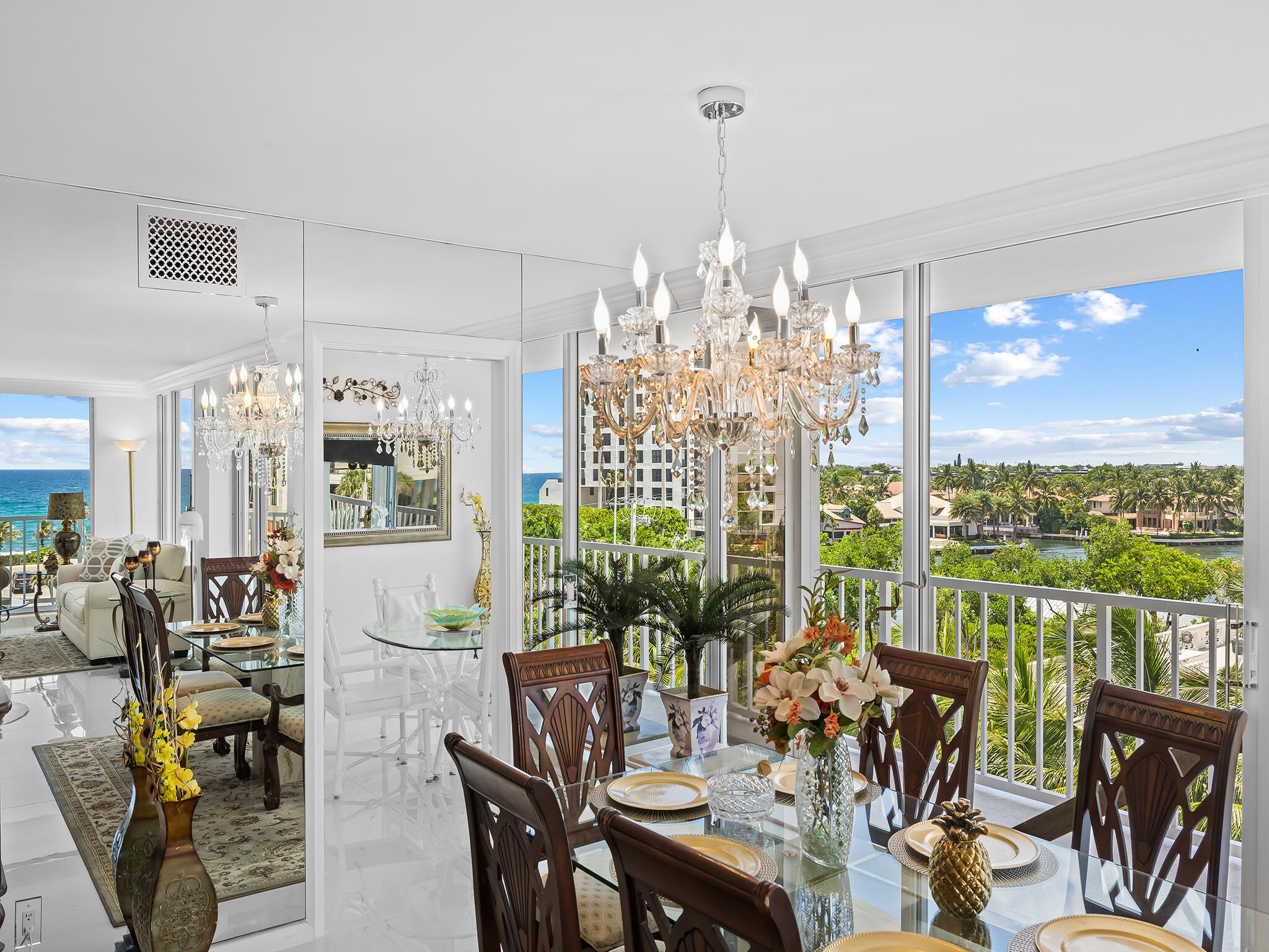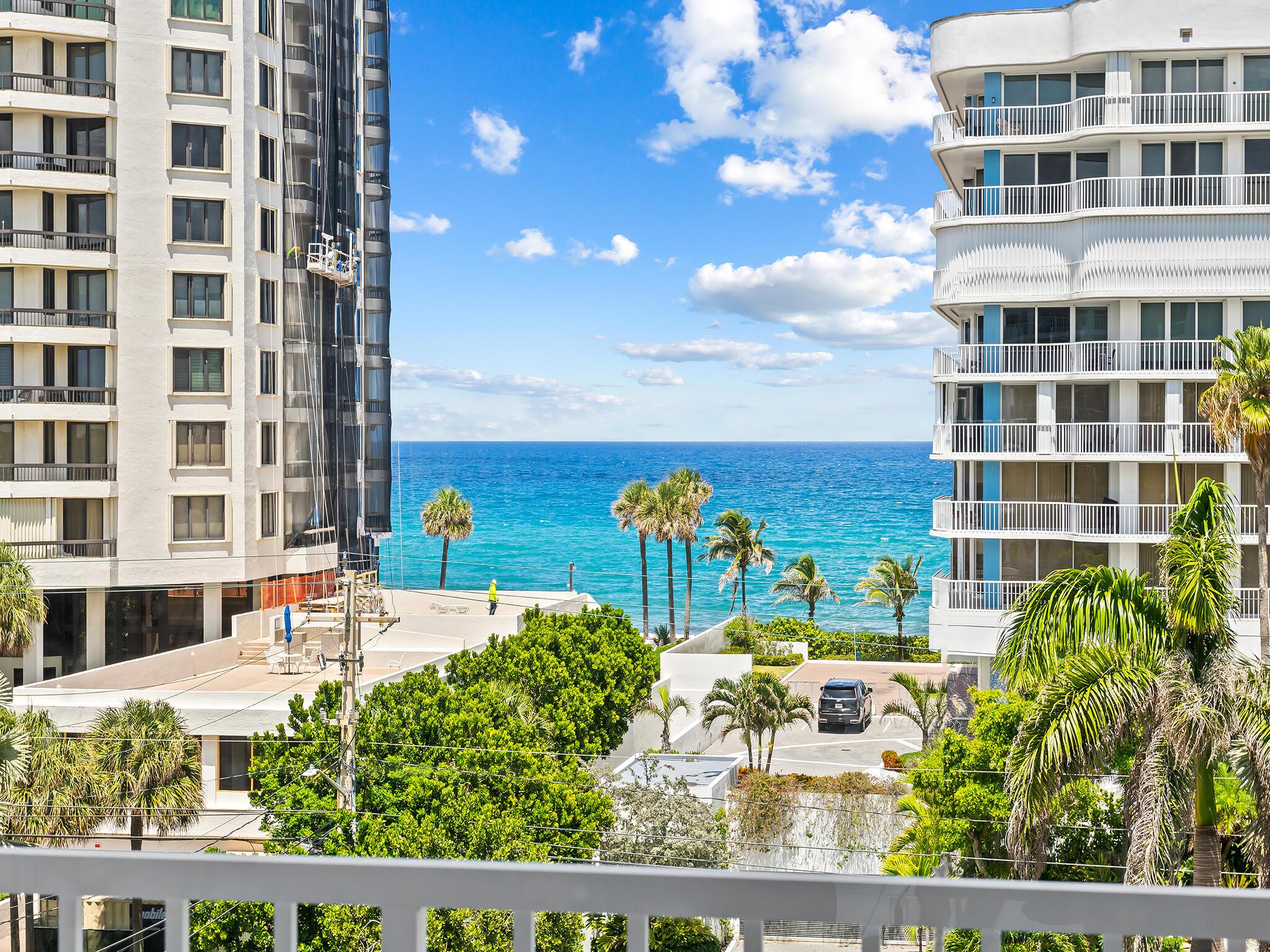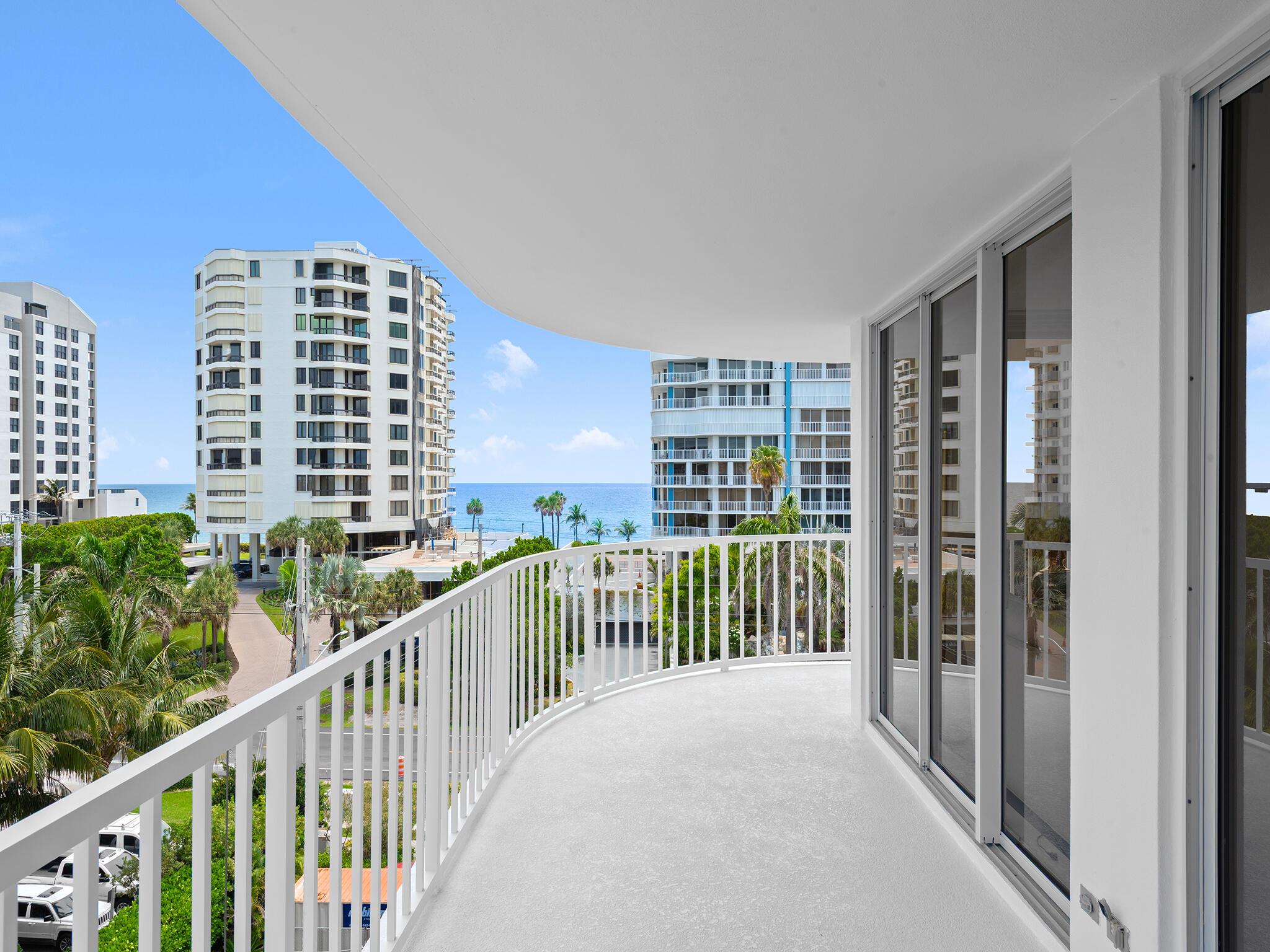 This Building is completing a beautiful exterior restoration! Beautiful wrap around balconies and striking ocean and Intracoastal views await! Make this generously proportioned, full 3 bedroom 3 bathroom residence your new coastal retreat! Floor to ceiling glass and newly installed shutters around the entire home. Enjoy Beach/Ocean access, beach storage & restroom, security, fitness, pool, hot tub,BBQ, garage parking. Located on the elegant, upscale barrier island of Highland Beach, and perfectly situated between the vibrant, happening Delray Beach and prestigious Boca Raton. Enjoy the best of nearby shopping and dining, while living in gem of a city on the Florida coast! Over $200,000 of recent improvements PAID for this unit, newly added shutters