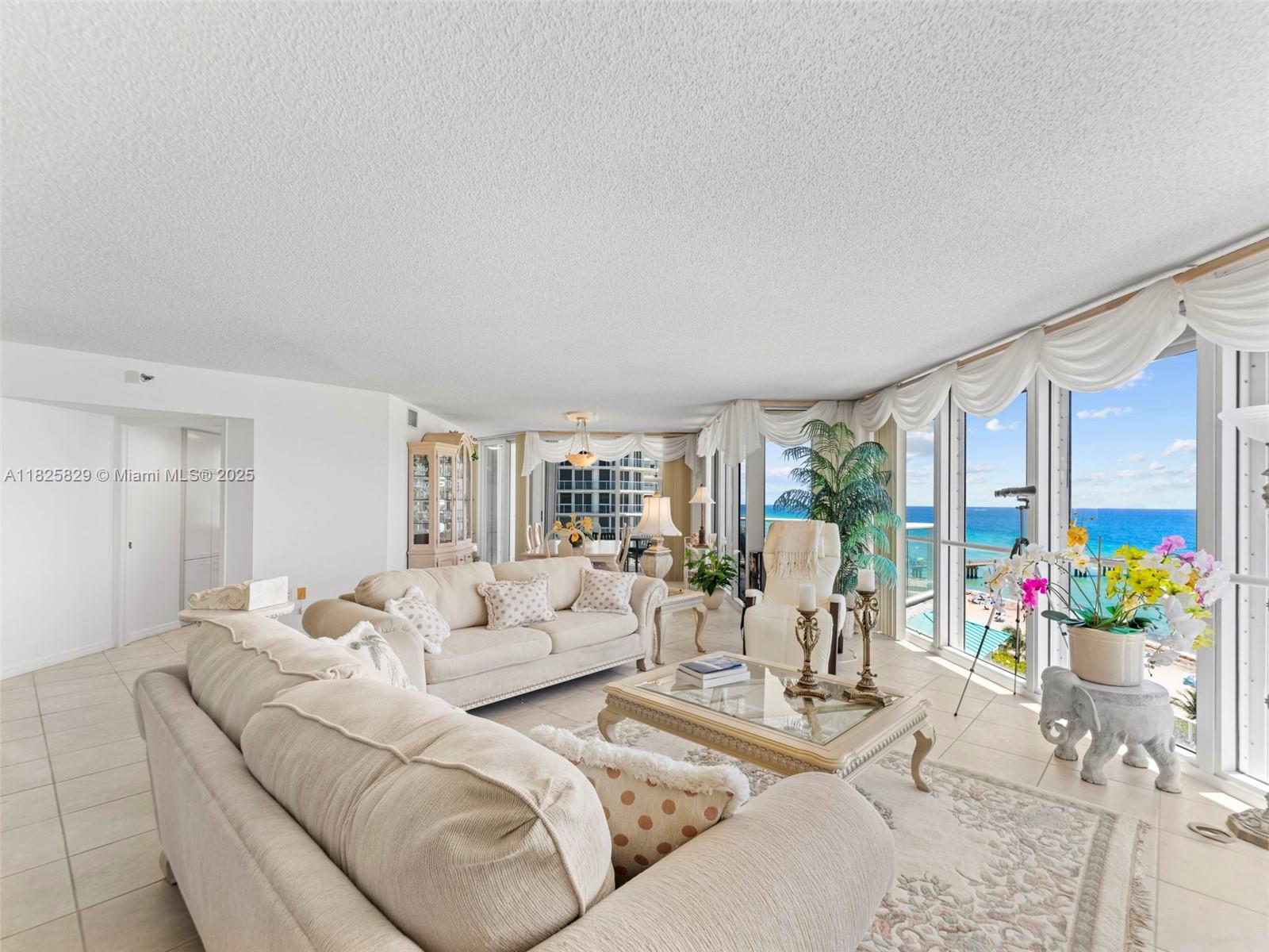 Stunning oceanfront residence with a rare feature: fully equipped cabana valued over $100,000. From the moment you step inside, you’re captivated by unobstructed views of the sparkling azure sea. This elegant apt features 2 bedrooms, 2.5 baths, and wraparound balconies with floor-to-ceiling windows and hurricane shutters. The luxurious primary suite offers a walk-in closet, dual sinks, balcony. Enjoy resort-style living