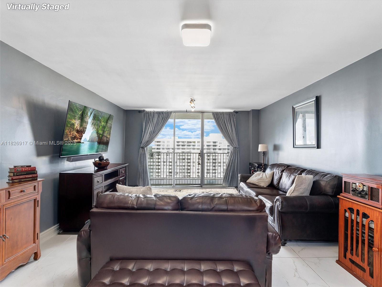 Stunning and contemporary condominium situated in an ideal location near Williams Island. This 2-bedroom, 2-bathroom unit spans 1220 square feet and boasts an abundance of natural light. Featuring chic white cabinetry, upgraded countertops, and stainless steel appliances, the kitchen exudes style. The primary bedroom offers ample space with a walk-in closet, while breathtaking views enhance the beauty of the surroundings. Residents can enjoy two heated pools, basketball courts, a fitness center, BBQ area, and tennis courts all within close proximity. Mortgage savings may be available for buyers of this listing.