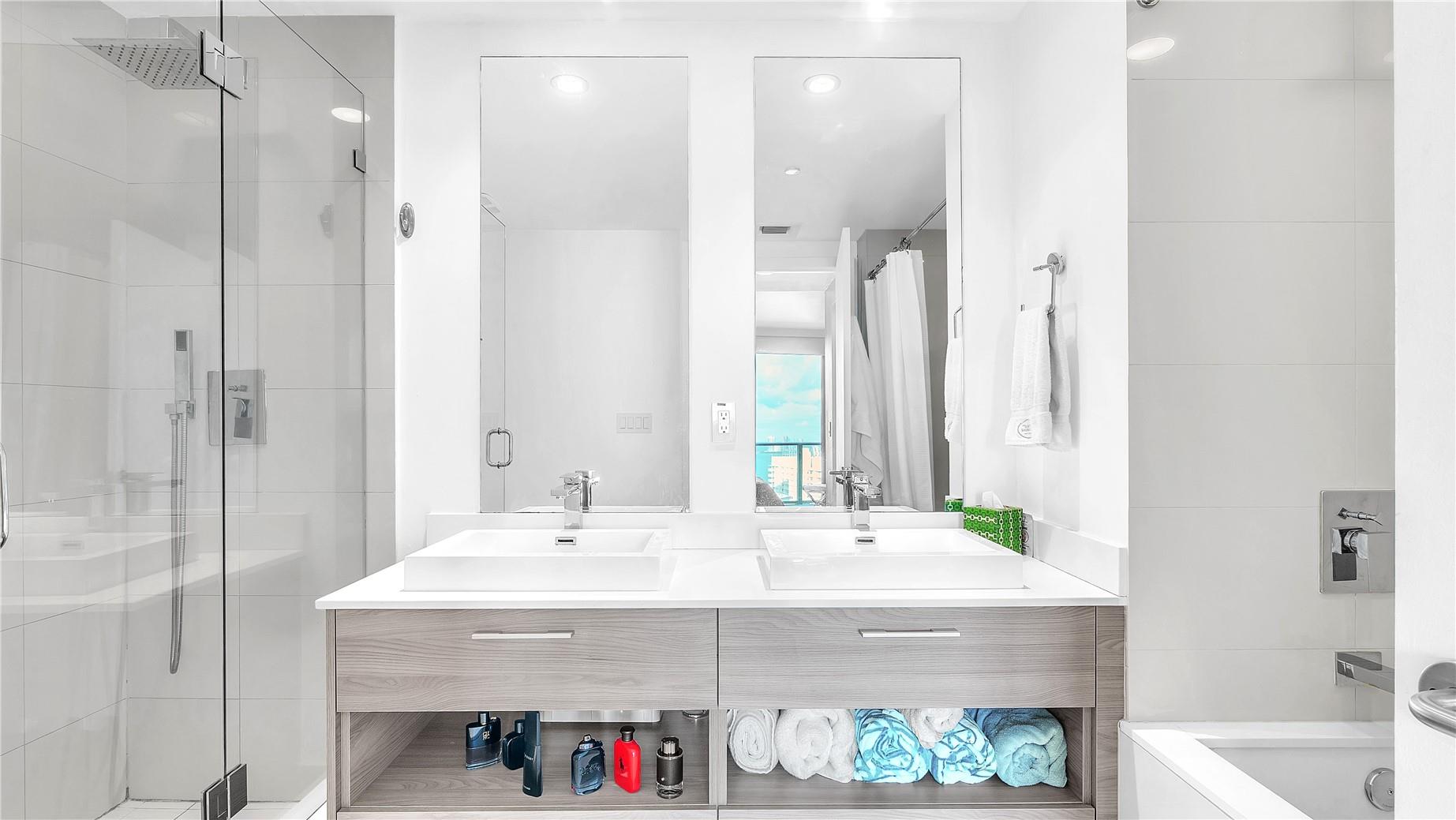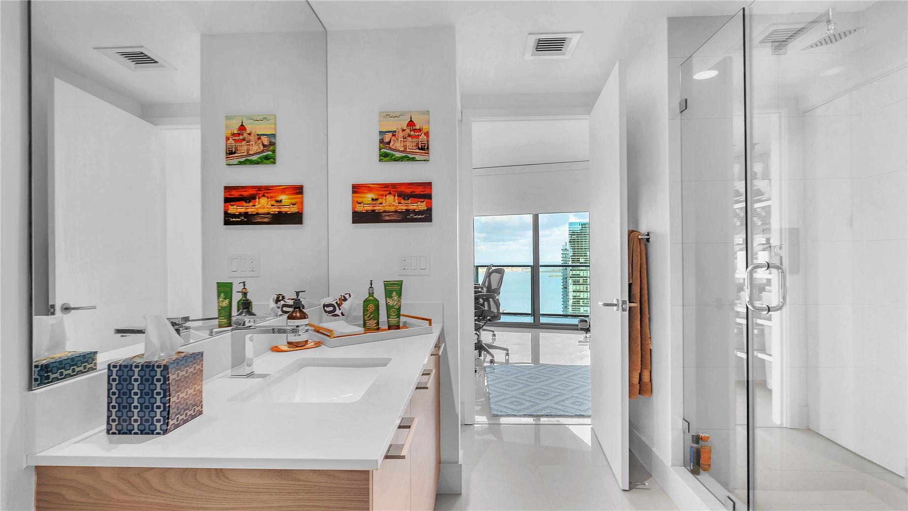 SELLER MOTIVATED!! Over $250K Total Price Drop! The Epitome of Stunning & Elegance from the moment you enter this Spectacular Brickell Condo with Gorgeous, Breathtaking Bay, Ocean & City View 2BR + Den, 2 Bathrooms with Spacious living quarters, Porcelain Tile Flooring, High Ceilings, Bosch Appliances, California Closets, His/Hers Dual Sink Master Bath with Shower/Tub Combo, Glass Shower in second bedroom. Amenities include a Rooftop Pool, Bar & Lounge Area with 2 Additional Pools, Restaurant, State of the Art Fitness Center, Business Center, Party Room, Billiard Room, Theatre Room, Full Concierge. Short drive to Midtown, Banks, Shops, Fine Dining & Miami International Airport. Actual Interior Sq. Feet is 1332.