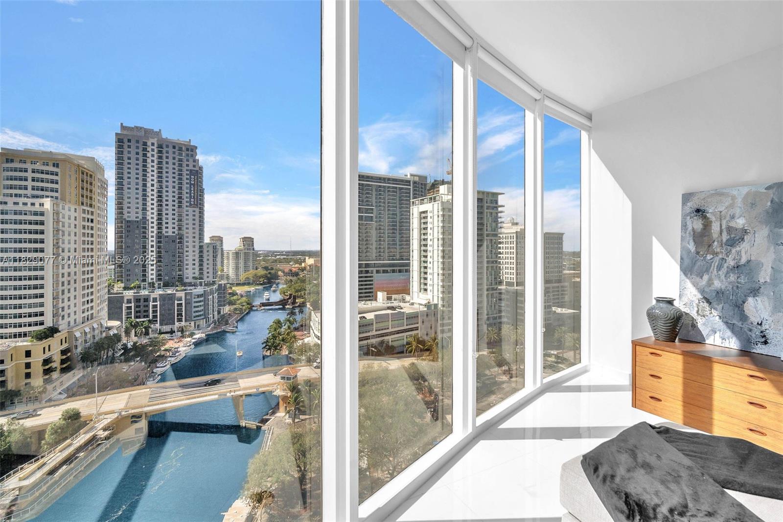 Completely re-imagined contemporary riverfront Soho with interior walls of glass. Spacious open concept with huge New River & park views in Las Olas River House. Semi-private elevator foyer. 2/2 with floor to ceiling round radius glass offering dramatic New River views from every room. Modern glass walls leading into bedrooms create an urban loft vibe. Very rare opportunity! Building is financially secure. Spending 13M on upgrades & improvements to protect property values. No better time to buy in River House! Top-tier luxury tower offering walkable urban life at its best on the New River, celebrated Riverwalk & famous Las Olas Blvd. World class amenities, Hyatt, Eddie V's, Moxies & Publix just steps away. City is spending 15M next door in the park & adding a 5M Sweetwater restaurant!