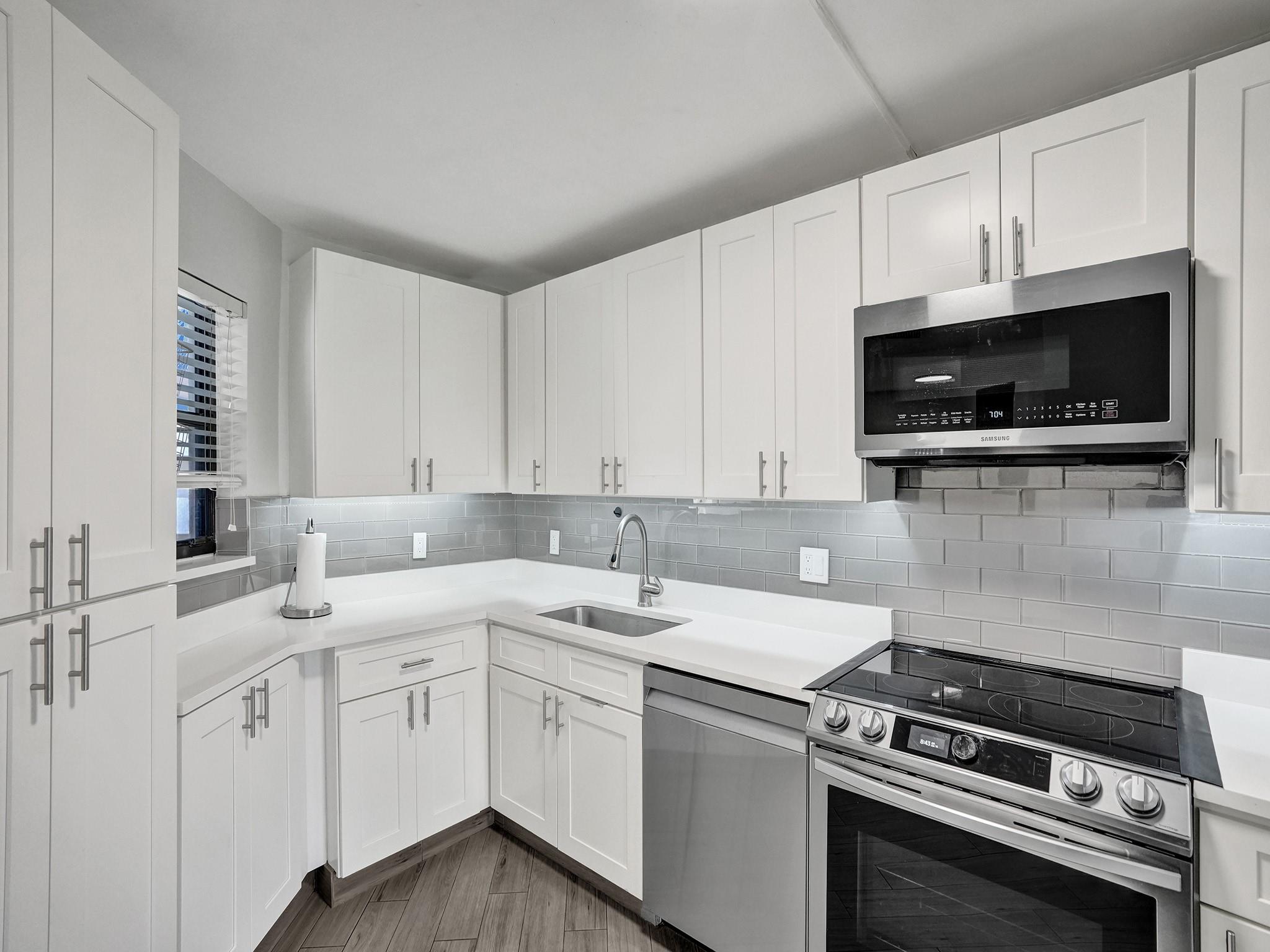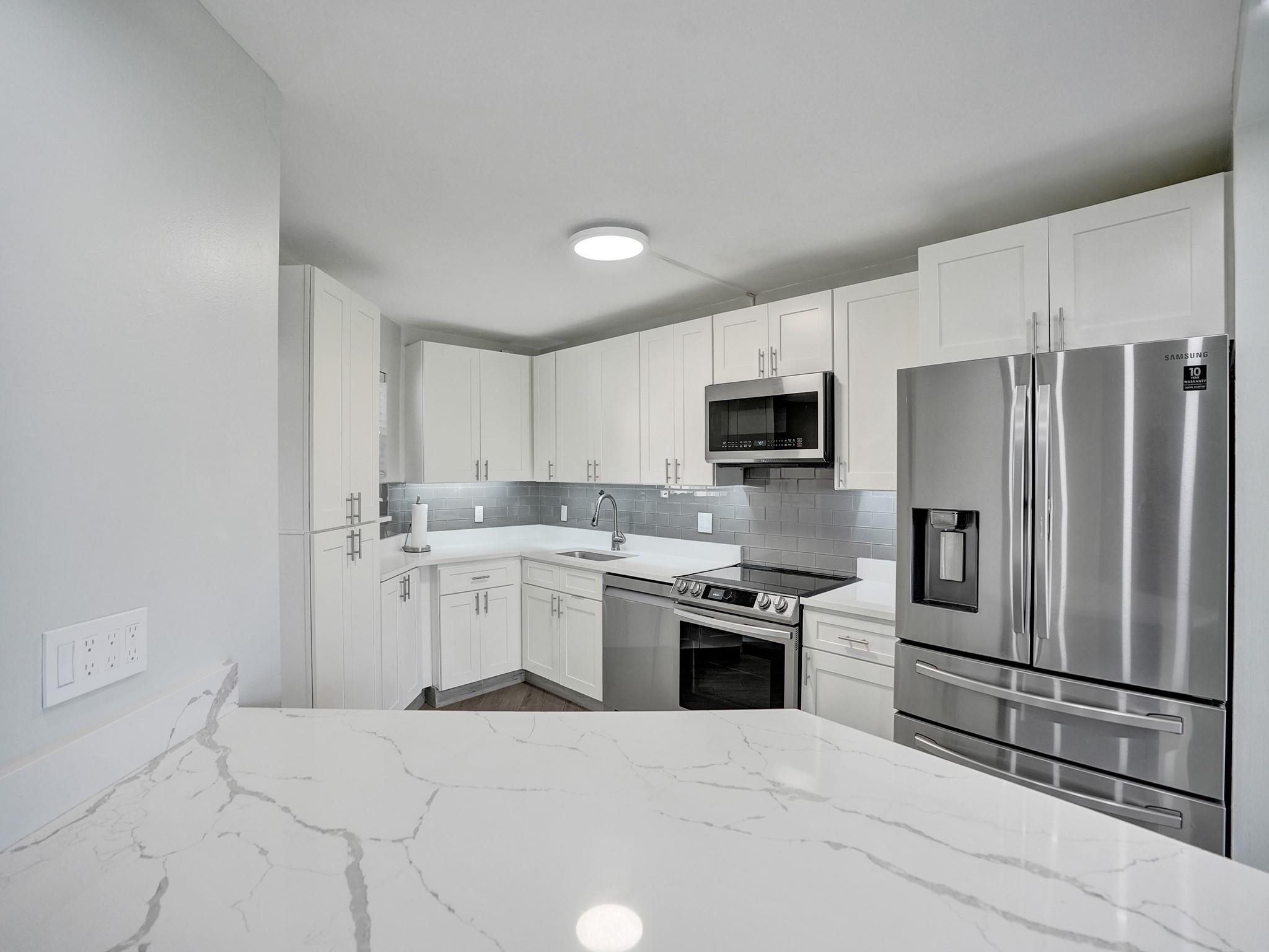 Welcome to this stunning remodeled 2 bedroom 2 bath unit located in this amazing 24 hours manned gated community Camino Real Village in Boca Raton. This community is close to top A rated schools, highways, restaurants. Newly renovated kitchen includes Samsung Appliances, Wine Cooler, Newer stackable washer and dryer. A/C and Heater was replaced in 2021, new floors, This unit offers oversized screened balcony, community has 4 heated pools, tennis courts, sauna and pickle ball courts. Unit has one-car garage, 1 assigned parking spot, and other guest parking. Beach is 5.5 miles away, Boca Town Center Mall is 3 miles away.