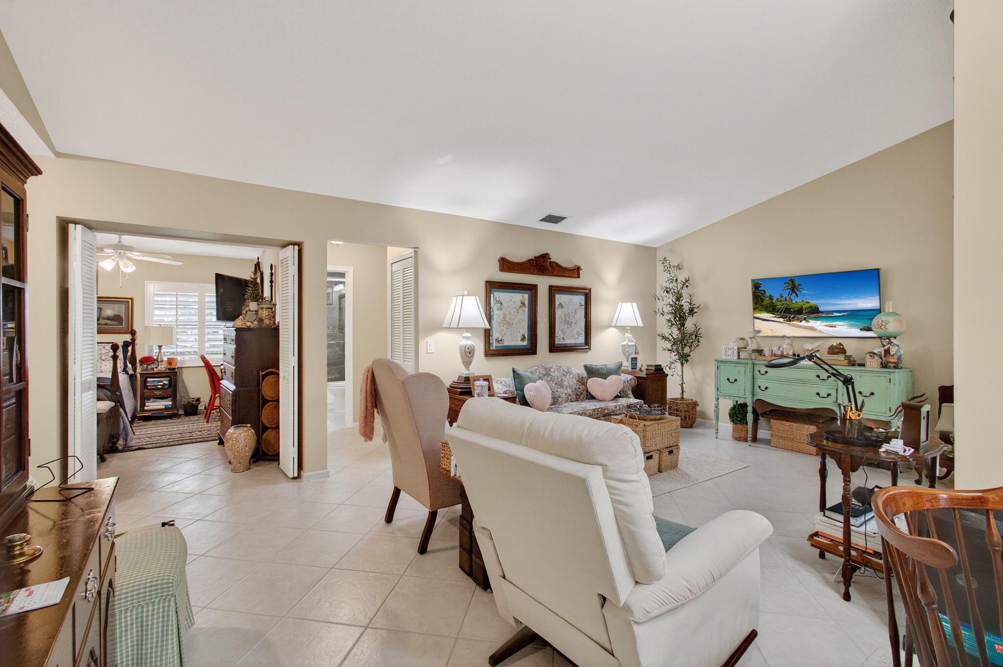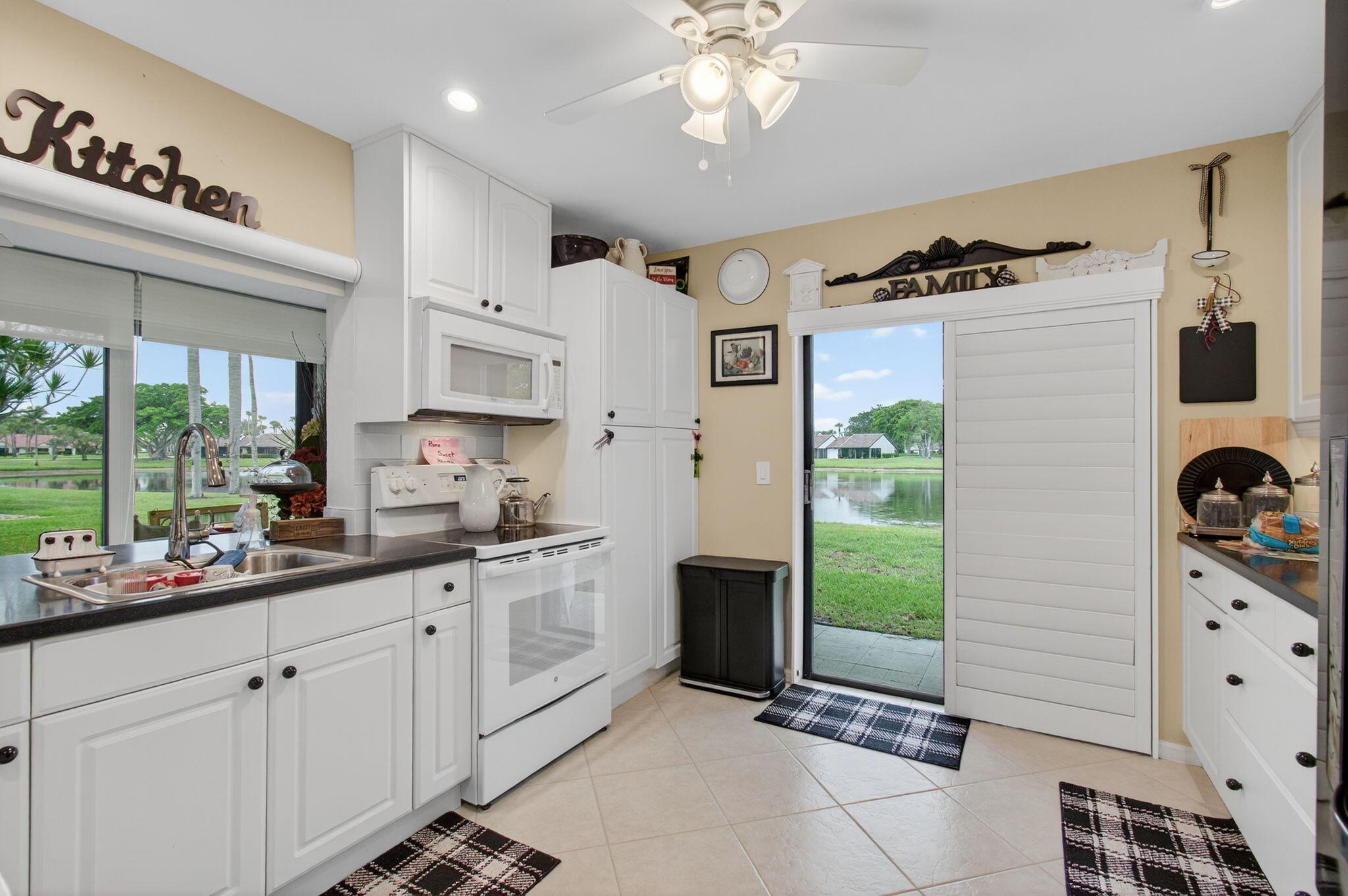 RARELY AVAILABLE IN THE LANDINGS @ ABERDEEN...Immaculately maintained corner unit, 3 bedroom/2bath villa with expansive lake views and oversized front courtyard. Fabulous location just steps to the satellite pool and walking distance to the main clubhouse. This villa is a true 3 bedroom, with complete accordion shutter hurricane protection and has been updated. It has the rare feature of an oversized laundry room and pantry and pull down stair attic access.. New roofs and gutters and exterior painting were recently completed in 2024. There is a $251 monthly assessment that can also be paid in full. Comcast Triple Play (home phone, upgraded cable and internet) is included in your HOA fee.For more information about The Landings please visit their website at Landings-In-Aberdeen.