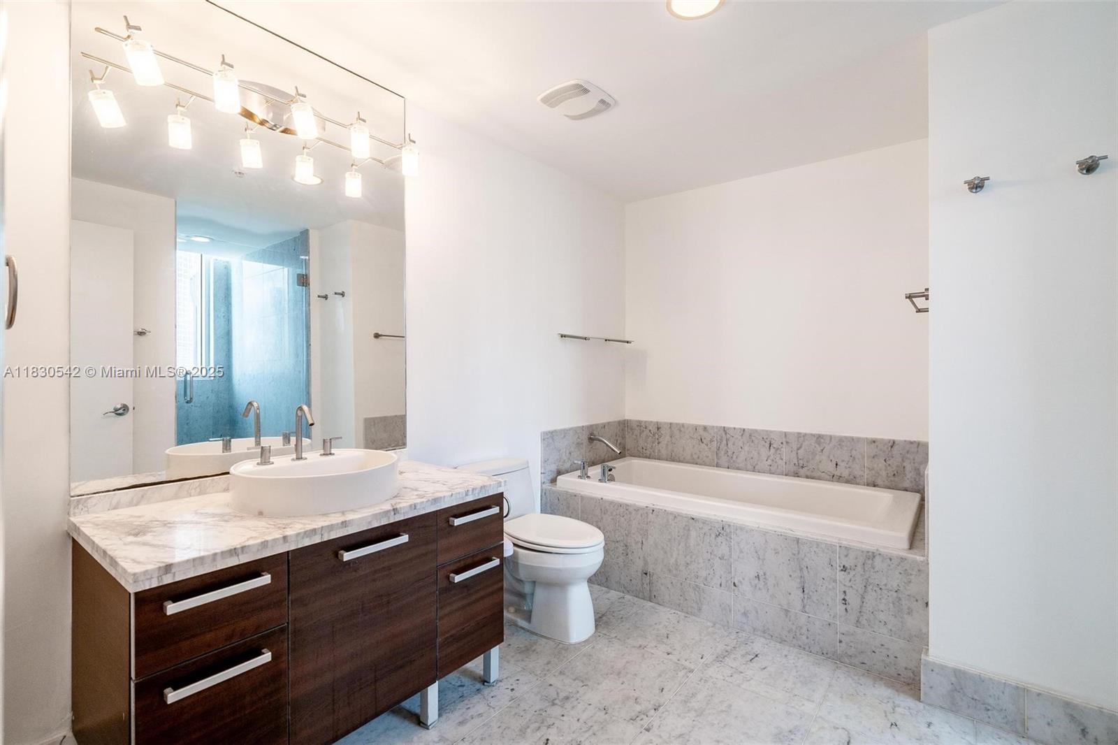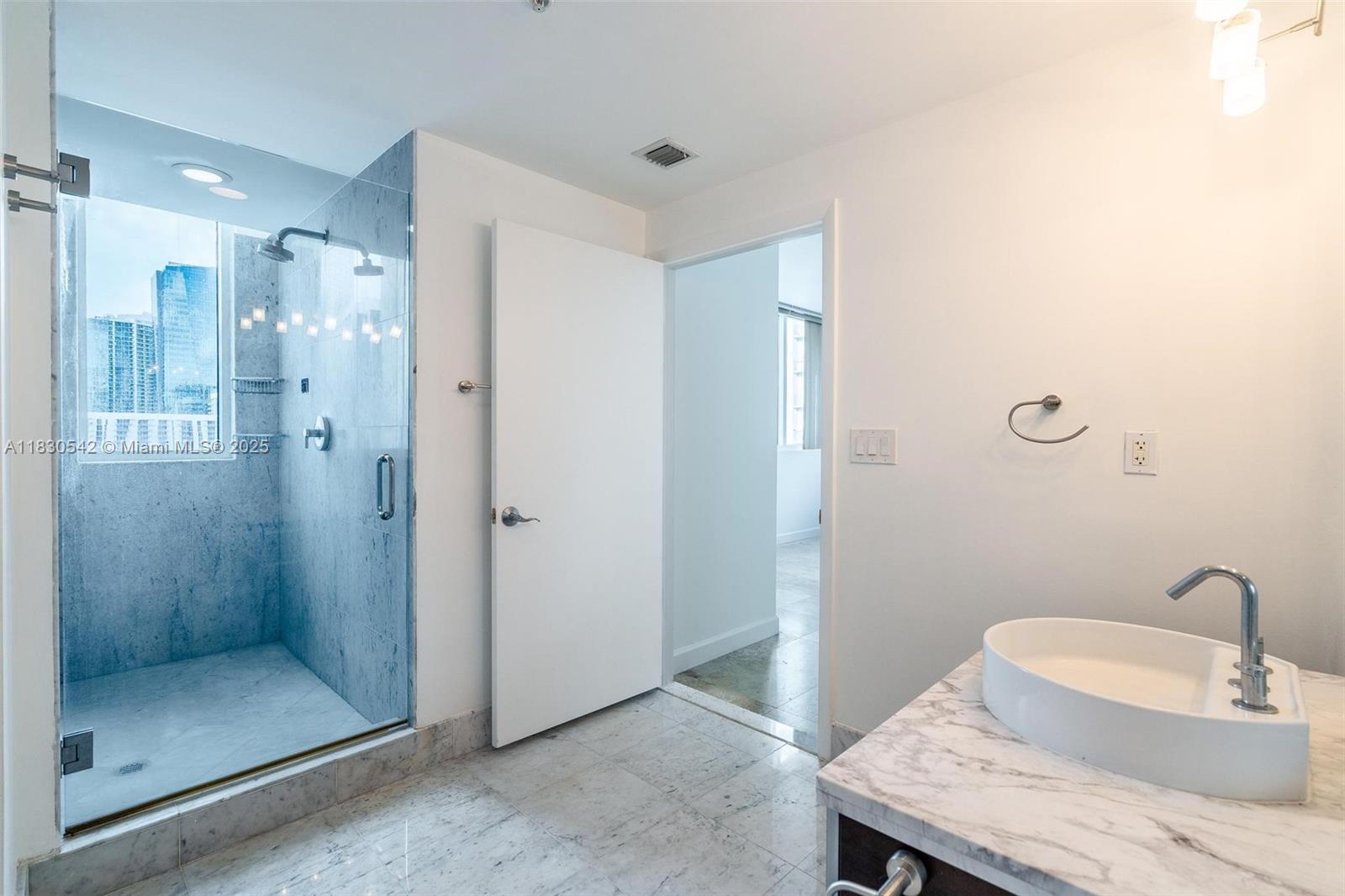 Welcome to Residence #2608 at Vizcayne South, located in Downtown Miami. This high-floor corner unit spans 1,006 square feet, offering a flexible layout with one bedroom plus an enclosed den and two full bathrooms. The enclosed den is versatile—ideal as a second bedroom, office, or guest space. The open design features floor-to-ceiling windows, providing stunning bay and city views. Italian marble floors are throughout, with two marble-clad bathrooms and a sleek kitchen equipped with stainless steel appliances. Enjoy resort-style amenities, including four pools, a spa, steam room, sauna, renovated gym, business center, lounge, and 24-hour security. Building upgrades are underway. Don’t miss this opportunity - schedule your private showing today!