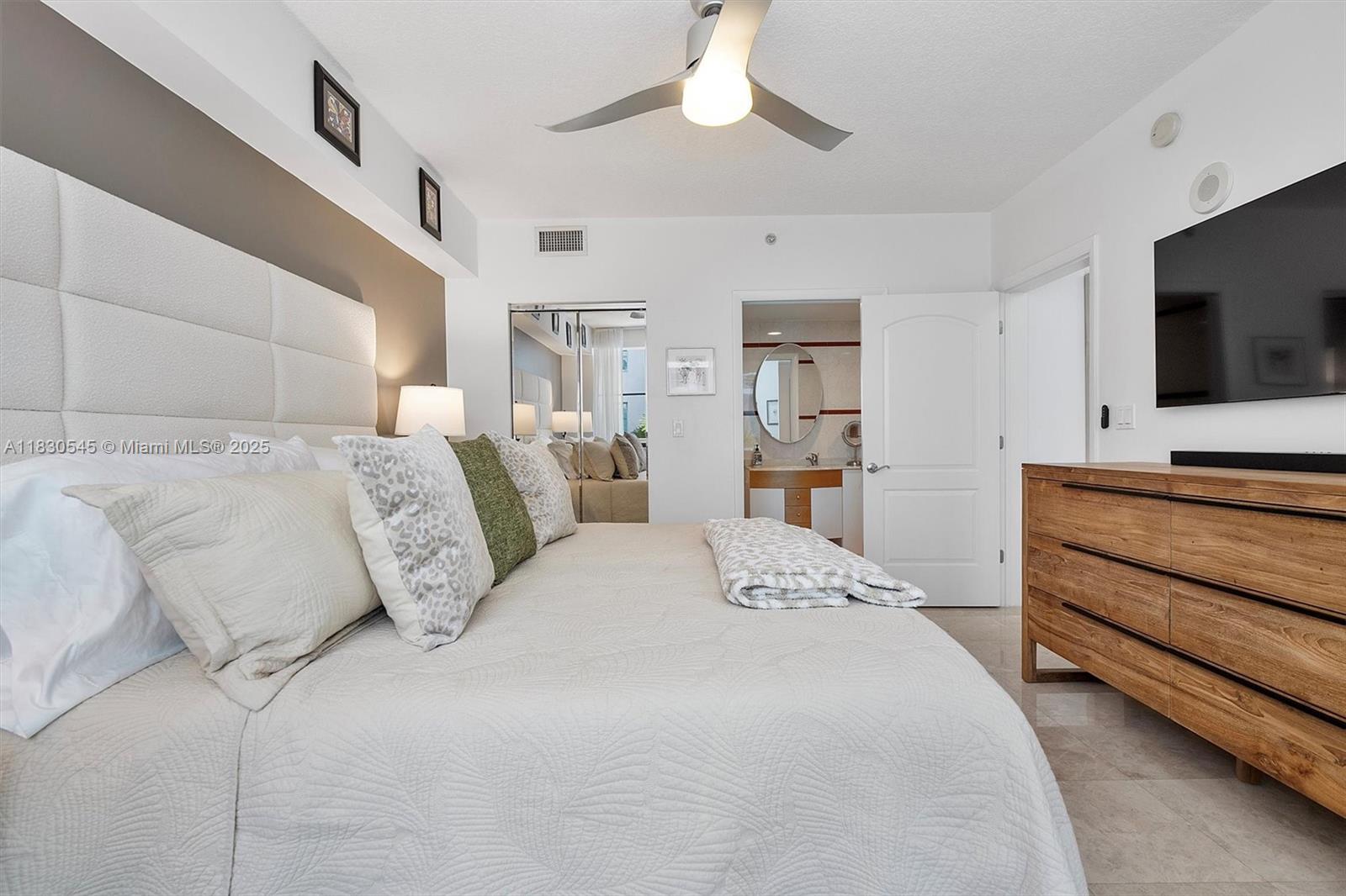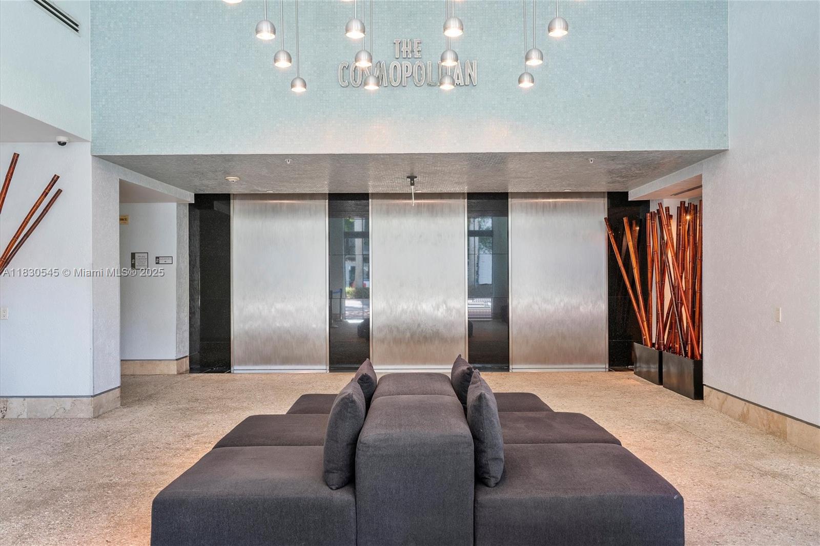 Experience sophisticated living in this elegant 2BR/2.5BA, 1,247 sqft residence in coveted South of Fifth. The thoughtfully designed split floor plan offers privacy with walk-in closets, a versatile dining/den area, and gallery-style lighting that enhances the spacious living area. The contemporary kitchen features abundant cabinetry, and a stylish barn-wood wrapped peninsula with seating for three. Enjoy a generous balcony overlooking the lush, serene tropical courtyard. The pet-friendly Cosmopolitan is a full-service building with resort-style amenities including pool, fitness center, and 24-hour security. Just steps from the beach, South Pointe Park, and world-class dining. Includes 2 covered parking spaces in tandem & private storage unit for secure, refined South of Fifth living.