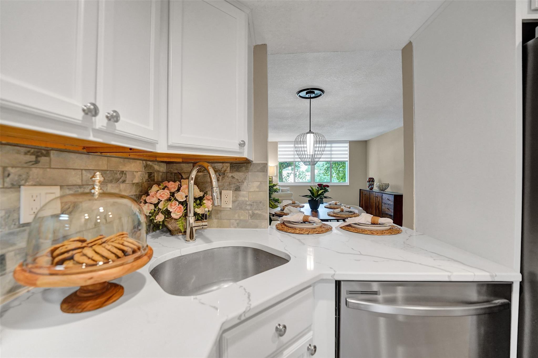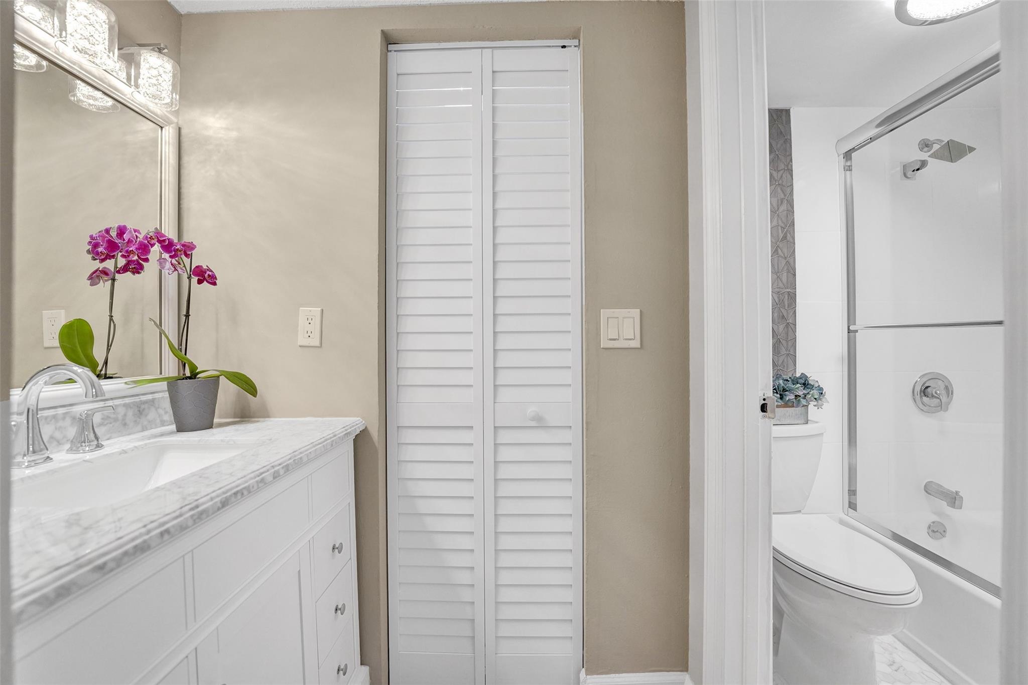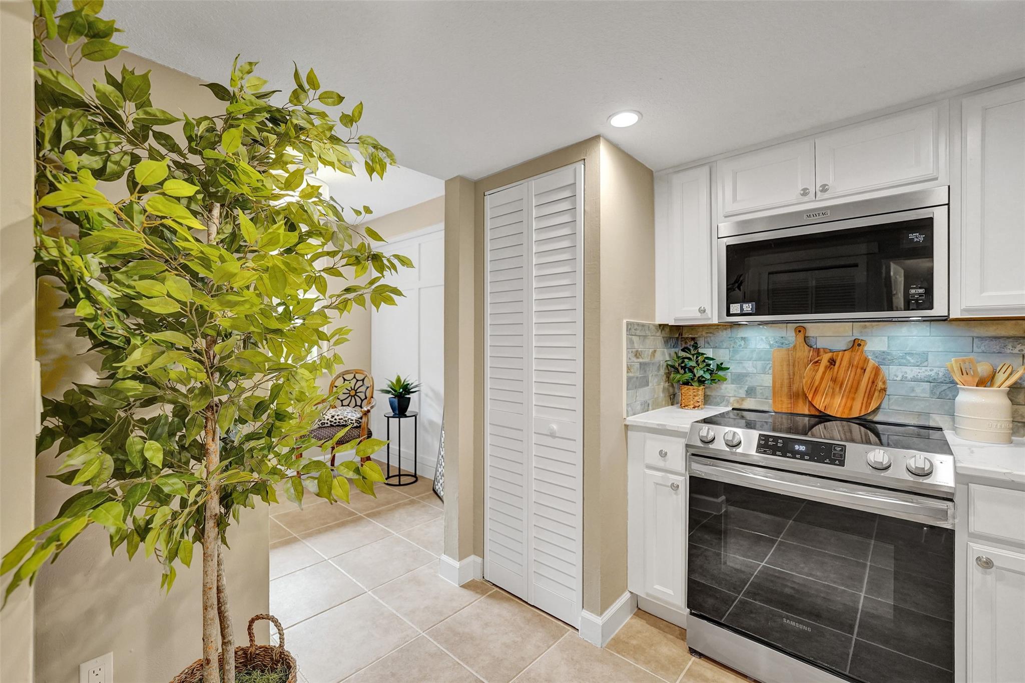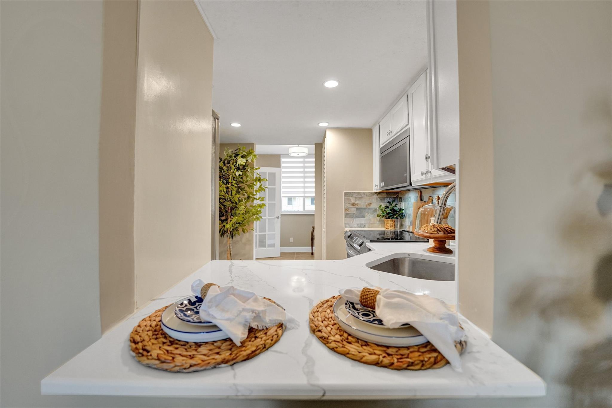 Welcome to this beautifully completely updated, move-in-ready condo featuring 2 spacious bedrooms, 2 modern bathrooms, plus BONUS den—perfect as a home office or even a 3rd bedroom. The interior showcases custom wood accent walls that add warmth and character throughout. Enjoy a fully renovated kitchen with beautiful white cabinetry, Quartz counter tops and brand-new stainless steel appliances, along with totally updated bathrooms featuring stylish finishes. Full IMPACT WINDOWS and a newer A/C (2020) provide comfort and peace of mind all year long. Private storage unit included. Located in a well-maintained pet-friendly community with large pool and spa has a low HOA of just $352/month. Centrally situated near shops, dining. **NO RENTALS ALLOWED**
