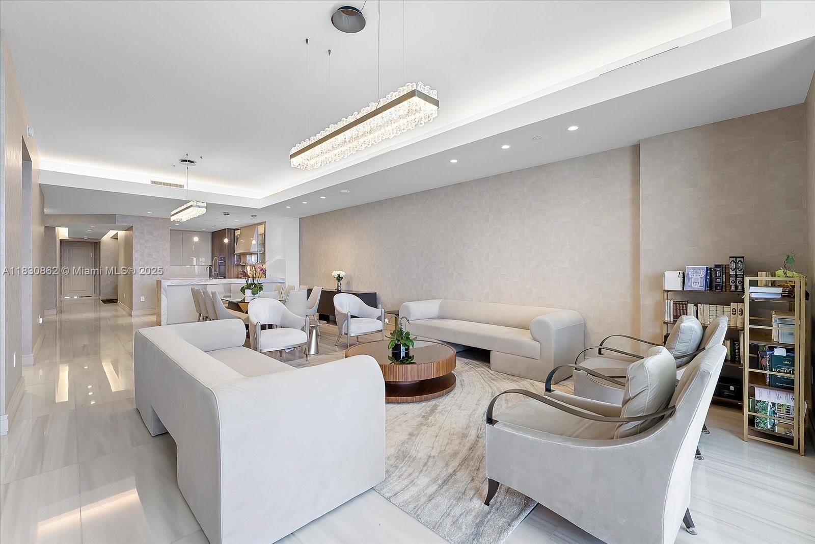 Step into a world of refined sophistication in this stunning Vecchio residence, located in the prestigious Estates at Acqualina. This oceanfront home offers a seamless blend of timeless design and modern luxury. With panoramic views of the Atlantic and Intracoastal, the residence features expansive terraces, a summer kitchen, and a thoughtfully designed flow-through layout. Inside, marble floors lead you through a grand living space with custom cabinetry, a La Cornue gas range, and a gold onyx spa-inspired bath with a steam shower. A den provides flexibility for a home office or media retreat, while smart-home automation ensures effortless living. The Estates at Acqualina delivers an extraordinary lifestyle with five-star amenities, including fine dining, and a private beach club.