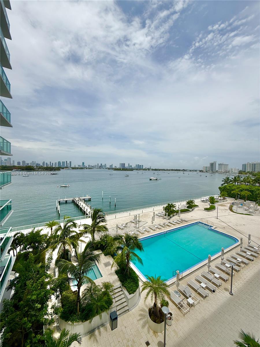 Rarely available direct west bay view with balcony at Mirador South. Unit is updated with new wood style floors, new bathroom vanity, lights, cooktop, refrigerator and central A/C. Directly across from Whole Foods and walking distance to Lincoln Rd. Amenities include bayfront pool, jacuzzi, convenience store and state of the art fitness center: