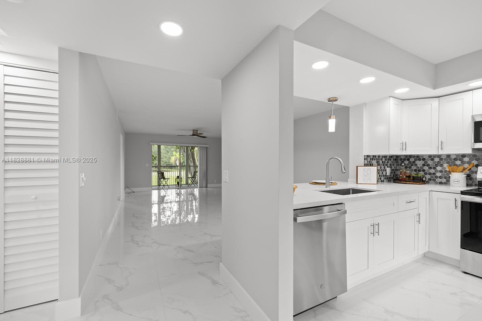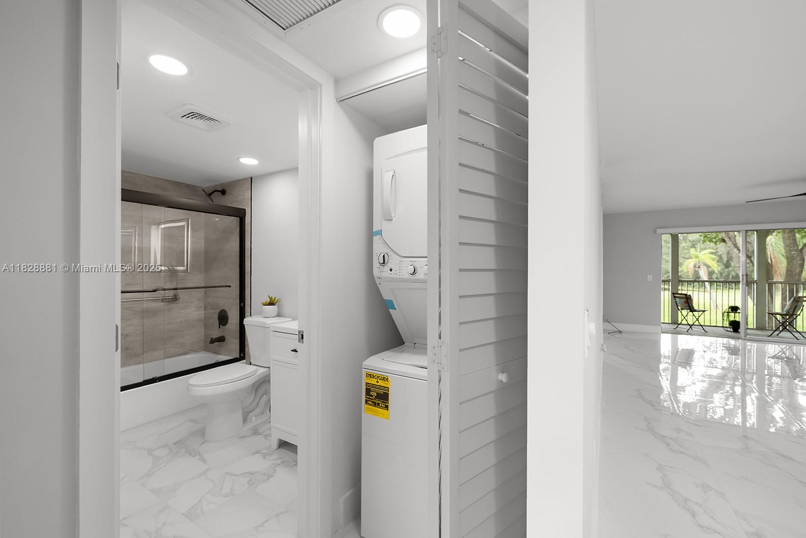 Welcome to this beautifully updated 2/2 unit w/a serene golf view that greets you as you enter the front door. This condo features all-new appliances, ceramic floors throughout, new balcony flooring, & newly plastered walls for a modern feel. Enjoy the convenience of an in-unit washer and dryer, a new hot water tank, and a 2-year-old A/C unit with a Nest Wi-Fi thermostat for energy-efficient comfort. Additional upgrades include a stylish barn door in the bathroom. The HOA is $512/month plus CVP $266/month, and includes water, cable, internet, and access to endless amenities, including a million-dollar clubhouse. Located in Buckingham East I at Century Village, one of Pembroke Pines’ most desirable 55+ active adult communities—minutes from The Shops at Pembroke Gardens and major highways.
