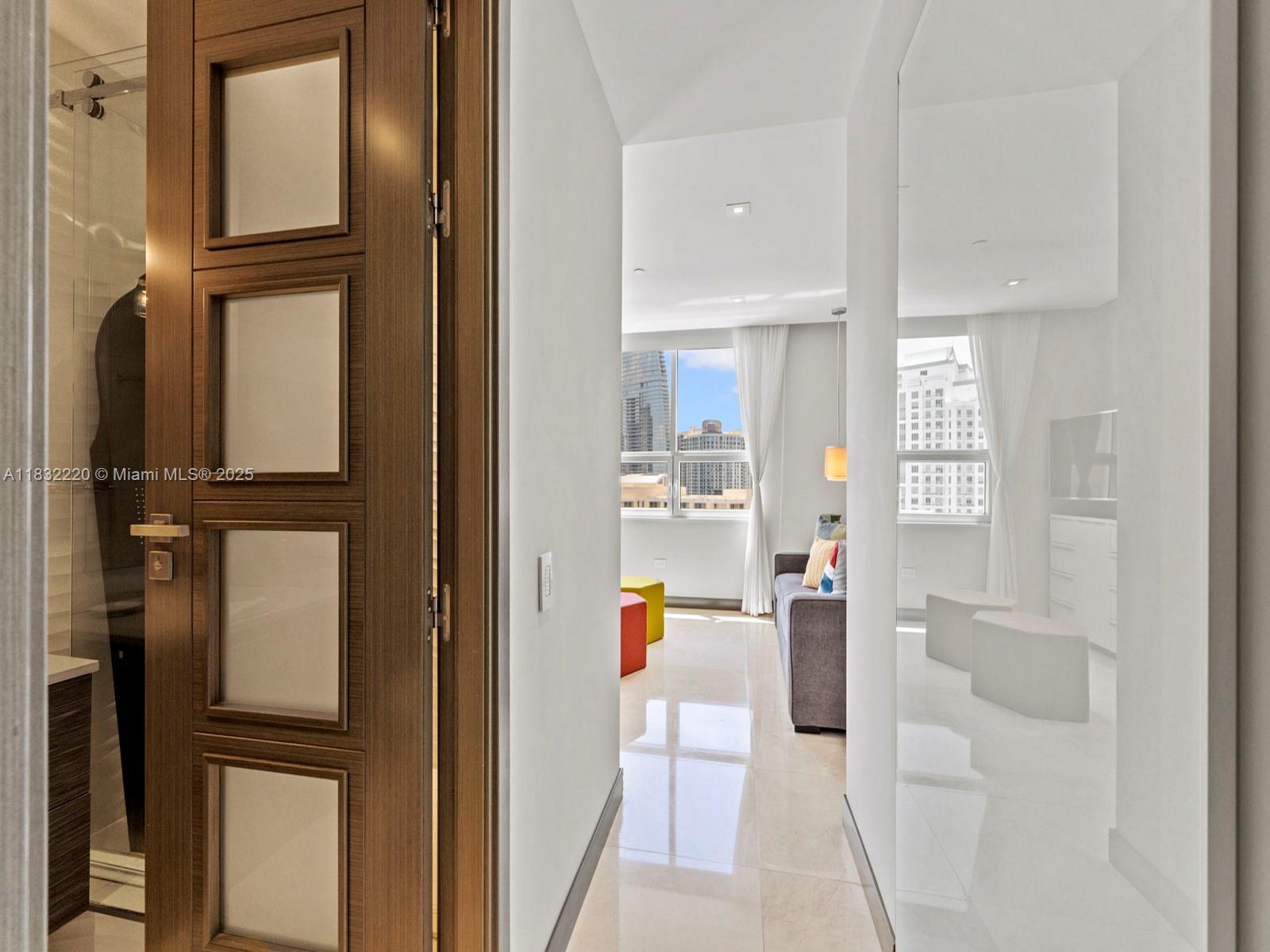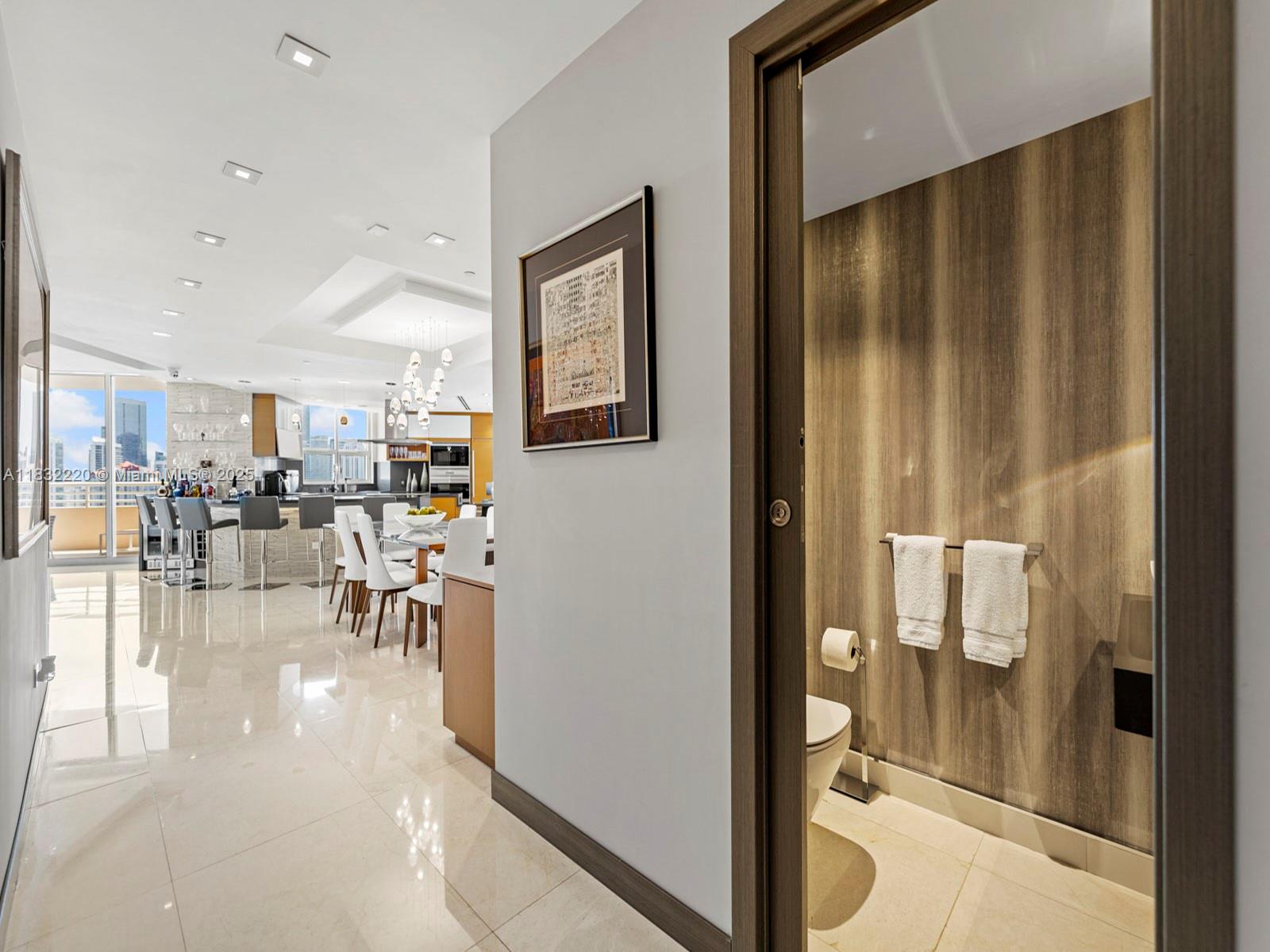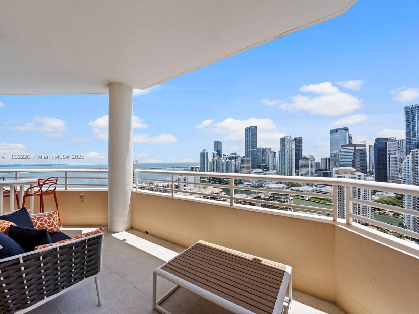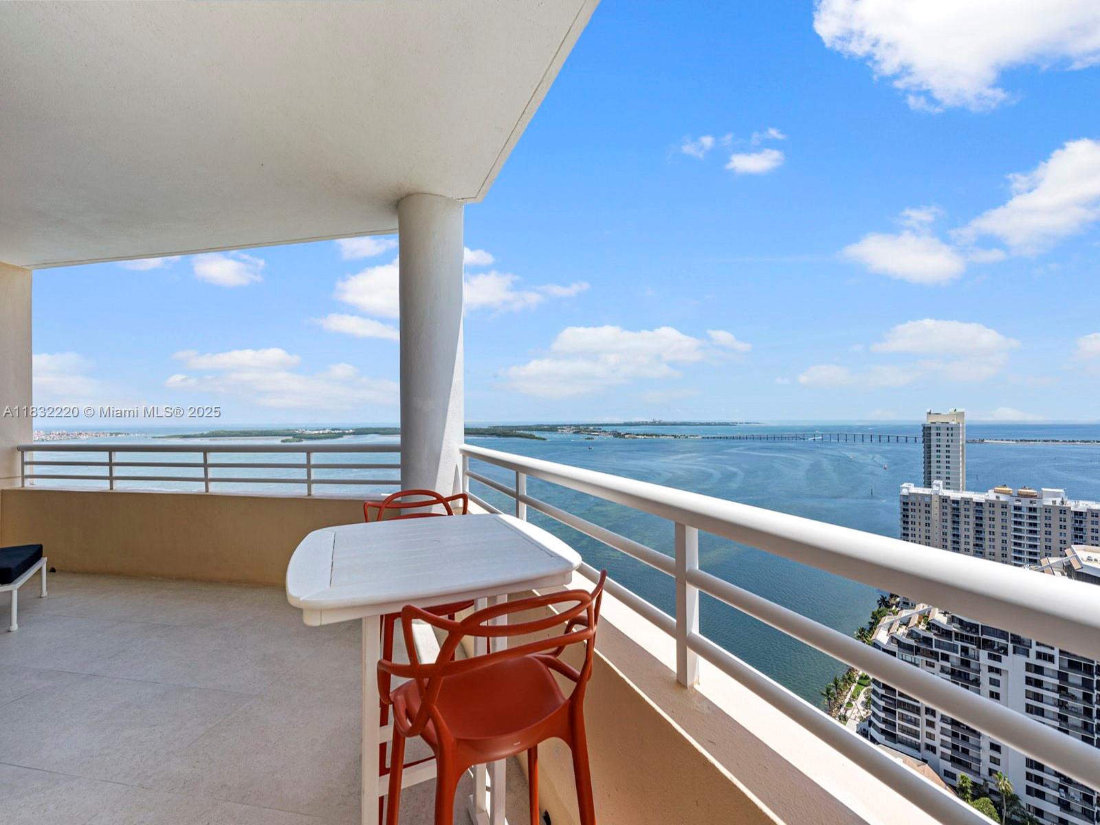 Brickell Key! Tequesta Two! Spectacular panoramic ocean & city views await you in this luxurious, high floor, corner, 2 bed/2.5 baths split floor plan residence. Fully renovated, Marble floors throughout. Technology enhanced state of the arts system controls A/C, Interior Lights, TVs & Window Treatments. Open kitchen with island bar ideal for great entertaining. This Designer Unit comes with with numerous upgrades, built-ins & TV’s. New A/C & Washer & Dryer. 1 assigned parking space & 1storage unit. Assessments are paid in full. Amenities include 24-Hour Security, Concierge, Valet Parking, Business Center, Bayfront Pool, Jacuzzi, BBQ area, 2-Story Gym, Basketball , Tennis Courts & Children's Play Area, 1.3 mile jogging/walking path along its paved perimeter with city & water views.