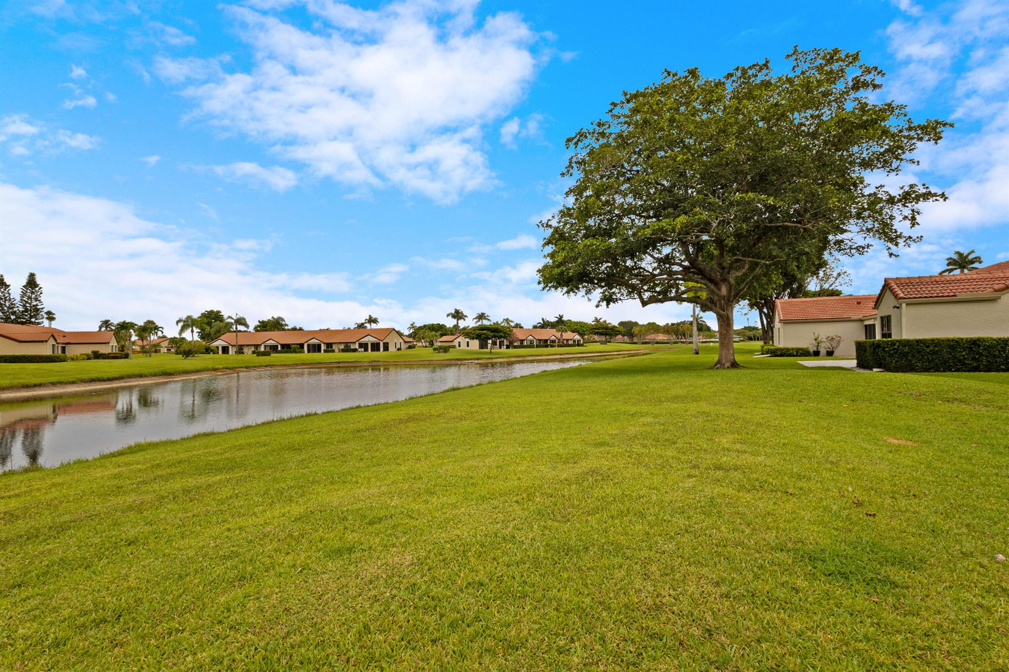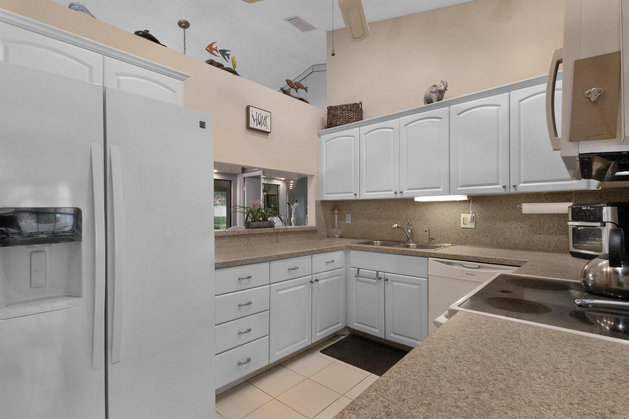 Serene Waterfront Living in ''The Shores'' at Aberdeen. Step into comfort and ease in this charming villa featuring 2 split bedrooms and 2 full baths. The primary suite offers a large walk-in closet and newer ceramic tile flooring, creating a peaceful retreat. Enjoy your morning coffee or evening breeze from the enclosed porch, with partial sunset views to unwind your day. New Roof (2024), AC (2020), 1-Car Garage. Washer/Dryer. Pet-Friendly. No Membership Fee. Live the lifestyle you've been looking for, active clubhouse, resort-style pool, tennis & pickleball courts, and a wide range of social activities. Come soaking up the Florida sunshine, it's all here!Motivated Seller - Bring Your Offer! This is a 55+community. Seller will pay-off roof assessment at the closing.