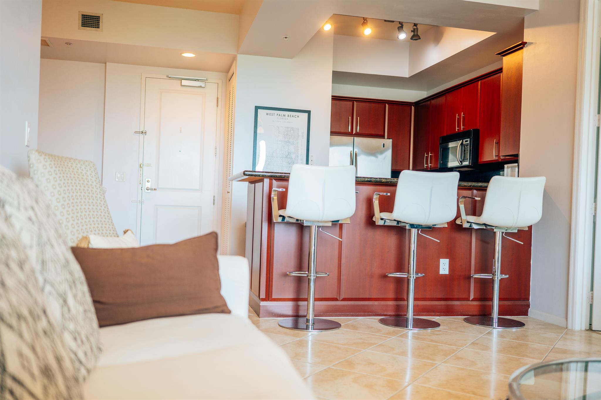 Penthouse living at The Metropolitan! Spacious 2BR/2BA, split floorplan, and private balcony overlooking city views. Elegant finishes include granite countertops, stainless-steel appliances, tile & plush carpet flooring, in‑unit laundry, walk‑in closets, and a luxurious dual‑sink bath with tub and separate shower. Includes 1 parking space.Enjoy resort-style living: 24‑hr concierge, rooftop pool/spa, fitness center, club room, business center, bike storage, secure entry and elevator access. Ideally located downtown, you're steps from the Kravis Center, Rosemary Square (formerly CityPlace), fine dining, entertainment, Publix and a short drive to Palm Beach and nearby beaches. Close proximity to I‑95, Palm Beach based hospitals, vibrant parks, and the wat