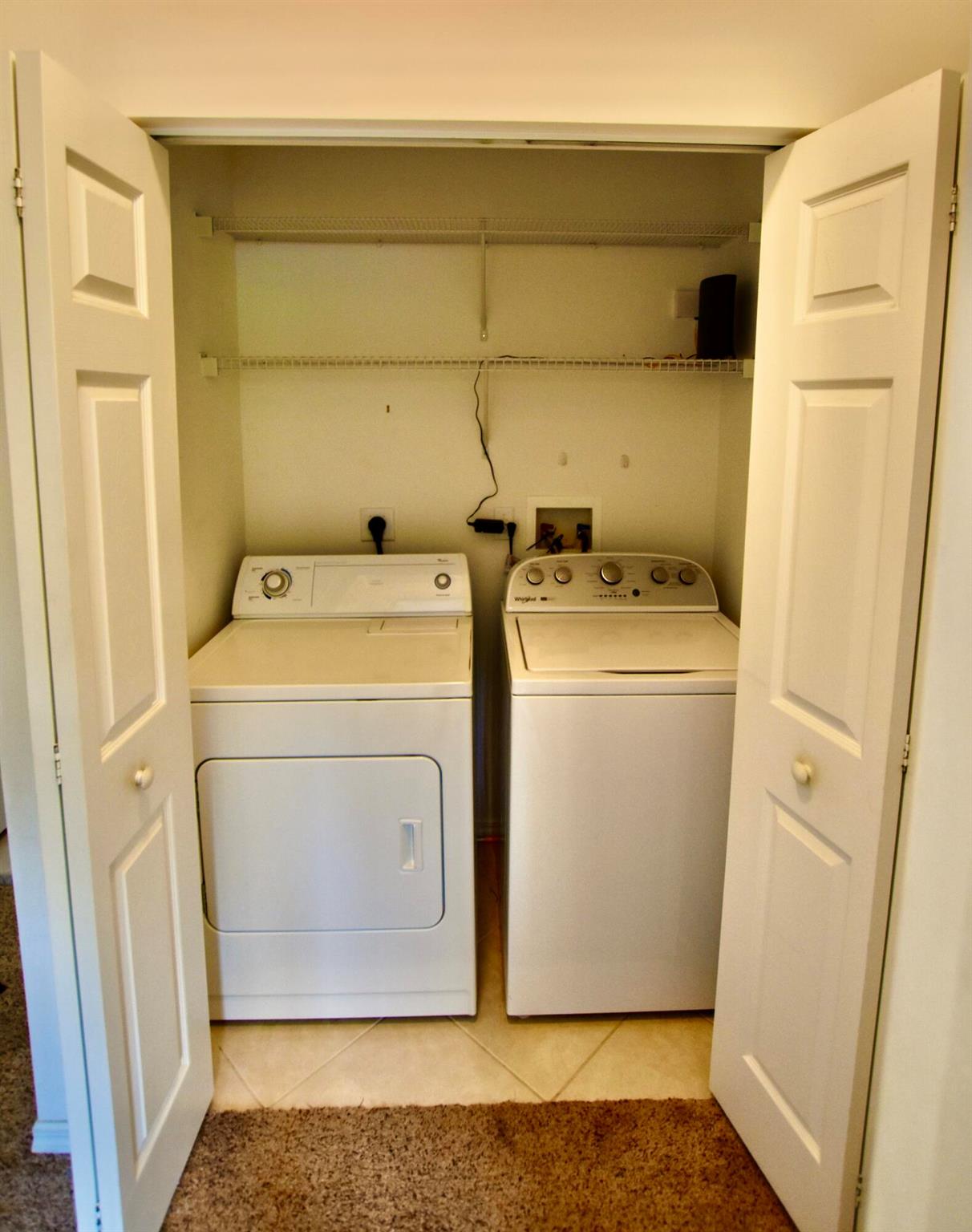 Open Floor Plan Condo:2 Bedroom, 2 Bath, 1 Car Garage, 1035 s.f., 2nd Floor Condo in Quiet Tequesta, Florida. Includes primary bedroom with en-suite bathroom and large walk-in closet. Laundry closet with washer (1 year old)/dryer. Kitchen has 1 year old refrigerator and new dishwasher. Accordion Hurricane shutters. 1 year old water heater. Roof replaced 2023. End unit is in back of the community. Community Pool and playground. Well run homeowners' association with reserves. Close to beaches, dining, Publix, Starbucks, pharmacy. A rated school. Minutes from beaches.