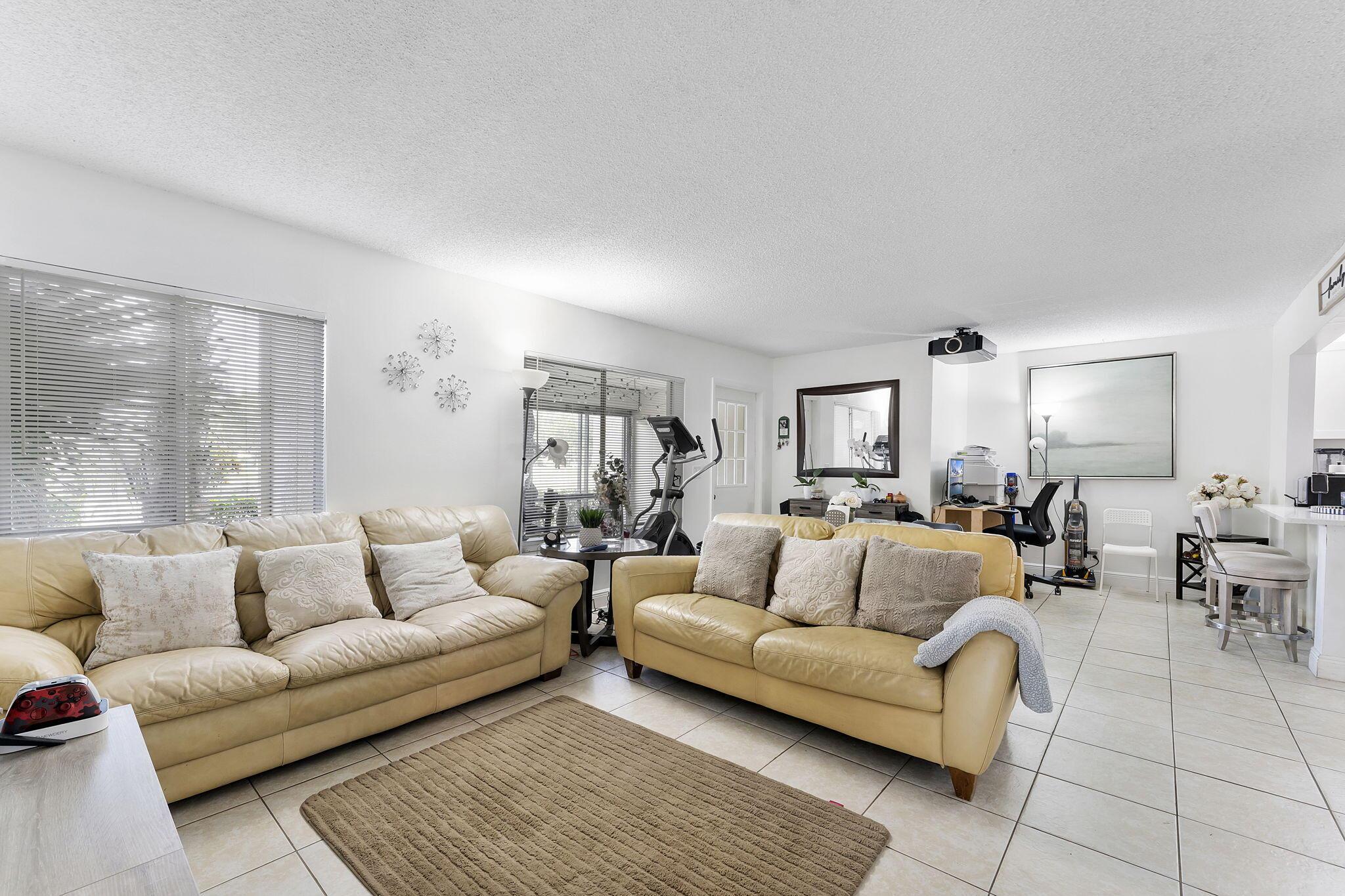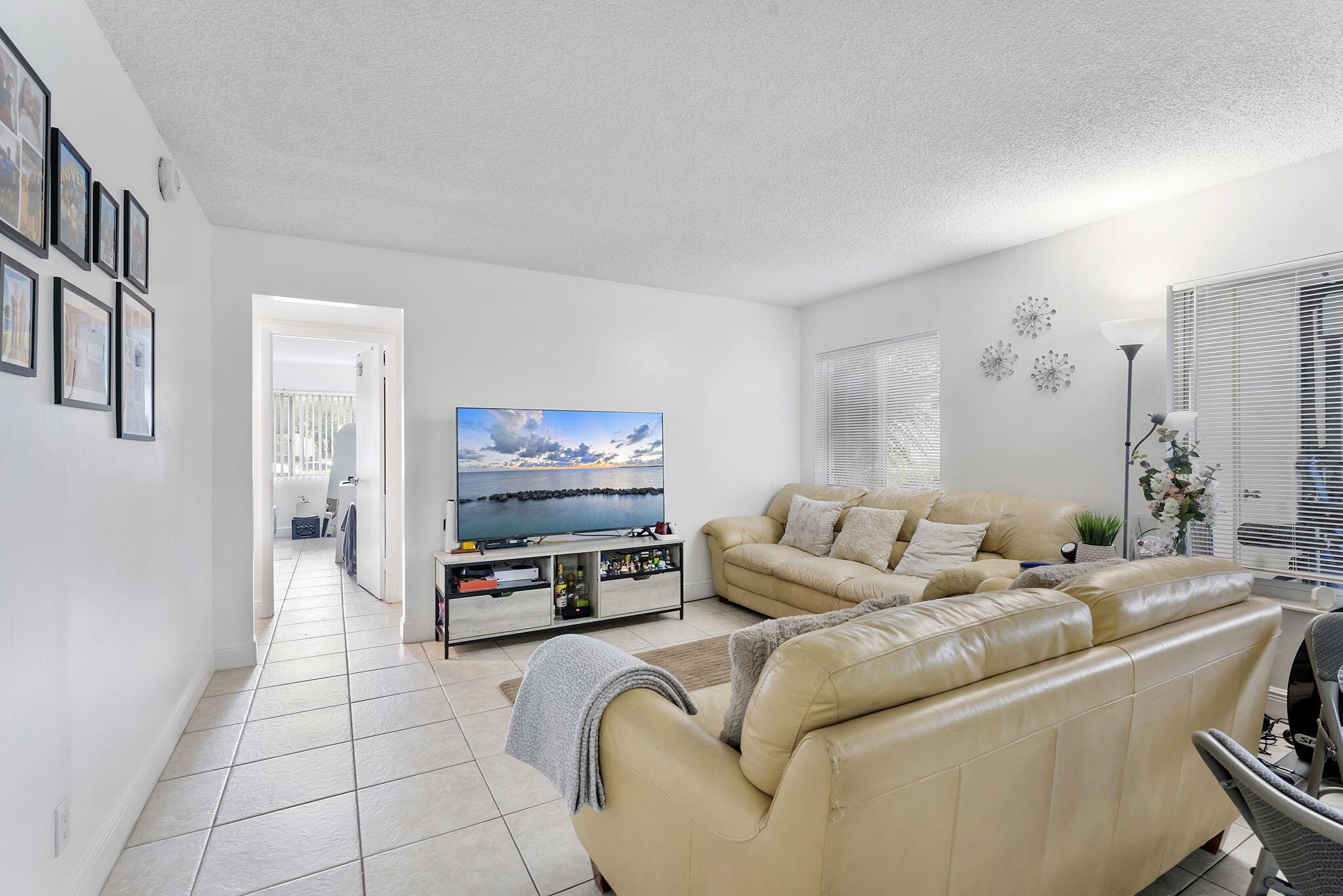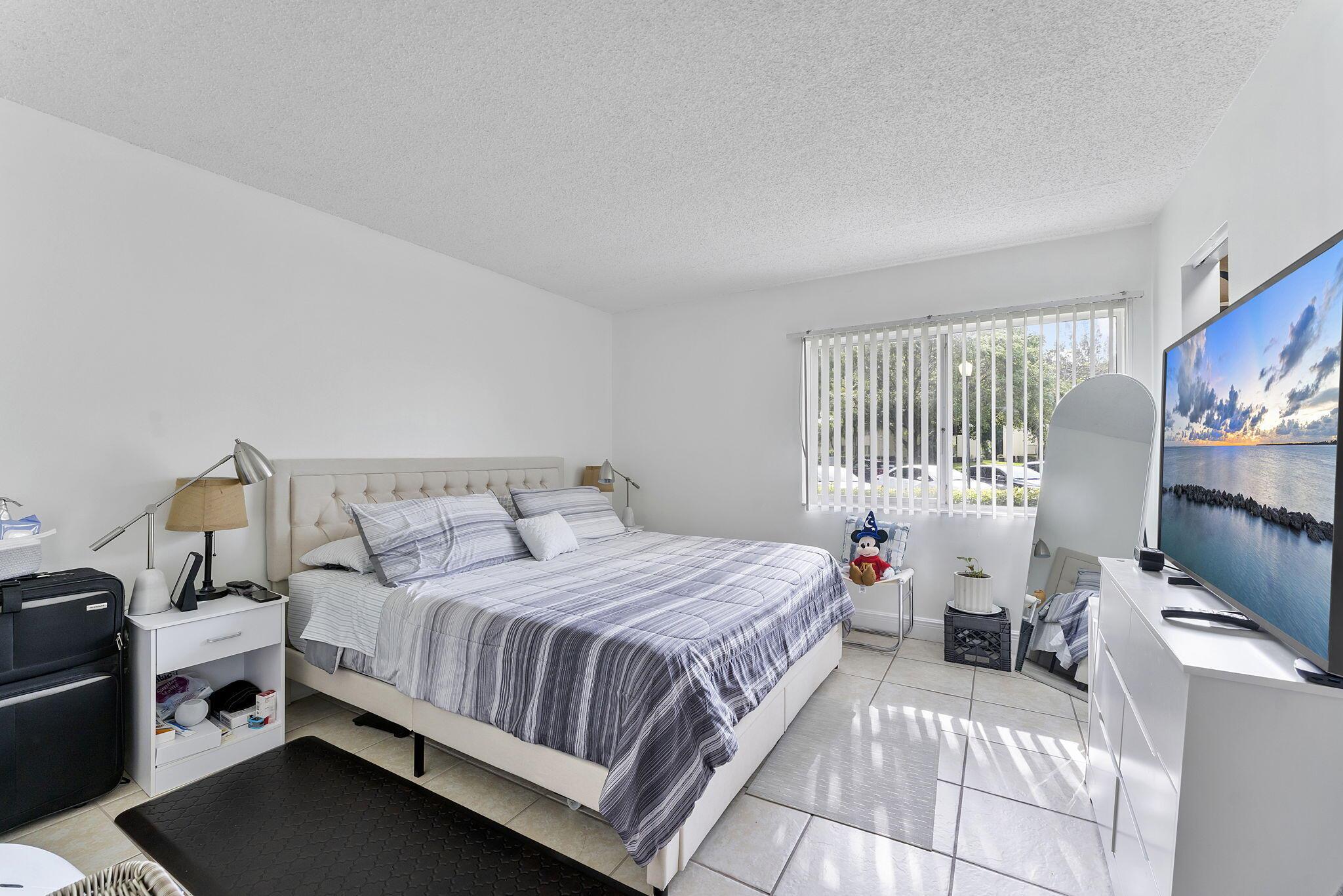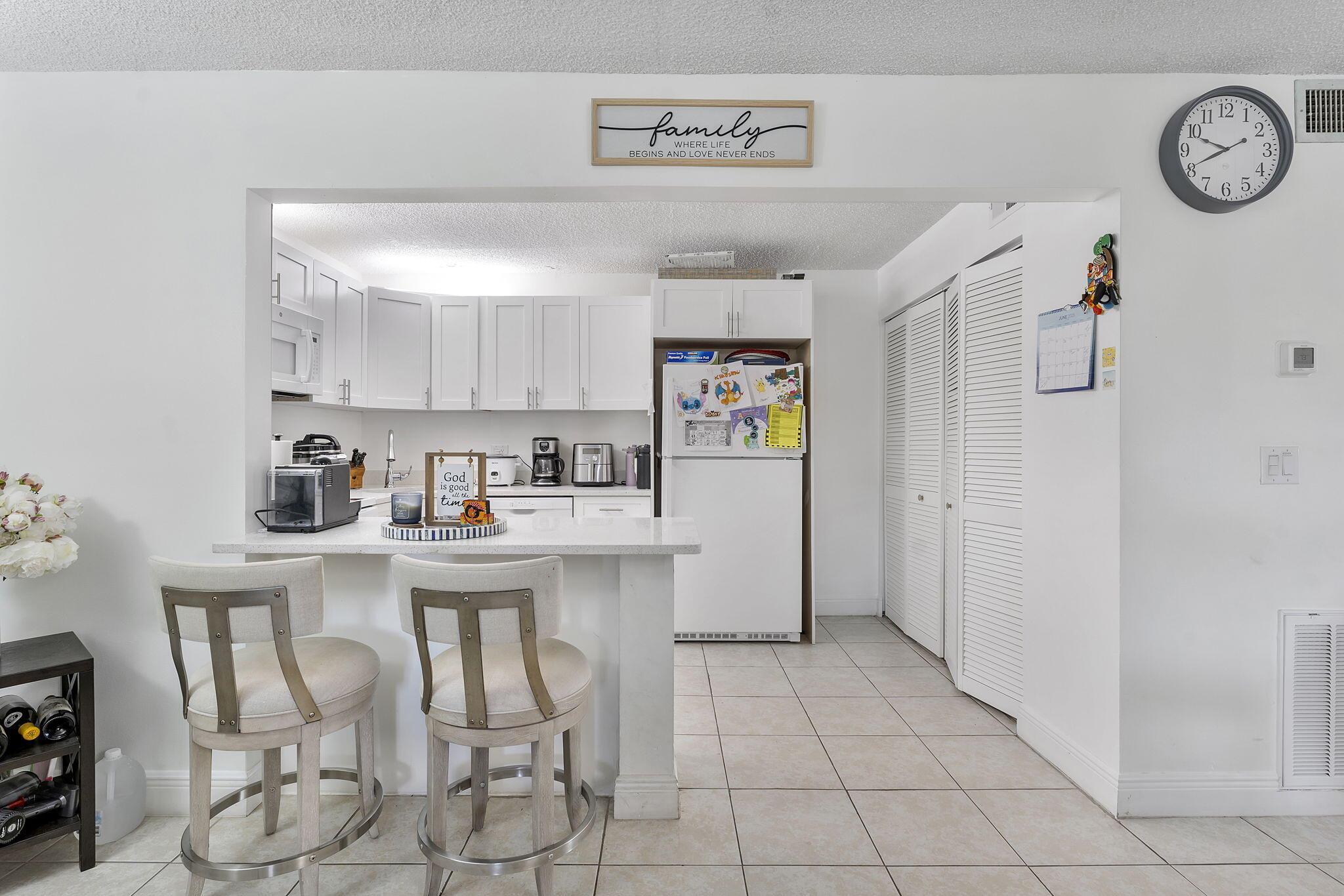 This well-maintained 2-bedroom, 2-bathroom condo in West Palm Beach offers comfortable living in a desirable location. The unit features an open floor plan with tile flooring throughout and a functional kitchen with white cabinetry, solid surface countertops, and a breakfast bar that's perfect for casual dining. The living area provides good space for entertaining and relaxing, with plenty of natural light from the windows. Both bedrooms are nicely sized with adequate closet space, and the master bedroom includes an en-suite bathroom.