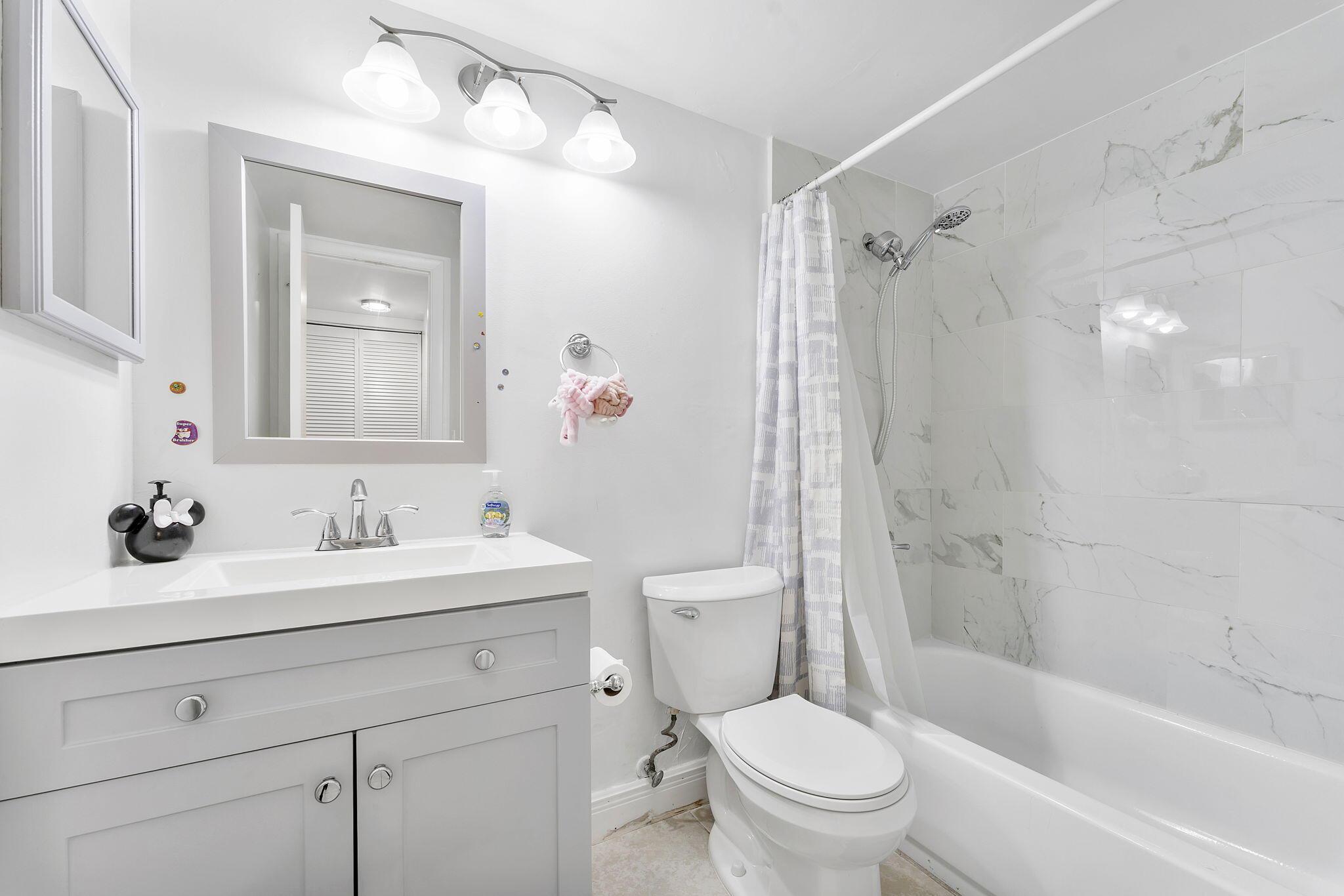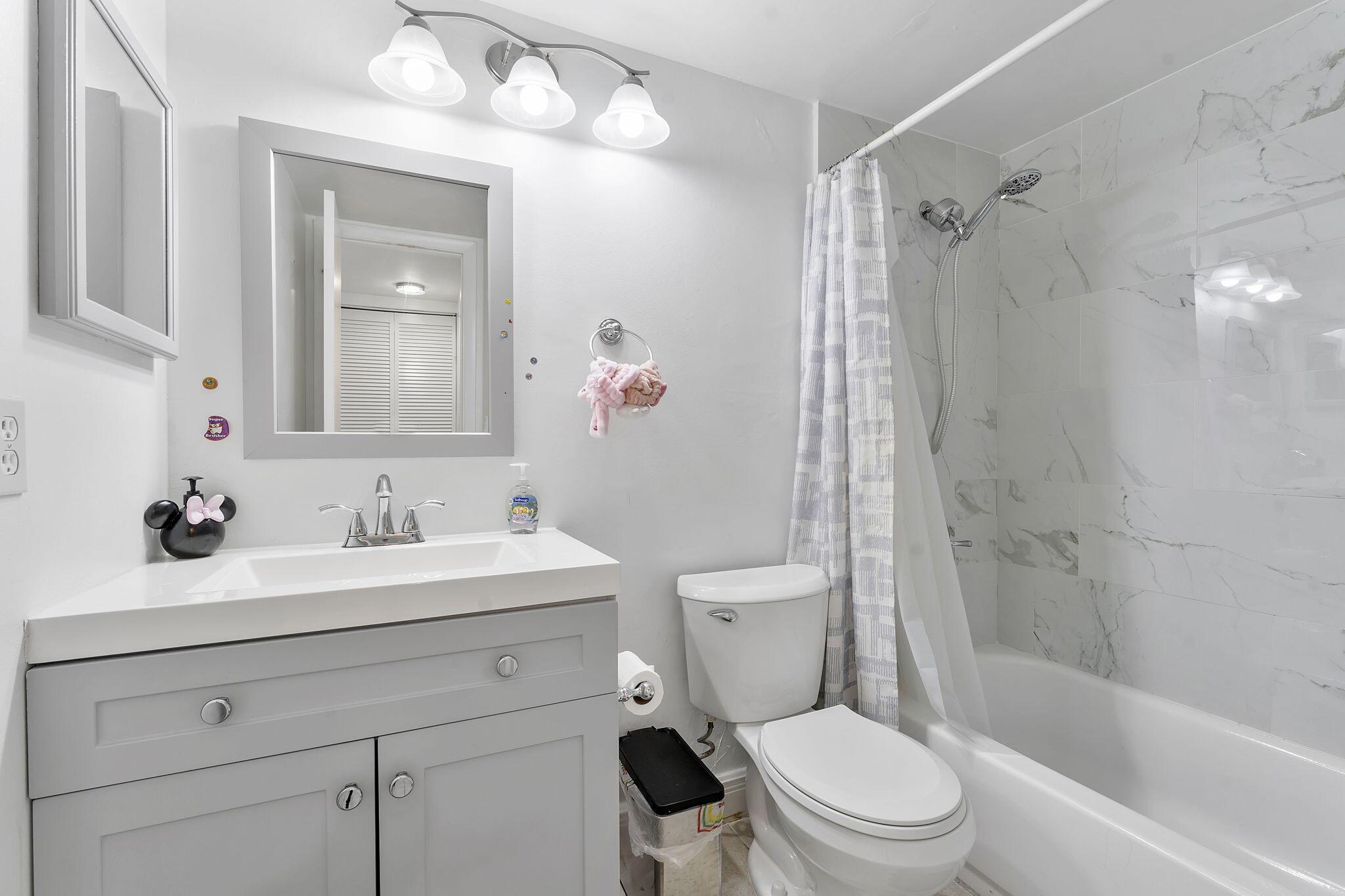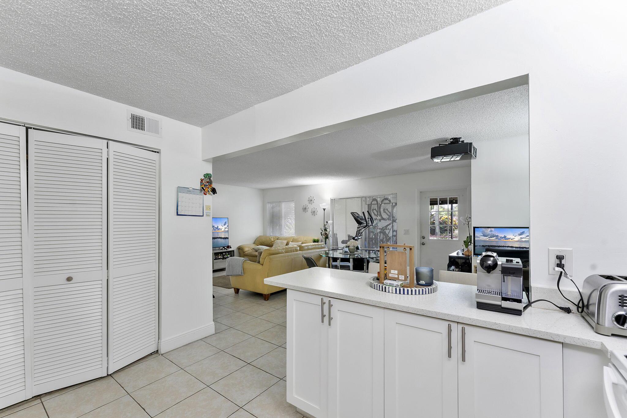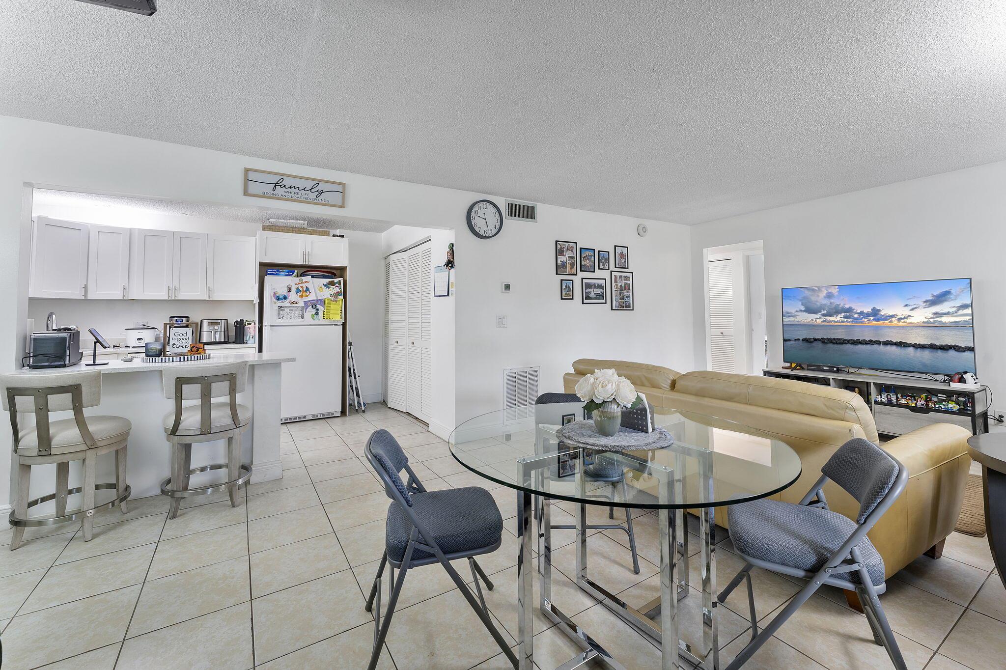 This well-maintained 2-bedroom, 2-bathroom condo in West Palm Beach offers comfortable living in a desirable location. The unit features an open floor plan with tile flooring throughout and a functional kitchen with white cabinetry, solid surface countertops, and a breakfast bar that's perfect for casual dining. The living area provides good space for entertaining and relaxing, with plenty of natural light from the windows. Both bedrooms are nicely sized with adequate closet space, and the master bedroom includes an en-suite bathroom.