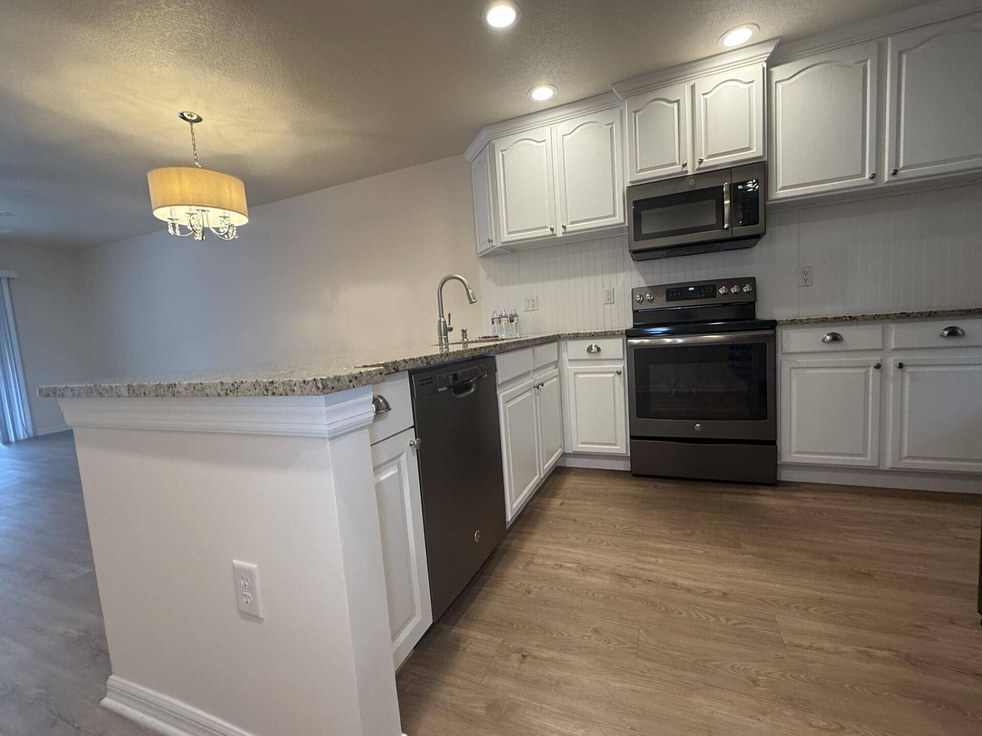 Fully renovated and move-in ready, this 2-bedroom, 1-bath condo is tucked inside the highly sought-after 55+ The unit features all-new flooring, modern lighting and ceiling fans with remote controls, and new stainless-steel appliances. The remodeled kitchen showcases an open-concept design, The bathroom has been fully upgraded with new fixtures.