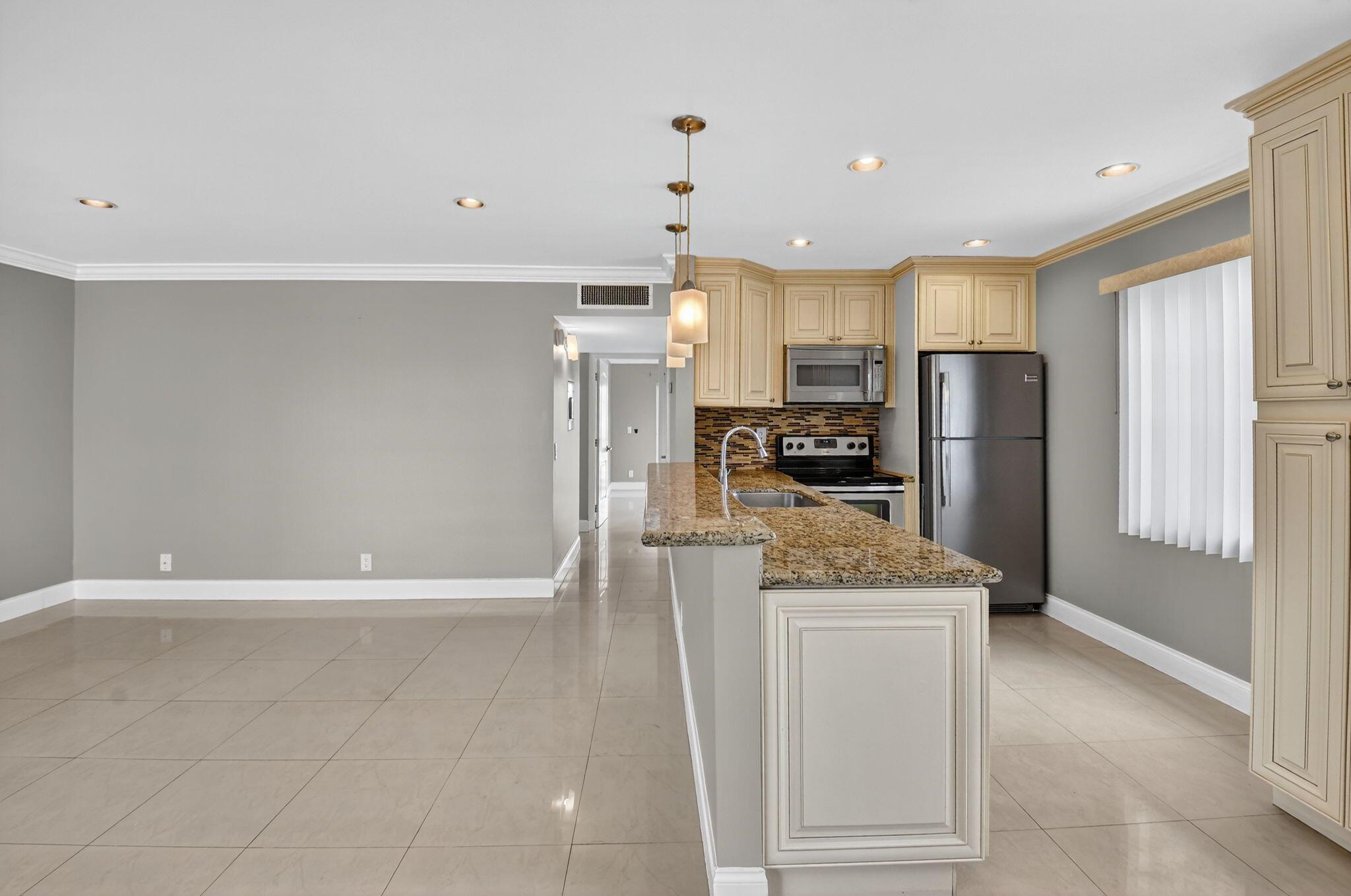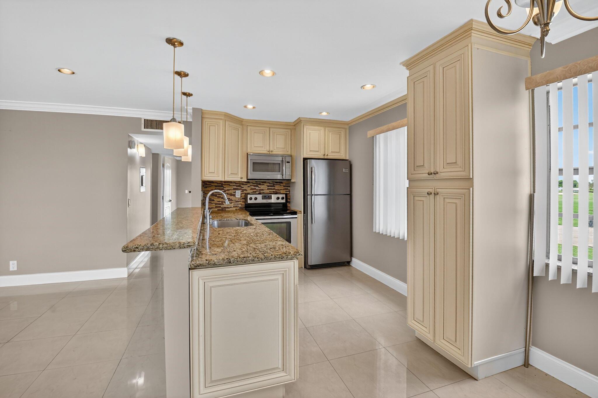 Must see this TOTALLY RENOVATED 2/2 second-floor corner condo with ONE OF THE BEST GOLF/WATER VIEWS IN KINGS POINT! Enjoy the magnificent views from both bedrooms and the oversize screened porch! The OPEN KITCHEN features upgraded granite countertops, wood cabinetry, and stainless-steel appliances! This BRIGHT CORNER UNIT is enhanced by double windows in the kitchen/dining area! Interior features also include 2 RENOVATED BATHROOMS, oversize neutral tile floors, crown molding, walk-in-closet in bedroom, and upgraded Samsung washer/dryer! This active 55+ community includes a beautifully renovated clubhouse with impressive shows, exercise facilities, pools, tennis, two18-hole golf courses, 2 on-site restaurants and more! Close to Atlantic Avenue stores, restaurants, and Delray beaches!