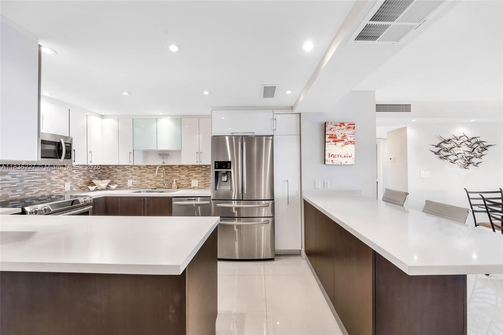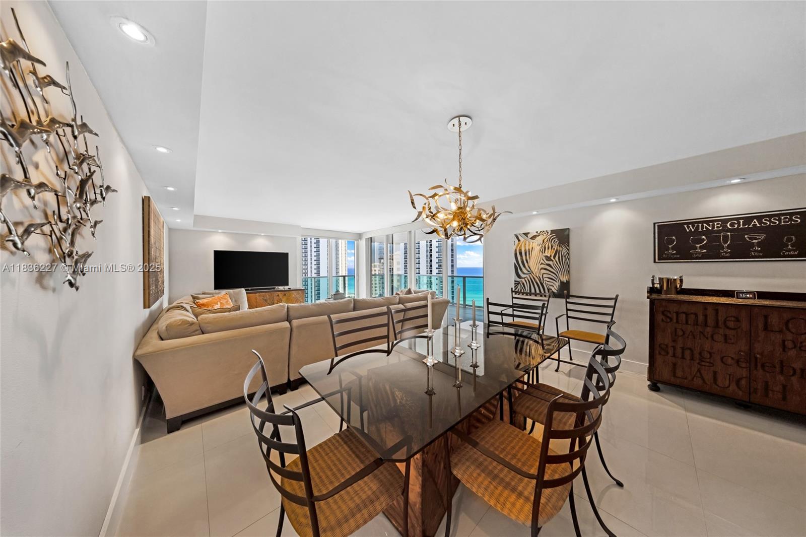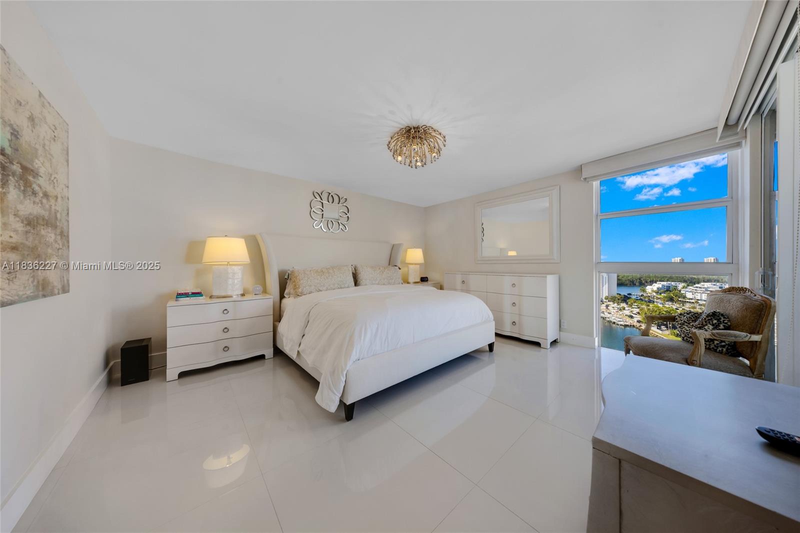 This turn-key furnished 2 bed, 2 bath condo, a spectacular corner unit, offers breathtaking sunrise-ocean views and picturesque sunset-Intracoastal vistas. Enjoy a large wrap-around balcony off the great room, along with a private balcony off the primary suite. Renovated, the open concept floor plan showcases porcelain tile throughout, creating a seamless flow for entertaining or relaxing. Split Bedroom plan offers privacy for you and your guests. The building boasts a newly renovated lobby and resort-style amenities including a heated pool, gym, tennis courts, and worship room, along with a vibrant party room for gatherings. Just footsteps away from the beach and Haulover Park, this condo is a true paradise. Minutes to Bal Harbour Shops and restaurants. Sunny Isles living at its best!