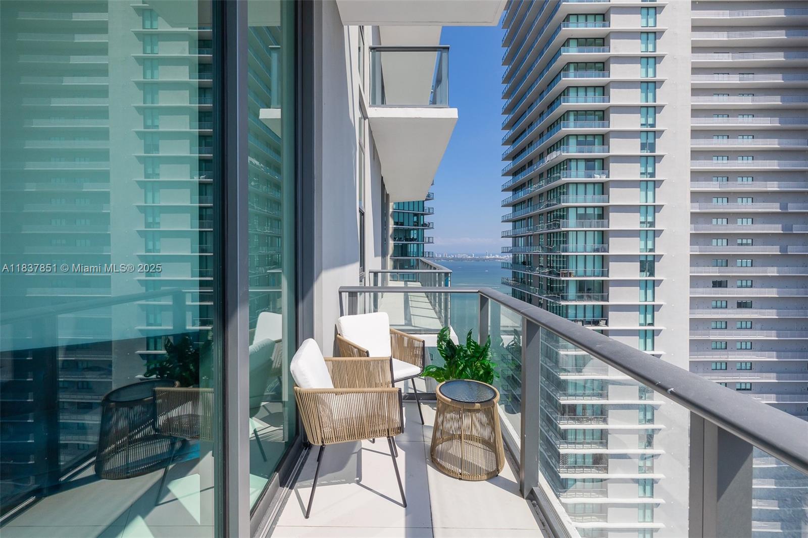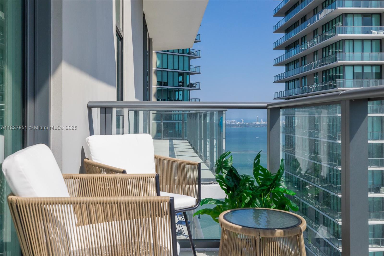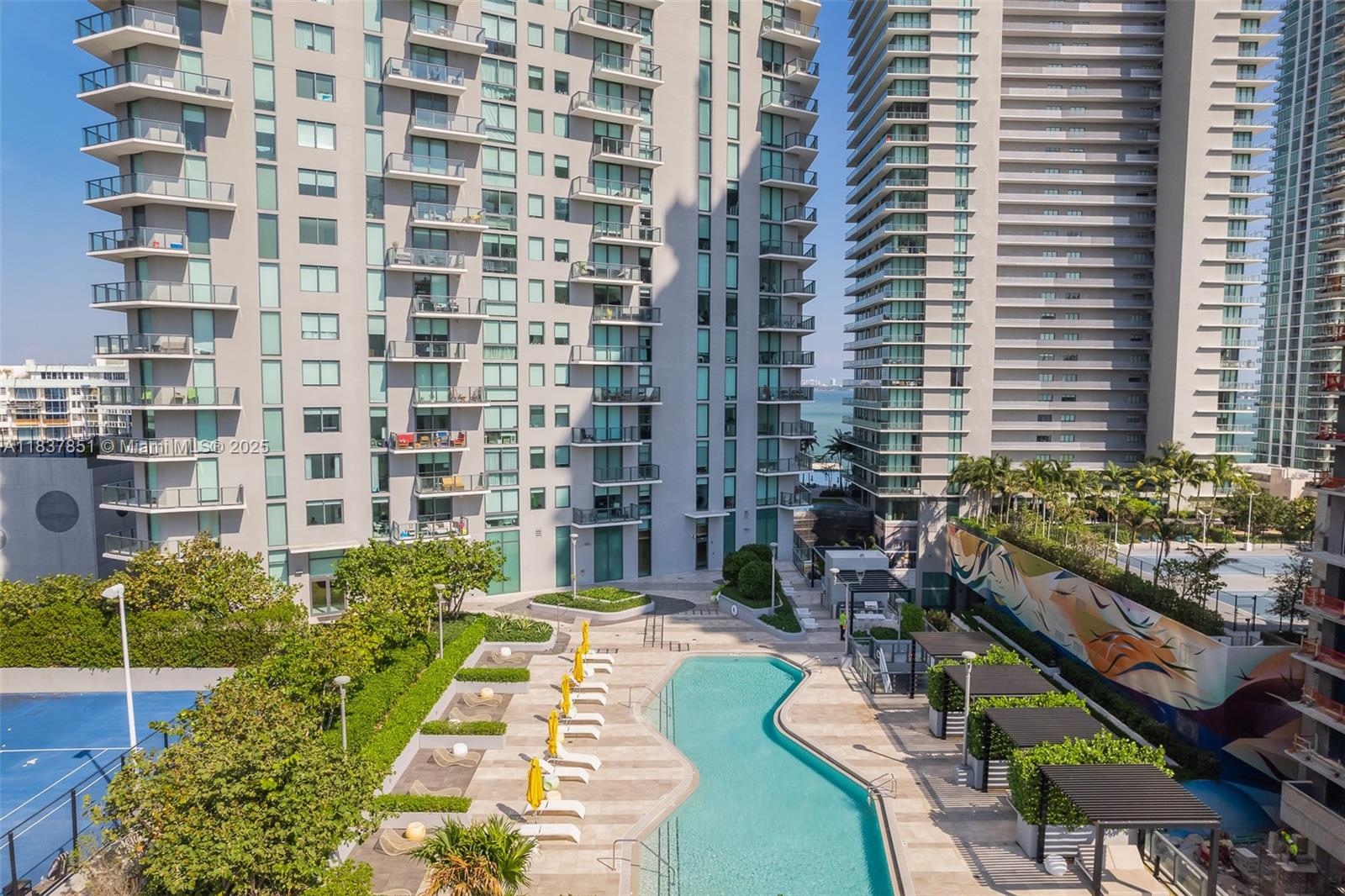 Own Miami's ultimate luxury with this upscale 1-bedroom plus den (746 SF) condo in Edgewater. Enjoy 12 ft ceilings, stylish furnishings, premium amenities, and breathtaking views of Downtown and Miami Beach Skyline. Plus, the building offers a wealth of amenities including a tennis court, two pools, BBQ area, kids room, social room, sauna, fitness room, theater, valet, front desk 24/7, and billiard room. Condo comes with one assigned parking, and one storage room located on the second floor under AC. Building allows 12 rentals per year, min 30 days.