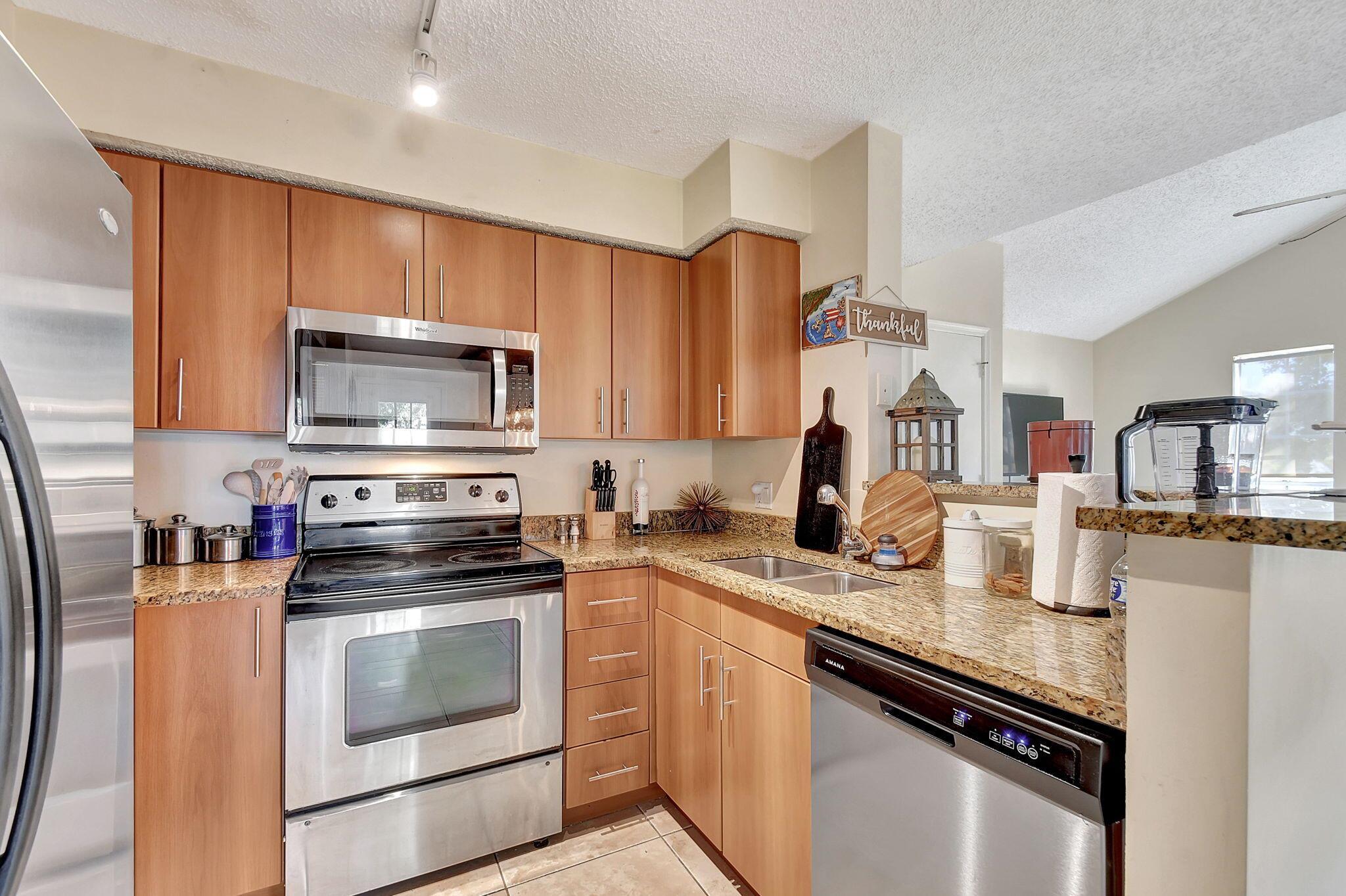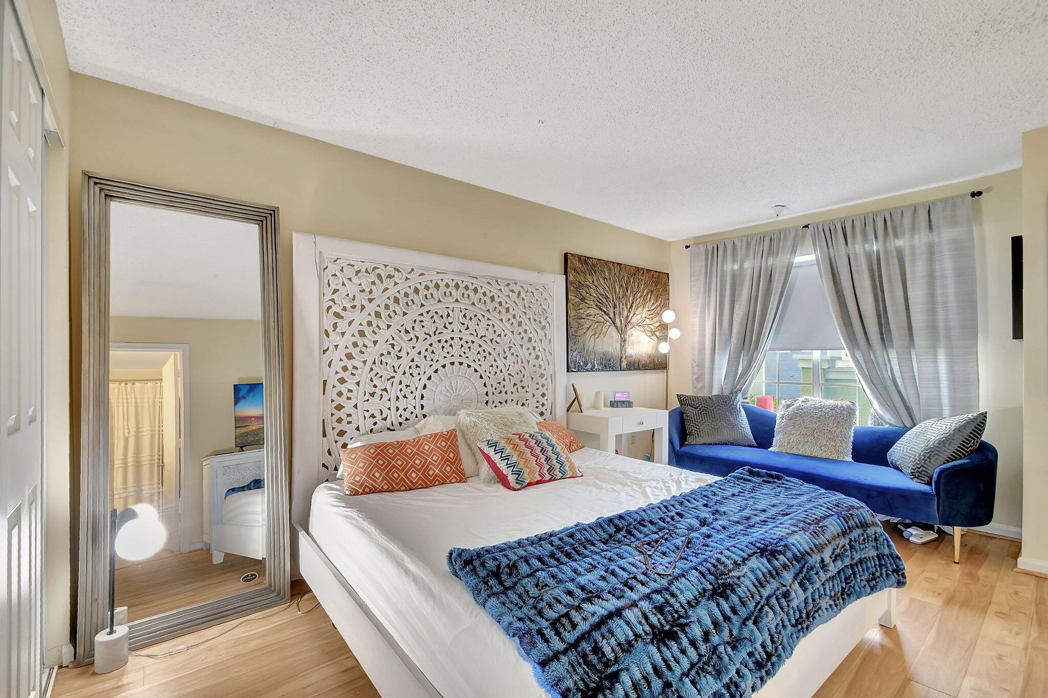 Top floor corner offers tranquil lake views from the balcony. This unit is located in the front of the building so you can conveniently park out front and walk up! Volume ceiling plus floor to ceiling windows add a spacious feeling to this open concept living area. Stylish cabinets, granite counters and stainless appliances. Tile floors and laminate in the bedrooms. No carpets here! New AC installed 2024. Tree lined streets and beautiful amenities in this gated resort style neighborhood Quick application process if ALL info submitted properly the cost to apply is $350 per applicant over 18. Assoc. States: 2 pets allowed. 40 lb limit No aggressive breeds, $45 DNA test required for all pets Attention Investors: Unit can be rented right away! Possible owner finance with 25% down!!