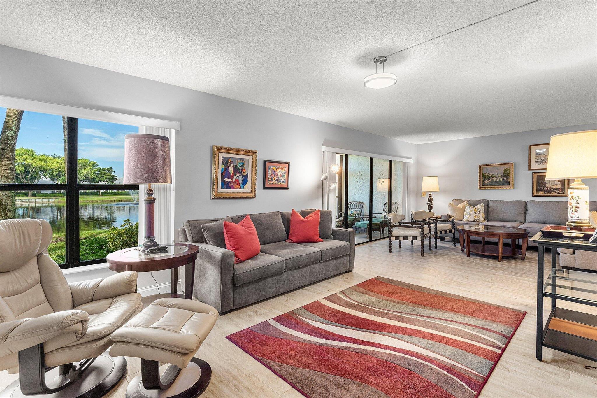 Panoramic Lake Views Await! Enjoy stunning lakefront living in this well-maintained end unit with breathtaking views of the lake, fountain, and golf course. This 2BR/2BA + den residence features a bright, open layout, spacious eat-in kitchen with newer appliances, and tranquil water views from nearly every room--including the screened porch. Nestled in a prestigious gated community with an 18-hole executive golf course, 5 Har-Tru tennis courts, 2 resort-style pools, and a newly renovated clubhouse with cafe, fitness, card room, library, entertainment & year-round activities--all without high equity fees. Manned gate for peace of mind, minutes to beaches, dining & shopping.