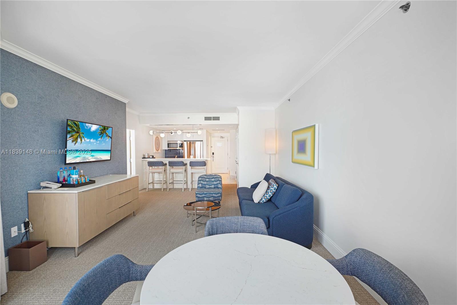 Experience the ultimate in luxury living with this oceanfront fully furnished 1 bedroom, 2 baths condo in the prestigious Fontainebleau Hotel's Tresor Residential Tower. Unit features, private foyer and private balcony with breathtaking views of the ocean and bay. The Fontainebleau offers unparalleled 5-star amenities across 22 oceanfront acres, including the iconic Liv Nightclub, award-winning restaurants, a state-of-the-art fitness center, and world-class luxury spa services. The maintenance fee covers all utilities, valet parking, and breakfast in the exclusive Owner's Lounge. Indulge in resort-style living with every convenience at your fingertips!