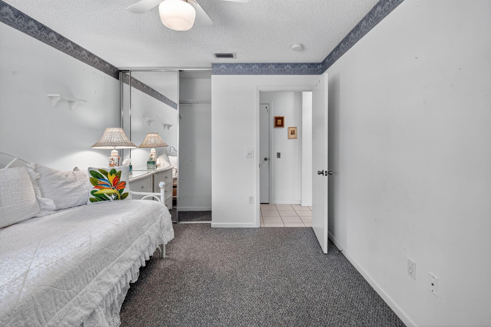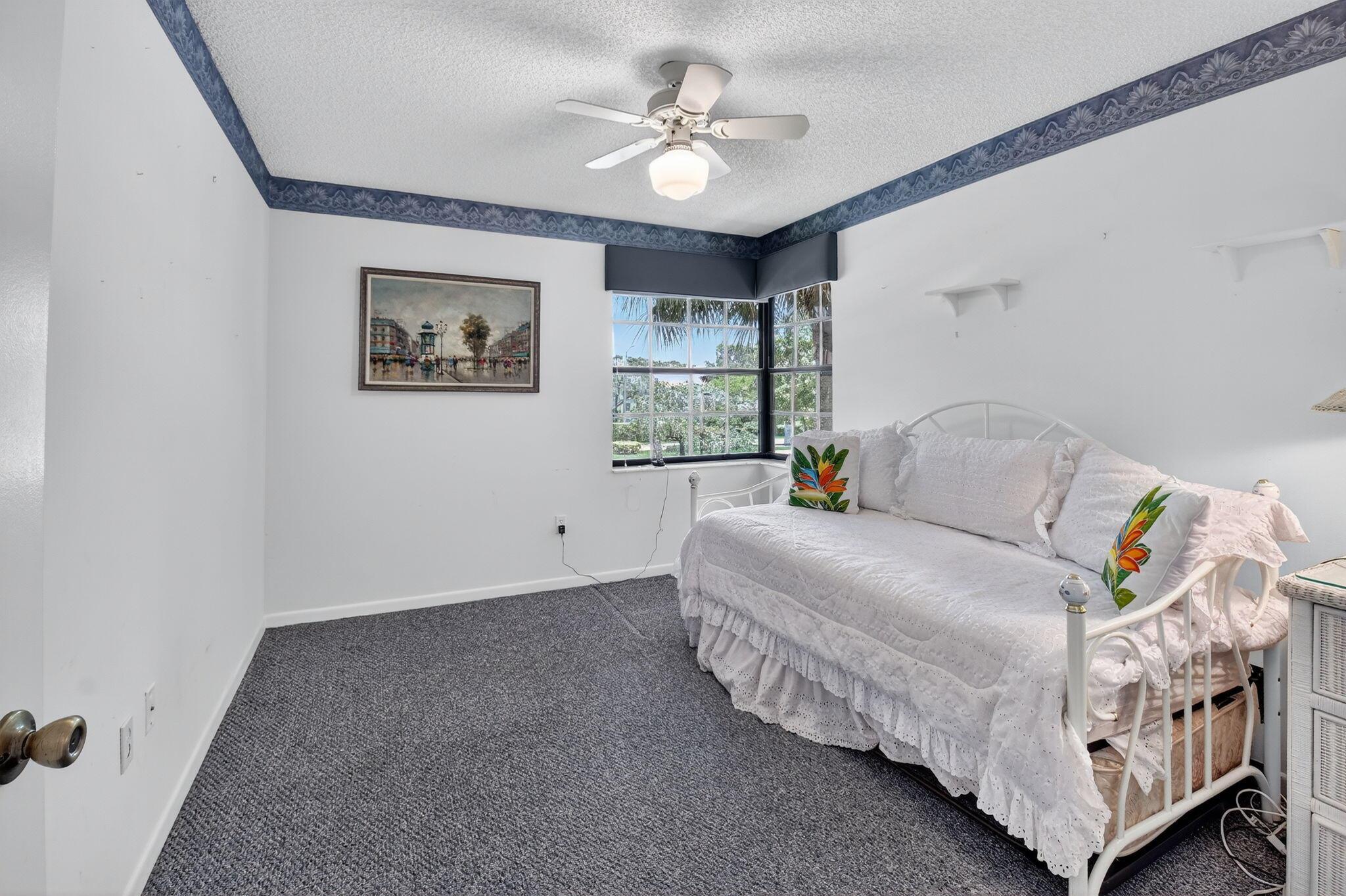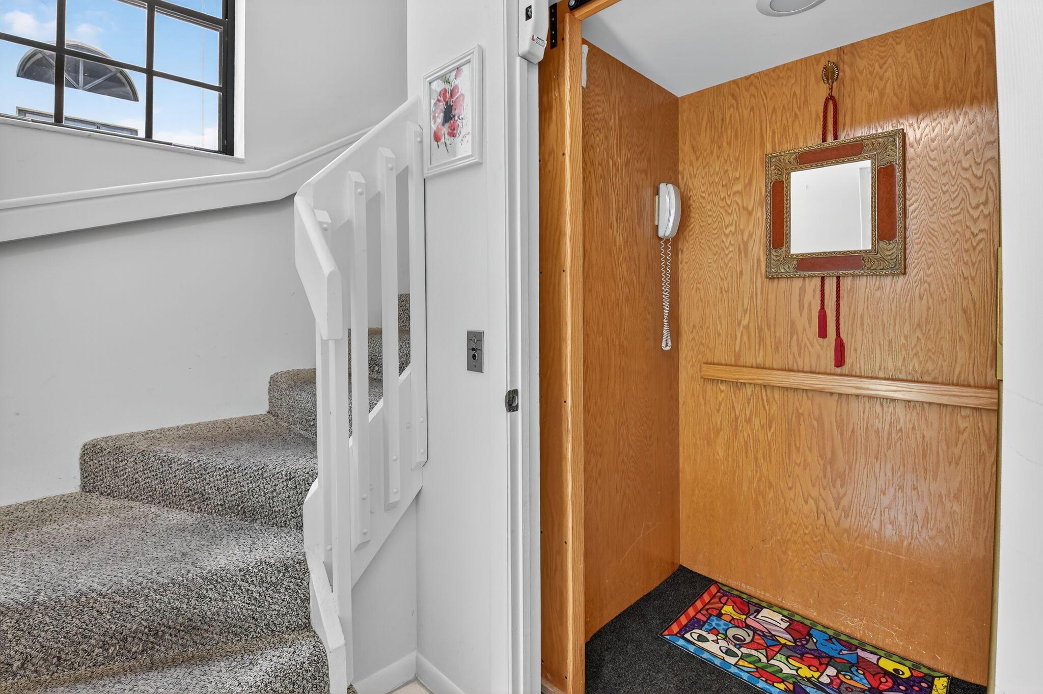 This two bedroom plus den, two full bath condo offers care-free, resort-style living. It is just a short walk from the vibrant 20,000 square foot clubhouse and an array of exceptional amenities. Access your upstairs living space using your private staircase or exclusive elevator--perfect for accessibility and ease of entry. The open, split floor plan ensures privacy and flow, with soaring ceilings creating an airy, inviting ambiance throughout. The spacious eat-in kitchen has abundant storage and a generous pantry for all your essentials. The master suite features a custom-fitted walk-in closet and a large bathroom complete with dual sinks, a vanity, and both a handicap accessible shower and a regular walk-in shower--designed to cater to every need.