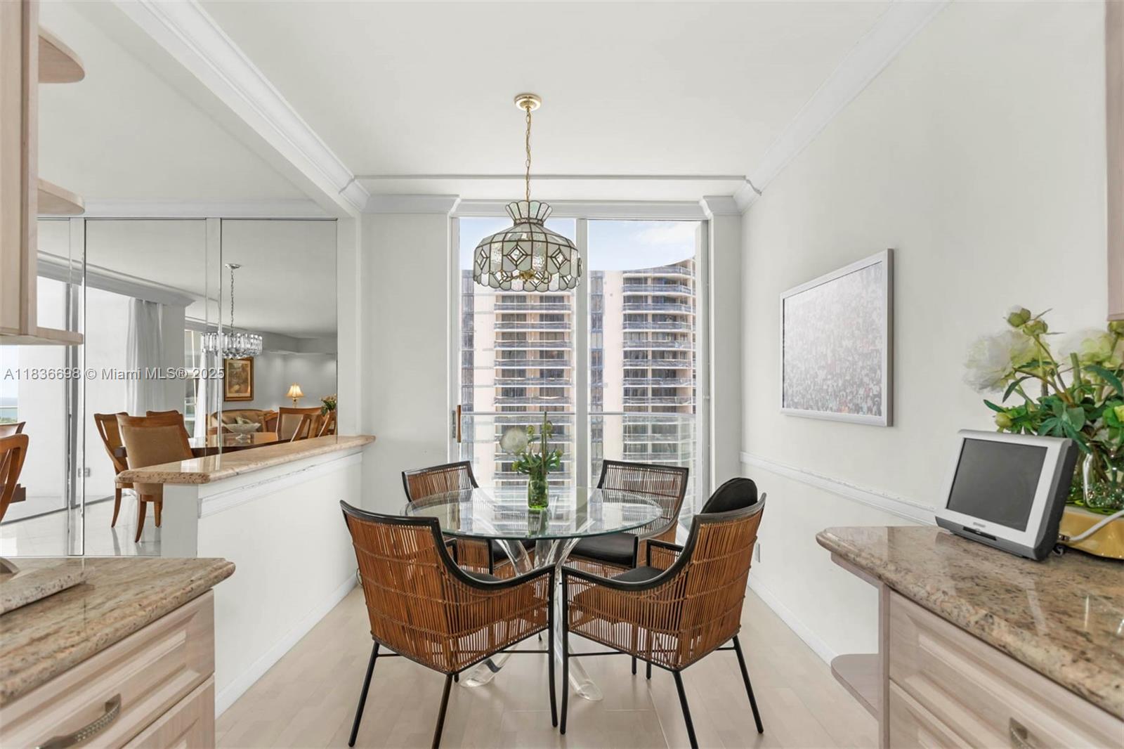 BEST PRICED OCEAN CORNER in TURNBERRY..Opportunity knocks! SPECTACULAR ocean, intracoastal and golf views. Enjoy 1825 sq ft of this spacious corner unit, wrap around terrace. NEW BATHROOMS, RENOVATED kitchen, enormous closets. Luxury amenities, 24 hour valet, security, glamorous pool and spa, fitness. Close to beaches, great restaurants, shopping, golf and much more.. Easy to show...NO SATURDAYS