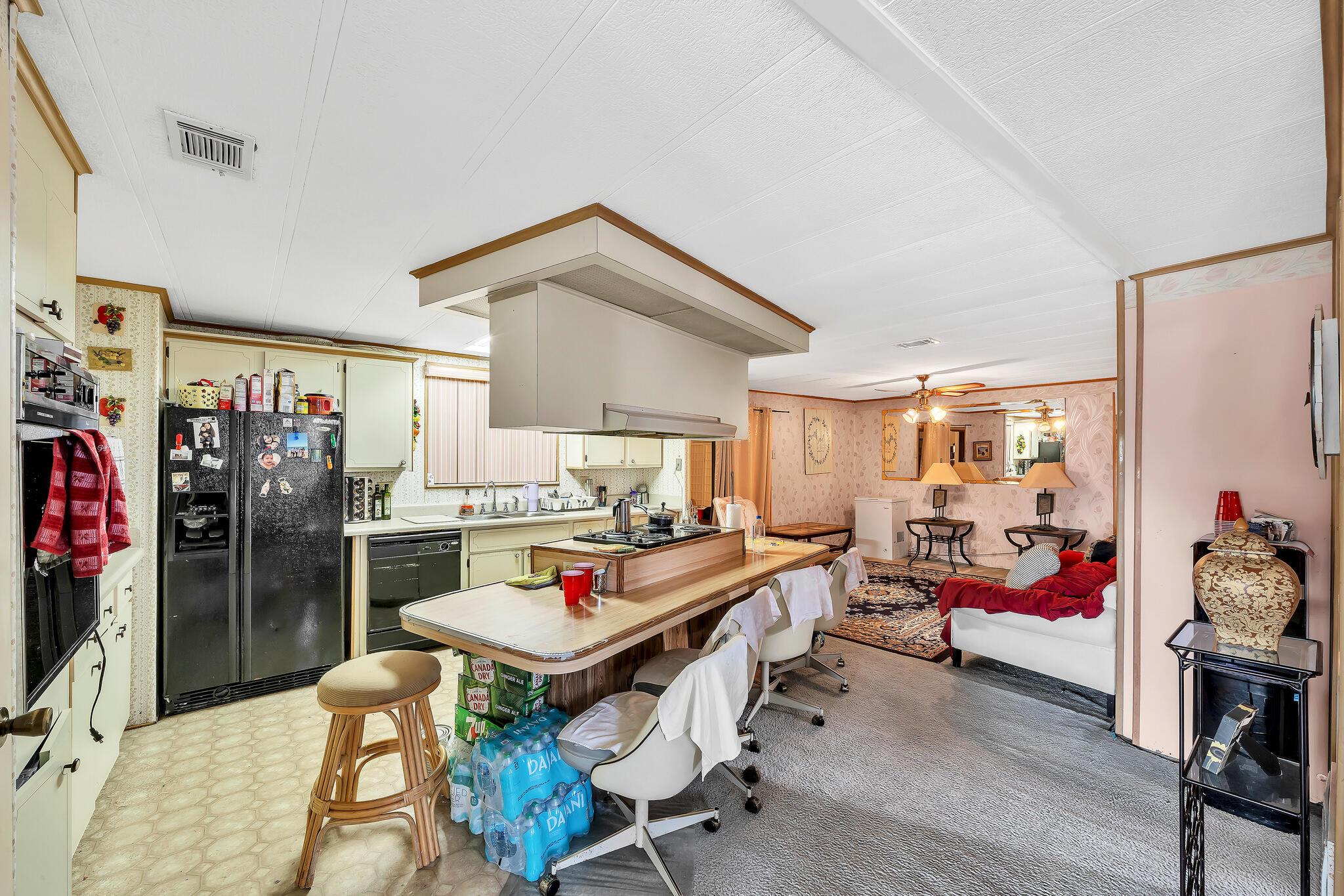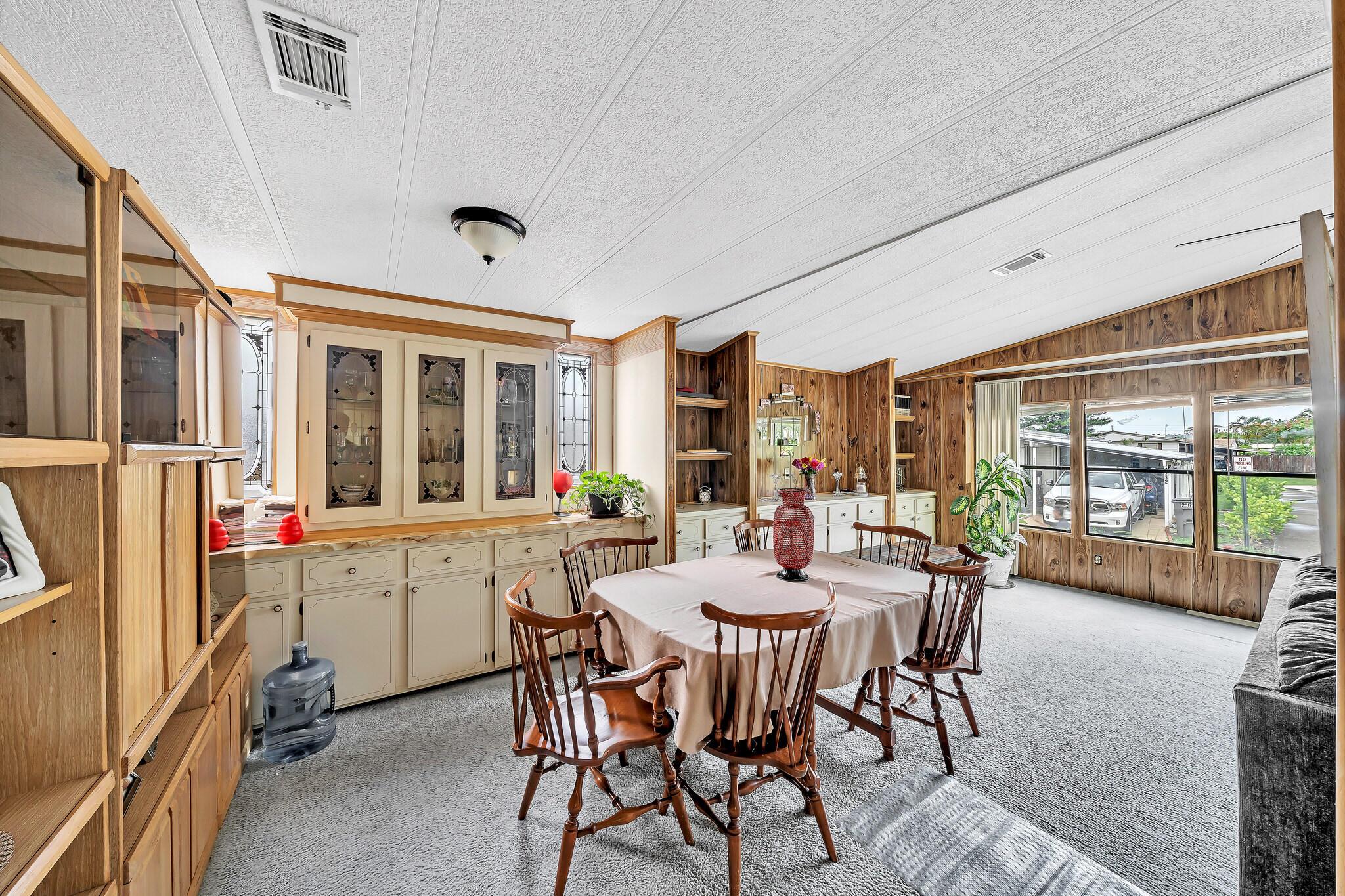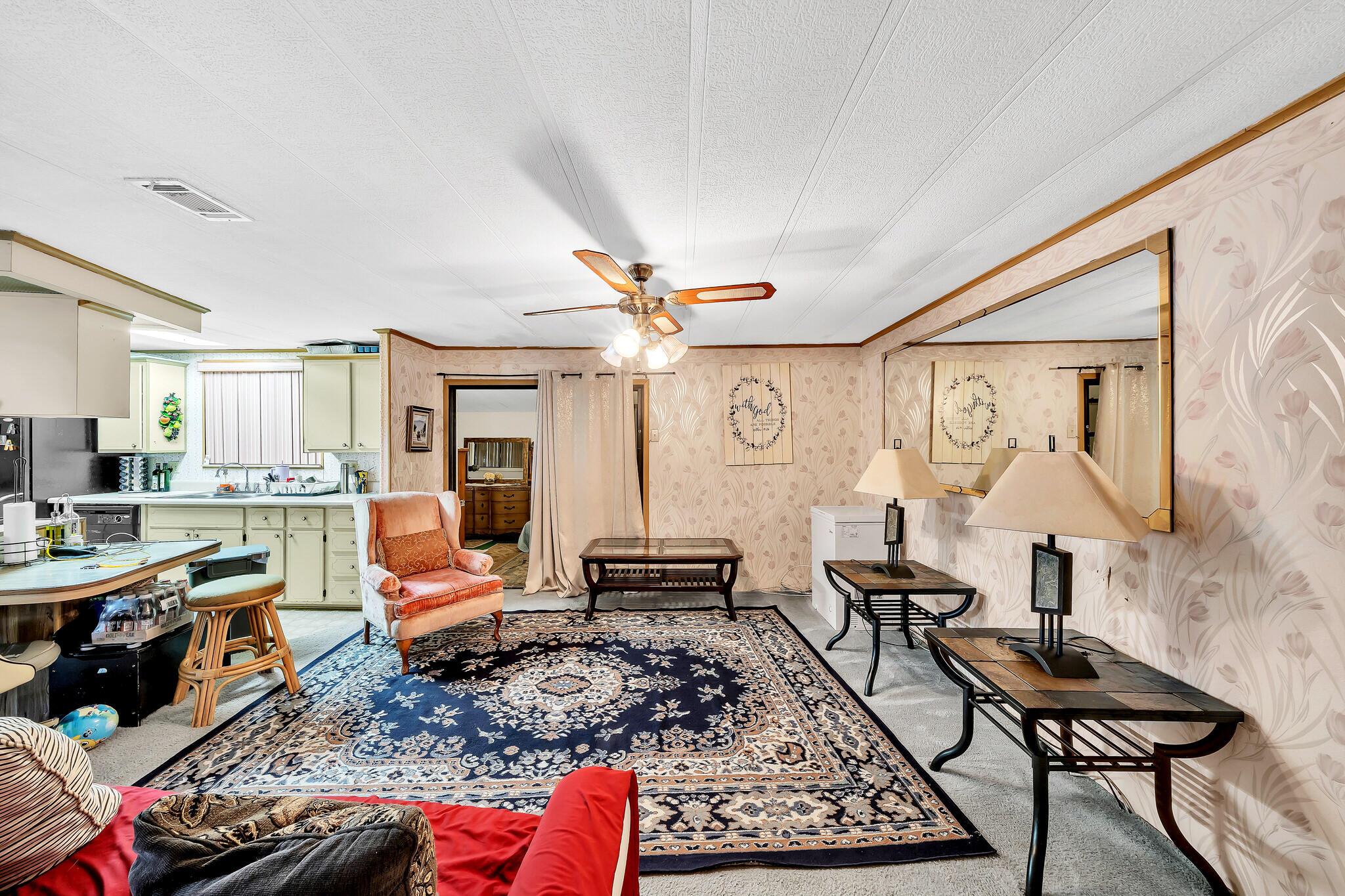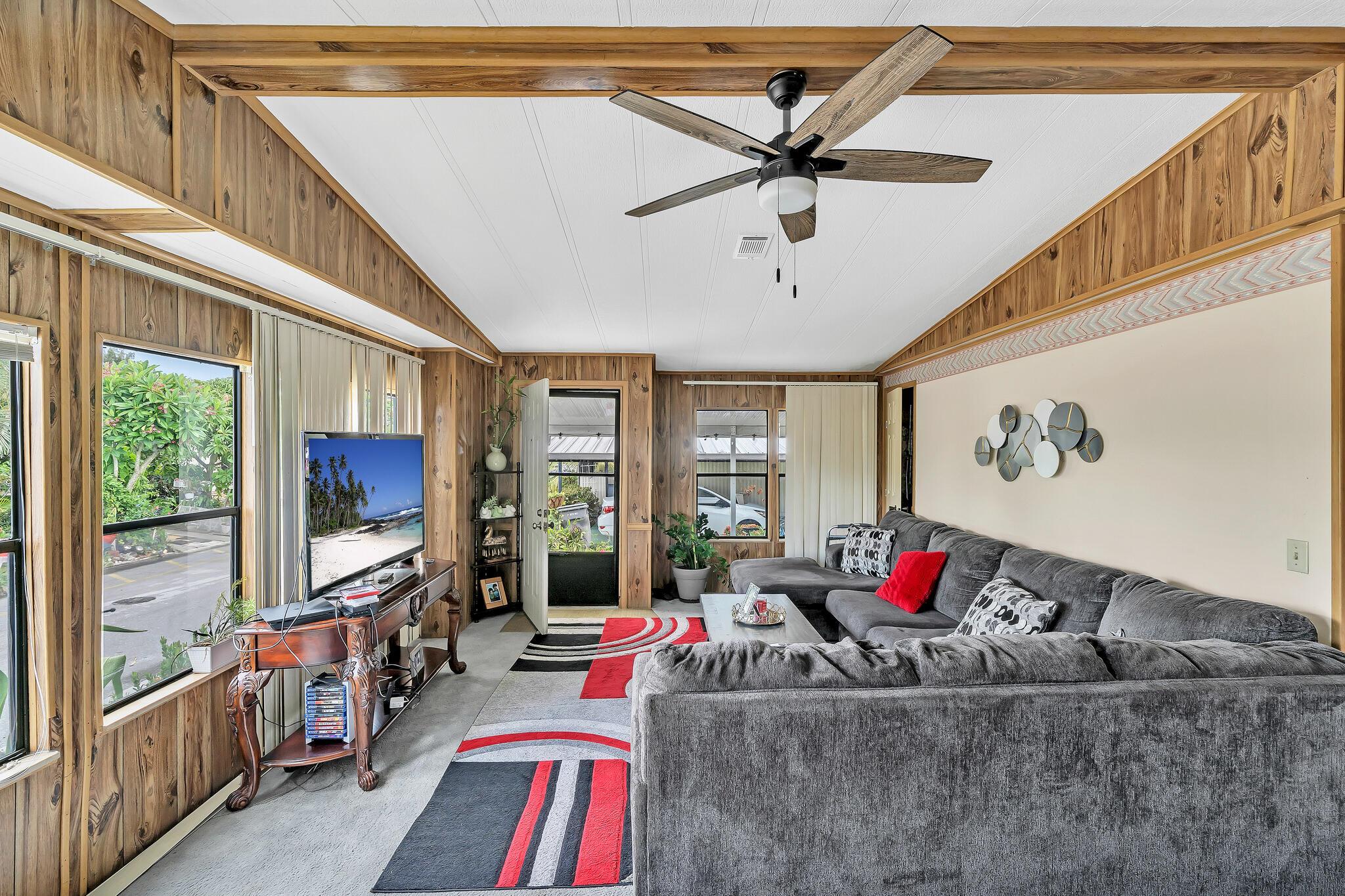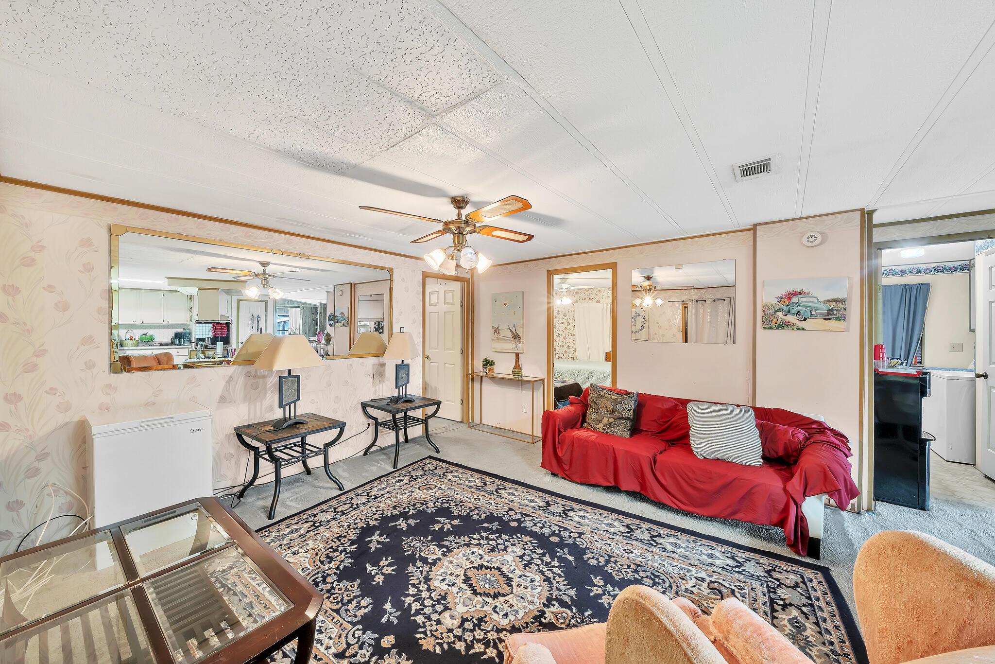 Nicely taken care of manufactured home with 3/2 and ample space in the Palm Beach Colony. Built in 1985 and roof was repaired 7 years ago, potential for 2 income producing efficiencies. Come see it today you will love it!