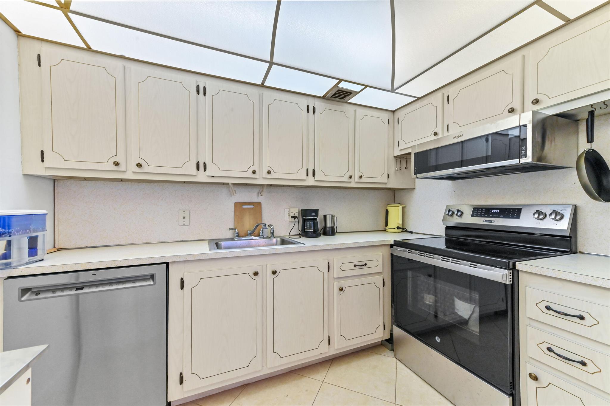 Beautiful 4th-Floor 2 Bedroom, 2 Bath Condo in Prime Location!Nestled in the heart of the Century Village East, this spacious condo offers peace and quiet, set away from road noise and just a short walk to the pool and clubhouse. The unit features large diagonal-set ceramic tile throughout, creating a bright and open feel from front to back.Offered fully furnished and move-in ready, the home includes a guest bathroom with a walk-in shower and glass doors. Step onto the enclosed patio with sliding glass windows and enjoy your morning coffee while taking in the tranquil garden views. A convenient community picnic area is located just outside, perfect for relaxing or entertaining guests.