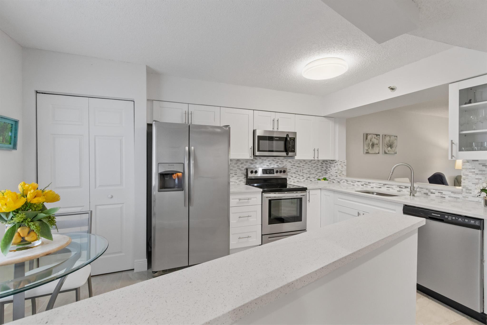 WOW! CORNER UNIT! UPDATED highly sought after Lancaster model in the ONLY section of Huntington Lakes w/ a satellite clubhouse. No carpeting! Stunning tile flooring throughout! Renovated eat-in kitchen w/ s/s appliances, soft close cabinets & quartz countertops. Enclosed balcony features windows that open & close allowing you to use this space ALL year long! Completely renovated bathrooms w/ large sized showers & beautiful tile work. Large primary suite with room for sitting area, two walk-in closets & access to covered balcony. Second bedroom is connected to guest bath for privacy. Utility closet inside the unit w/ washer/dryer & storage. Storage unit included. Special Assessment is PAID! Huntington Lakes RENOVATED clubhouse is a MUST SEE! Indoor pool