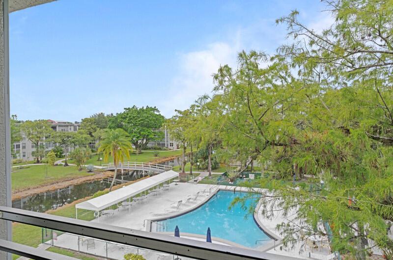 Discover this pristine, move-in ready 2/2 situated on the fourth floor of the highly desirable 55+ community of Cypress Chase -- offering peace of mind with no neighbors above and the most serene balcony view in the neighborhood. Gaze out over lush gardens, a sparkling pool, a peaceful canal, and a charming bridge from your private balcony, with sliding glass doors that fill the space with natural light.Inside, you'll find a spacious, bright layout featuring a generous dining and living area that is perfect for both relaxing and entertaining. The simple yet beautiful kitchen shines with white cabinetry, matching white appliances, a custom white backsplash, and rich, dark brown countertops that add a touch of warmth and sophistication. The master includes an en suite bathroom and...