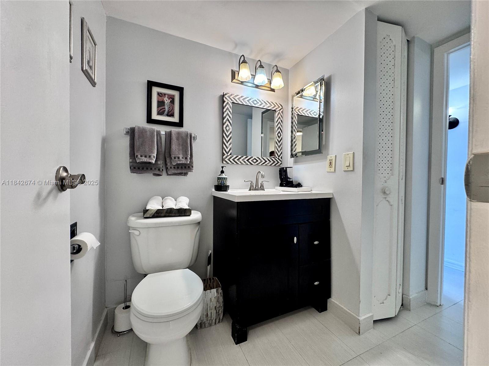 Beautiful, scenic, serenity view of West Country Club Drive landscaping from your oversized balcony.. This modern designed, spacious 1 bedroom 1 and 1/2 bathroom has Updated Kitchen and Bathrooms, with white tile throughout... Very comfortable layout includes generous sized owner's suite with 2 walk-in closets. Laundry facilities on each floor, 1 assigned parking space and ample guest parking. Amenities include: club house, library, BBQ area, billiard room, gym, sauna, renovated heated pool + 24 hr security. Located convenient to everything you will need.. Aventura Mall, Aventura Library, convenient to all shopping and houses of worship, Plus the Aventura Courtesy Shuttle Bus. Seller is moving north to be near family. Great location + size + condition = value...at a realistic price tag.