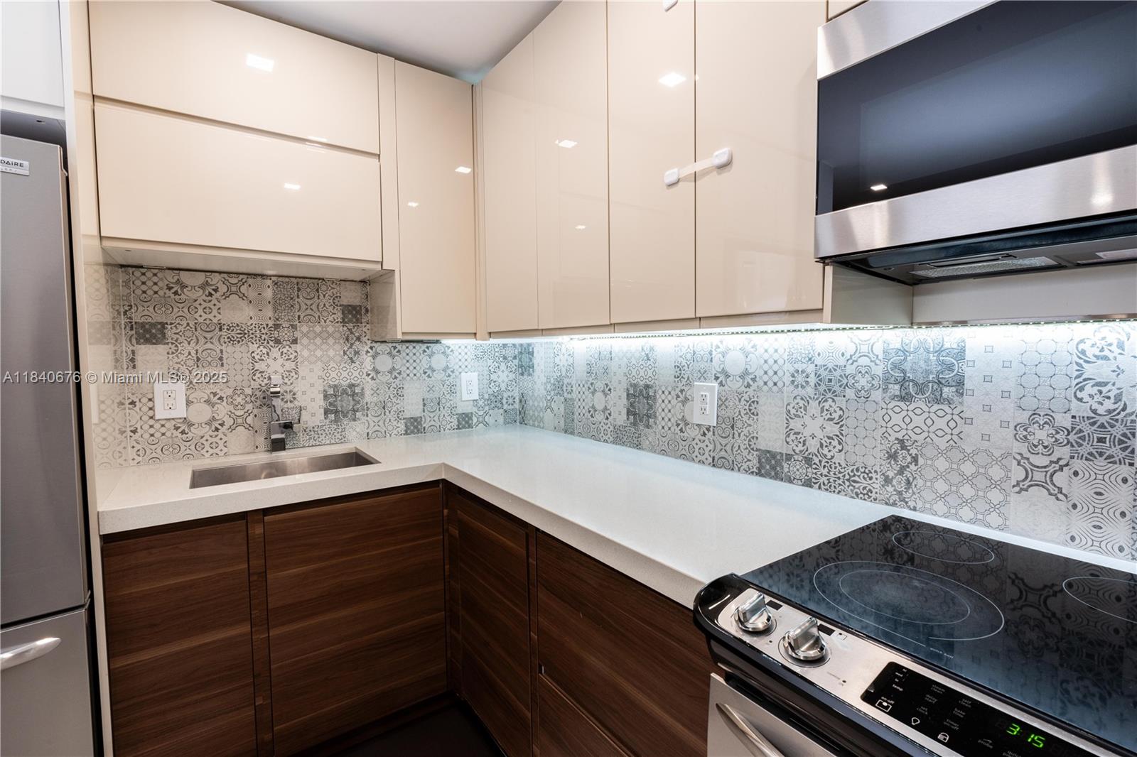 Feel the fresh energy of North Shore Miami Beach & discover this fully updated cozy 2 bed/2 bath directly on the Intracoastal Waterway.LOW MONTHLY HOA includes water, a reserved covered parking space & a pool.Custom kitchen, modern bathrooms, updated electrical with led lighting & tile flooring throughout.New A/C & water heater, in-unit washer/dryer, wood shelving in closets, balcony & two additional storage closets.Furniture & TVs included.Come be part of a thriving, walkable neighborhood surrounded by beaches, live music venues, farmers market, BBQ park, community pool, youth center, Miami Beach boardwalk connecting SoBe to Bal Harbor, & a variety of culture. Never a dull moment yet relaxing; experience coastal living with convenience in North Shore Miami Beach(Building HOA has reserves)