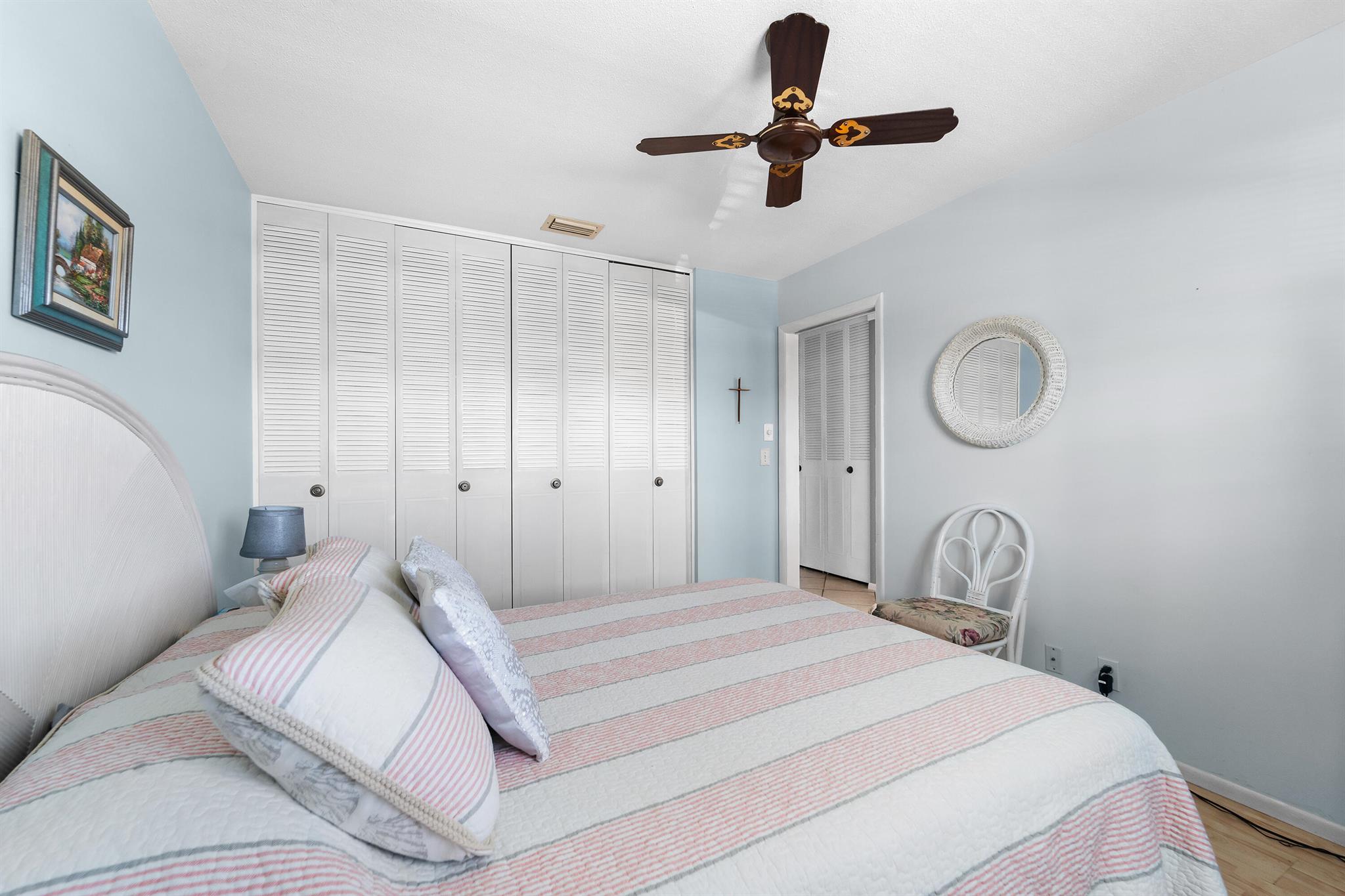 Updated, well maintained 2 bedroom, 2 bathrooms, furnished Townhouse Villa, with Hurricane Impact windows and accordion type shutters. The condo has classic crown moldings, tile and laminated wood floors, no carpets, glass-top stove, new refrigerator and new dish washer, located across the street from the clubhouse in a 55+community. New inside electric panel, new roofs, with assigned parking directly in front of the unit. The Master bedroom features ensuite bathroom with walk in shower, tub and shower in guest bathroom, large closets and storage throughout the condo. Low monthly maintenance, which includes internet, cable, water, garbage, onsite laundry facilities with assigned laundry time. The condo has an adjacent tiled patio with umbrella, BBQ, table and chairs.