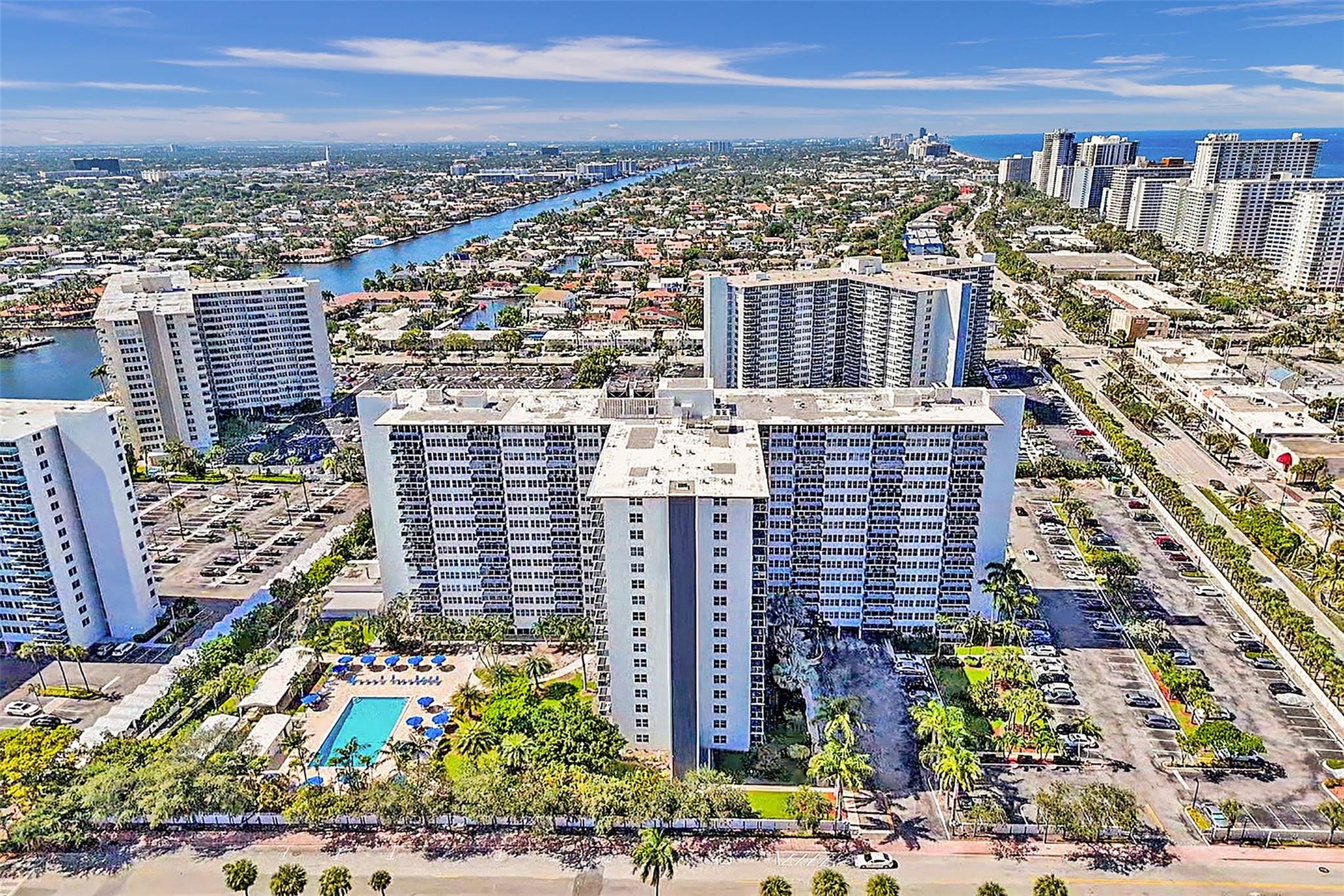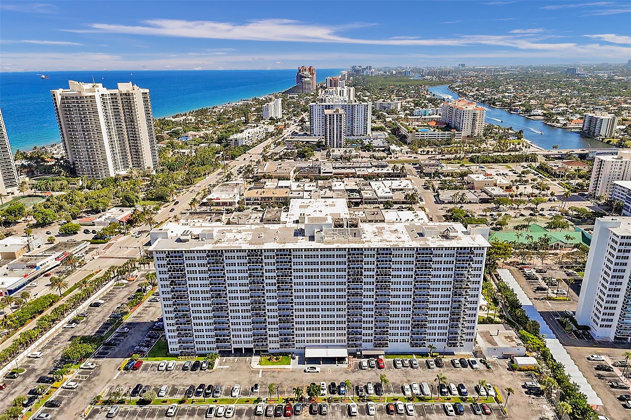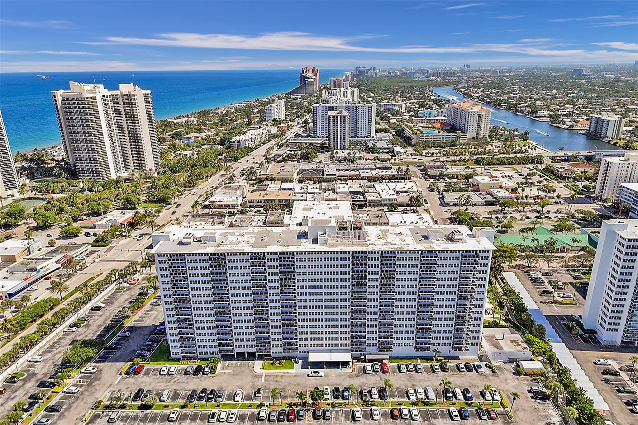 New Price! Best Value in Coral Ridge Towers. Motivated Seller. Views of the intracoastal and ocean from the balcony as you sit out with your evening beverage of choice. This move-in ready unit exudes warmth and comfort throughout. Elegant crown molding throughout. Tile Floors in living area, and soft cozy carpet in Bedroom. Impact Glass throughout, a brand new balcony with stunning views. You never have to leave the premises. Lobby level has a fitness room, Library, and large Community Room for your convenience, bike Storage. Or, step out the door to the large private pool and canopied area to get out of the sun, and perhaps do some BBQing. 55+ Co-Op provides the best of easy living, with access to all area activities. Assessments were paid by Seller. No Pending assessments