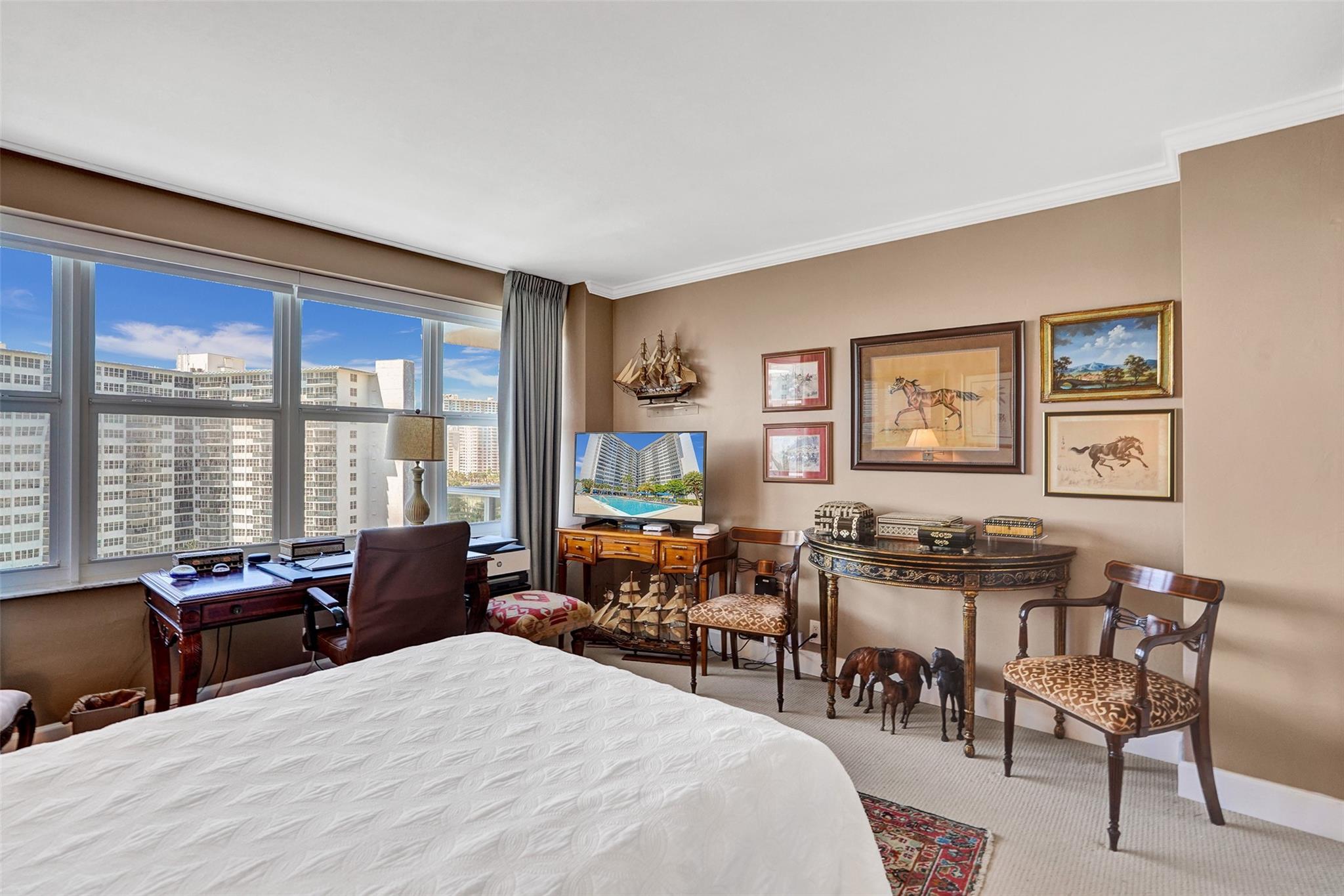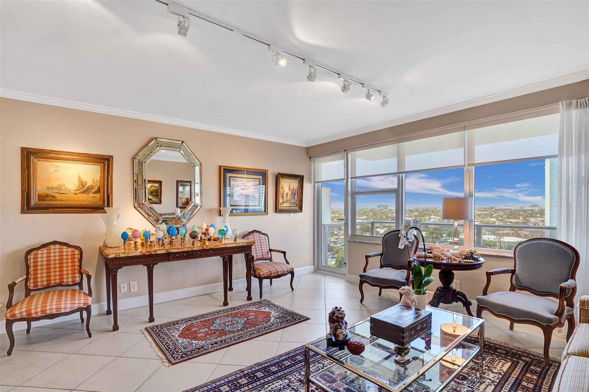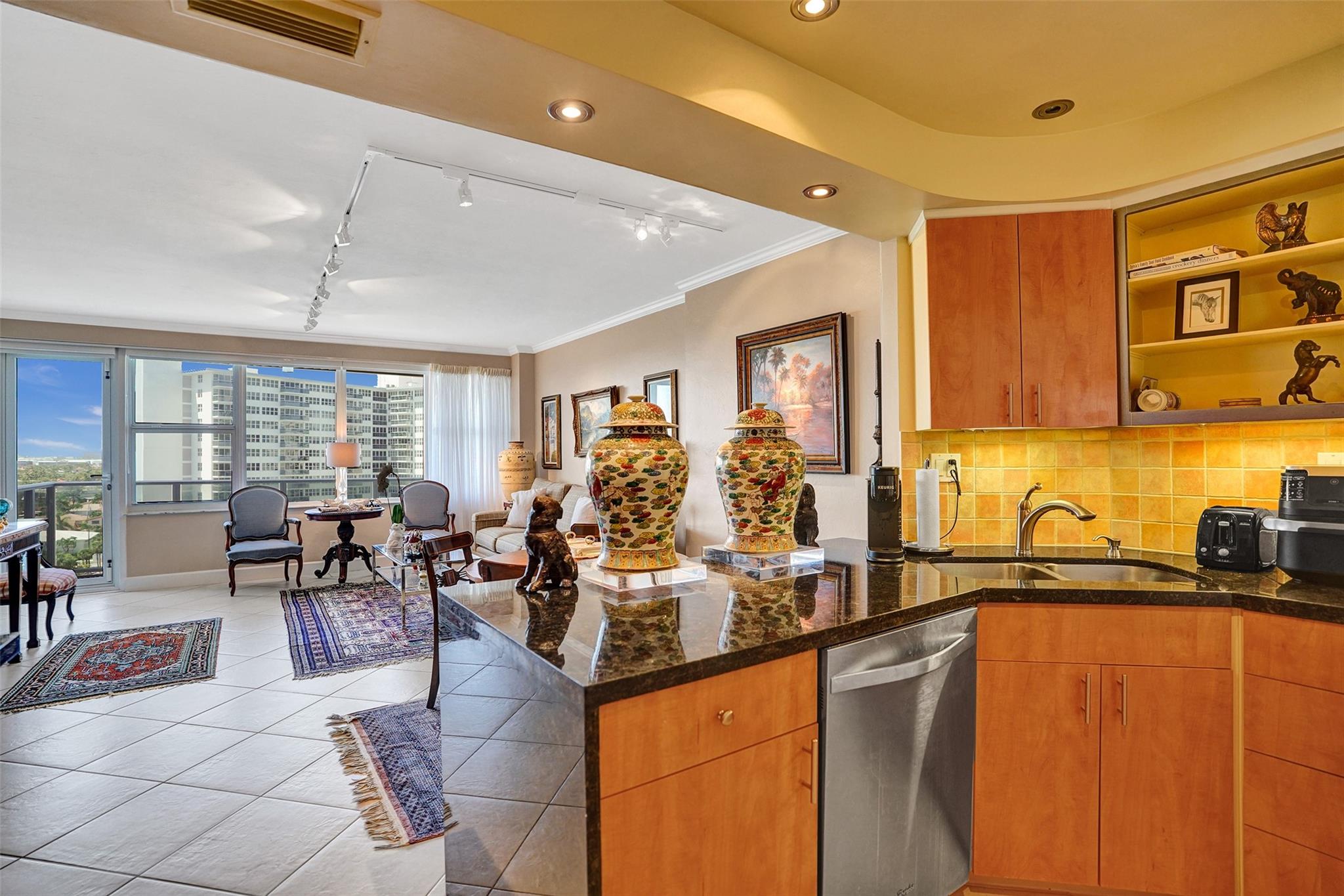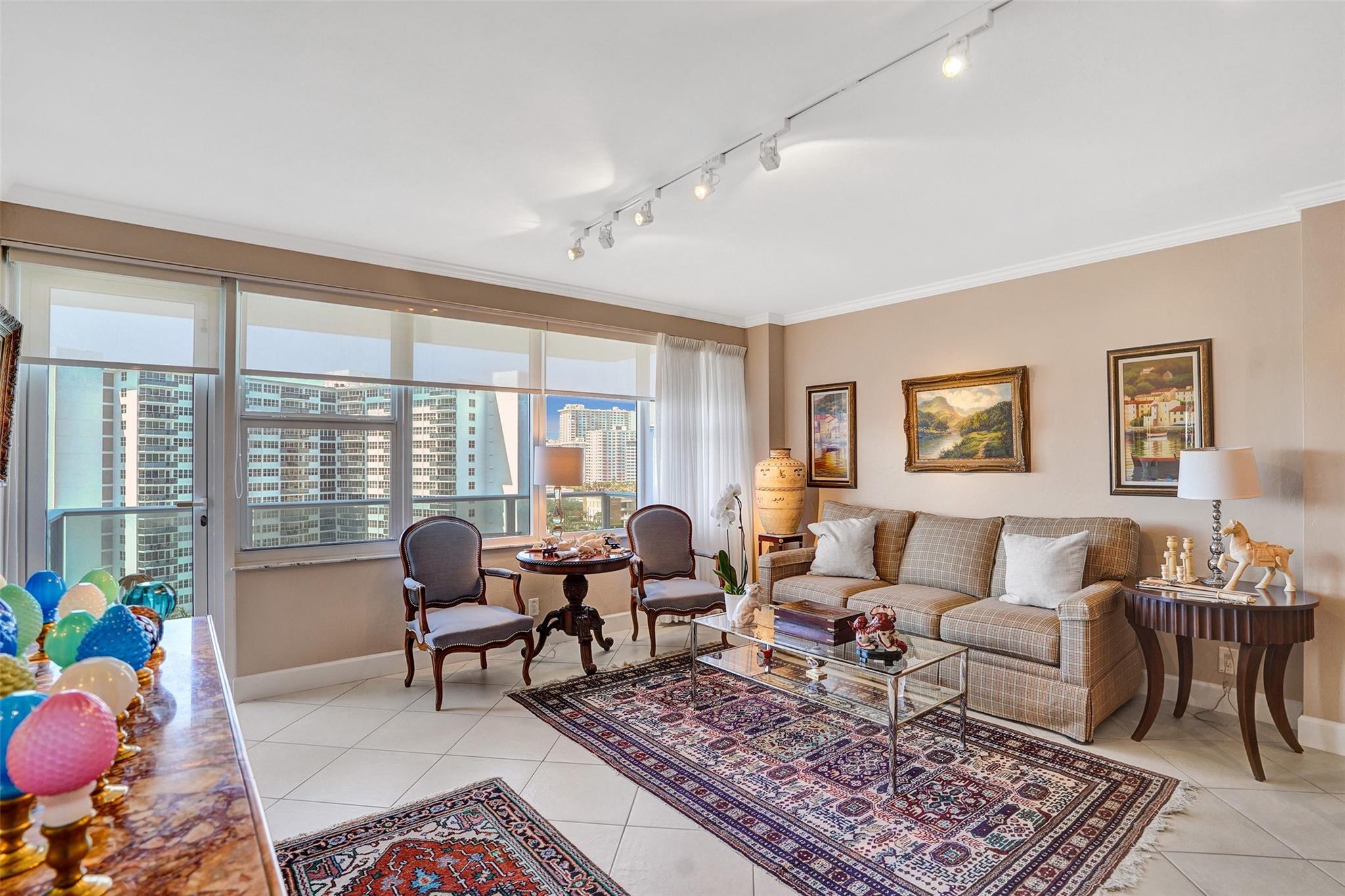 New Price! Best Value in Coral Ridge Towers. Motivated Seller. Views of the intracoastal and ocean from the balcony as you sit out with your evening beverage of choice. This move-in ready unit exudes warmth and comfort throughout. Elegant crown molding throughout. Tile Floors in living area, and soft cozy carpet in Bedroom. Impact Glass throughout, a brand new balcony with stunning views. You never have to leave the premises. Lobby level has a fitness room, Library, and large Community Room for your convenience, bike Storage. Or, step out the door to the large private pool and canopied area to get out of the sun, and perhaps do some BBQing. 55+ Co-Op provides the best of easy living, with access to all area activities. Assessments were paid by Seller. No Pending assessments