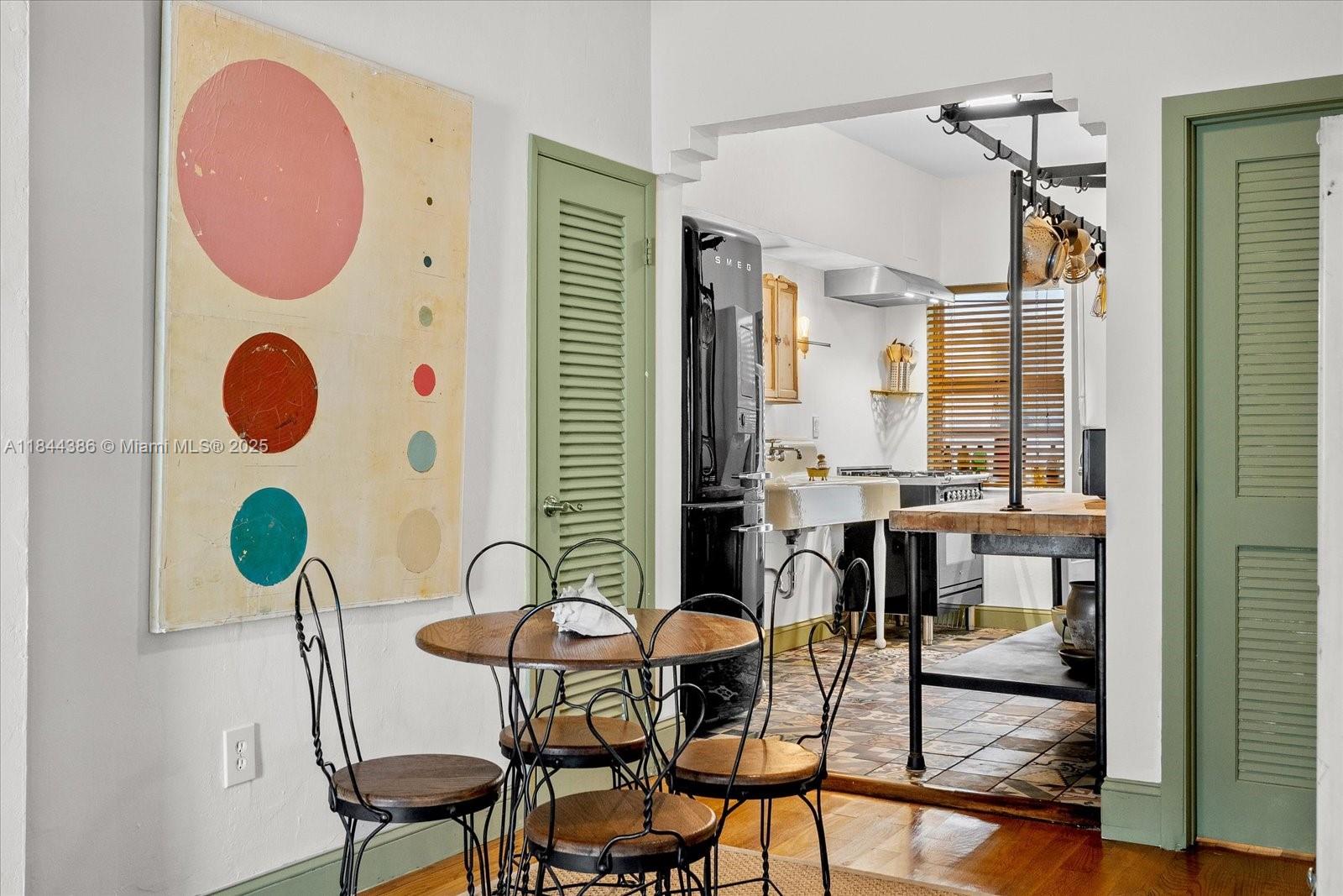 Step into vintage charm with modern flair in this SoBe Art Deco unit that looks straight out of a Hollywood film! The chef’s kitchen is a masterpiece with an Italian ILVE 5-burner stove, SMEG fridge, farmhouse porcelain sink and a butcher block workbench for the ultimate culinary experience. Relax in clawfoot tub with luxe chrome fixtures, surrounded by rare antique bath pieces sourced from the Berkshire Mountains. Some upgrades include new wood floors, door fixtures, new washer and dryer and fresh paint throughout. Best of all, it comes with one dedicated parking space. Located on the most beautiful, tree-lined block in SoBe, right across from the newly revamped multi-million dollar Flamingo Park and within walking distance to Lincoln Rd, shops, restaurants and beaches.