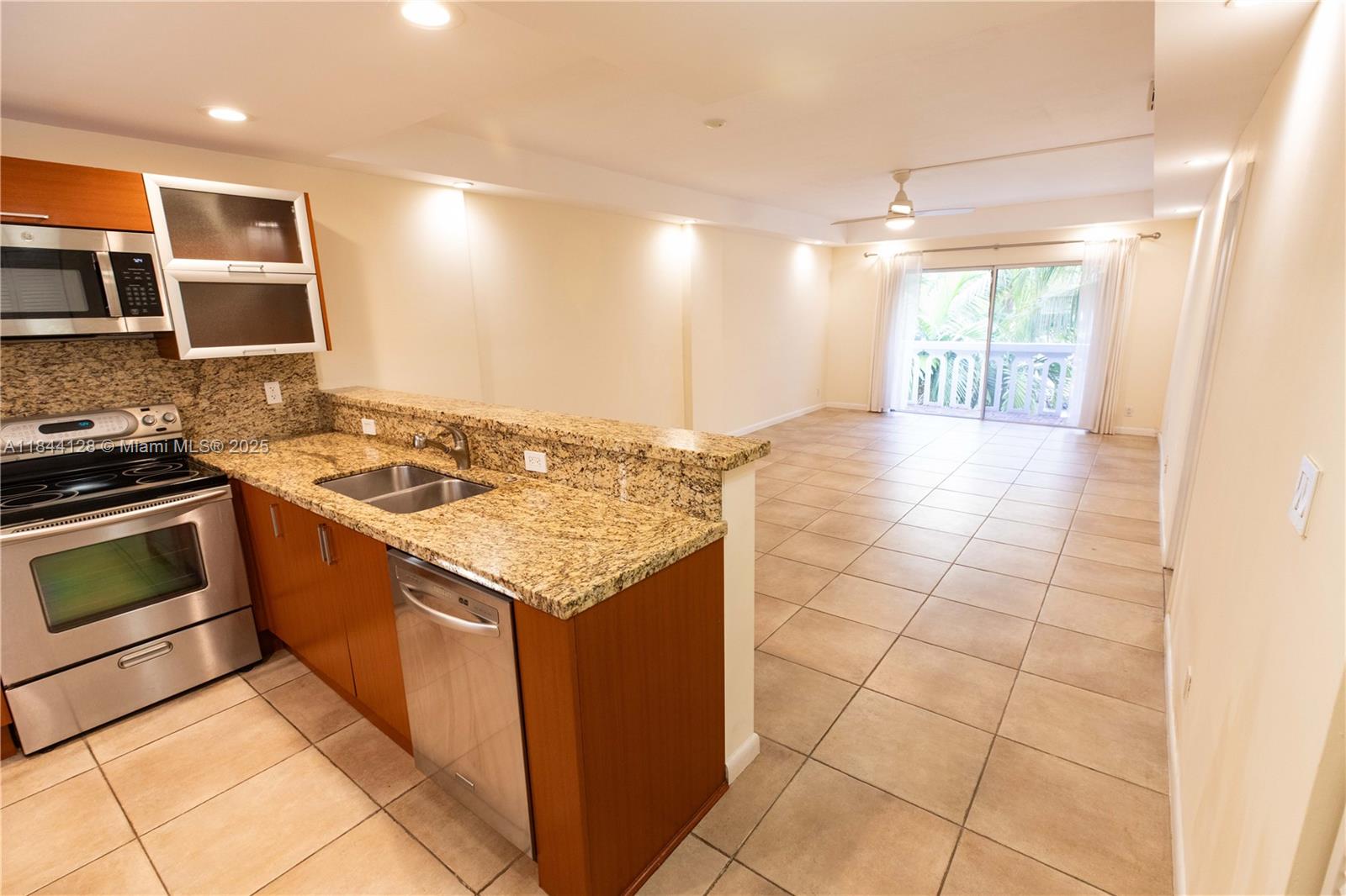 Live in a prime location in a relaxing, bright and airy condo. Spacious one bedroom with one and one half bath. Open floor plan with an updated kitchen, granite countertops and SS appliances. Unit has tile floors throughout, two updated baths, primary bathroom with a walk-in shower, bedroom has two spacious closets. Enjoy the open balcony and (1) one assigned parking space. The building has several laundry facilities, beautiful gardens, BBQ area and pool overlooking the canal, boats and beautiful homes. Steps away from the water and parks. Close to restaurants and entertainment in the Gables and Coconut Grove. Easy to show.
