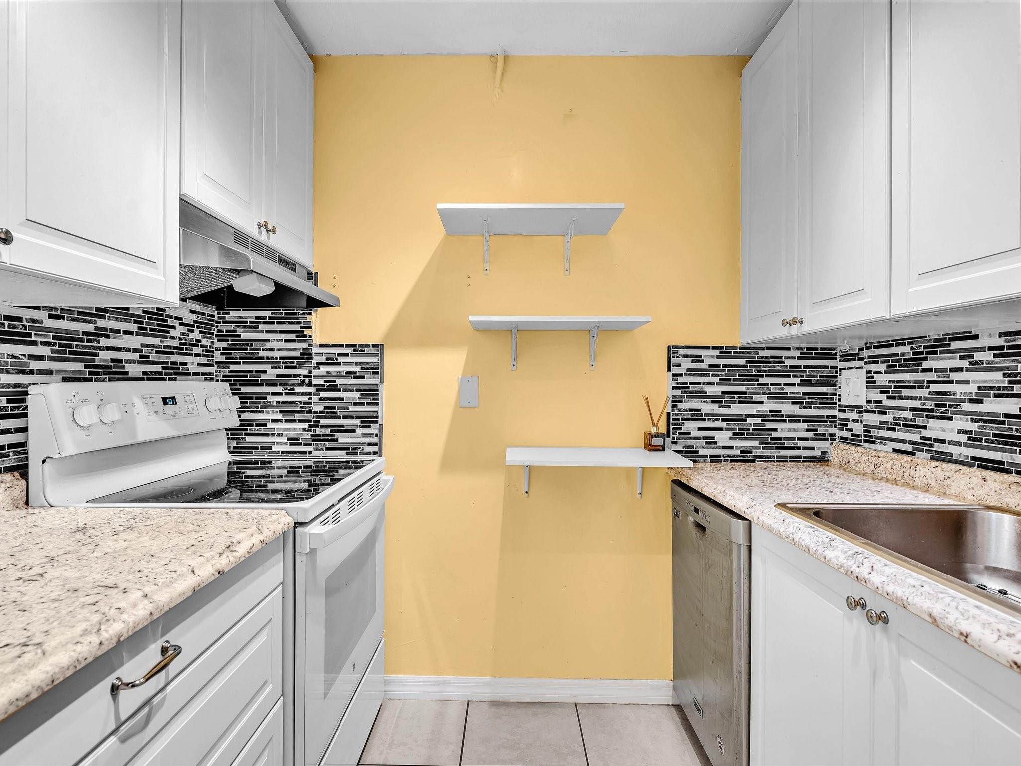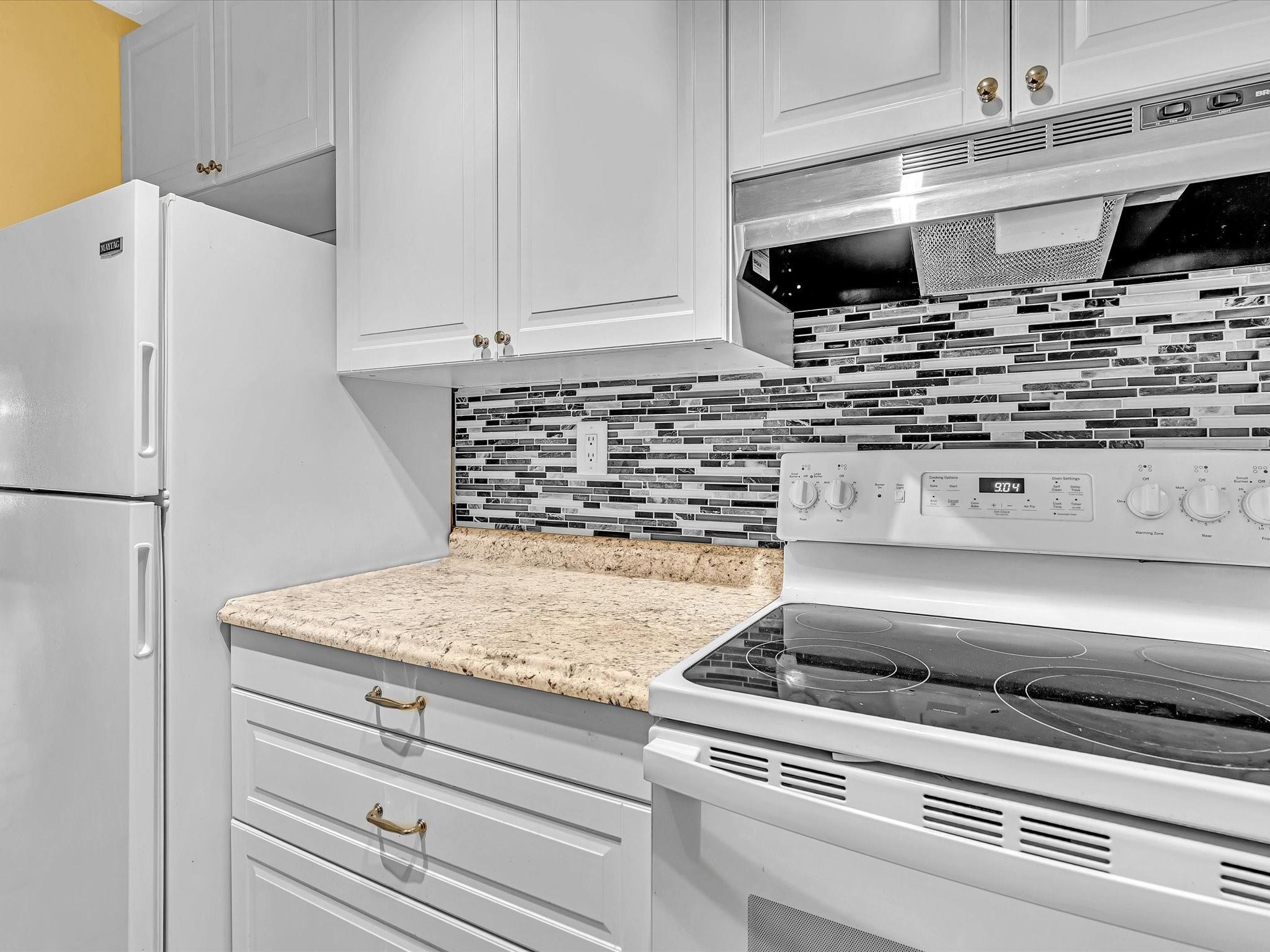 Buyer financing fell through! Back on the market! Act fast! Beautiful and charming1BR/1.5BA condo (690 sqft) in a great location near shopping, HomeGoods, Publix, restaurants, and Starbucks. AC 2024, newer refrigerator, oven 3 yrs old, water heater 8 yrs. Accordion shutters in bedroom for peace of mind. Freshly painted building with brand new roof. Washer & dryer in unit. Assigned parking plus lots of guest parking spaces. Low HOA $228/month. No pets allowed. Can be leased after a 1 year of ownership. Perfect for comfortable living in a well-maintained community!