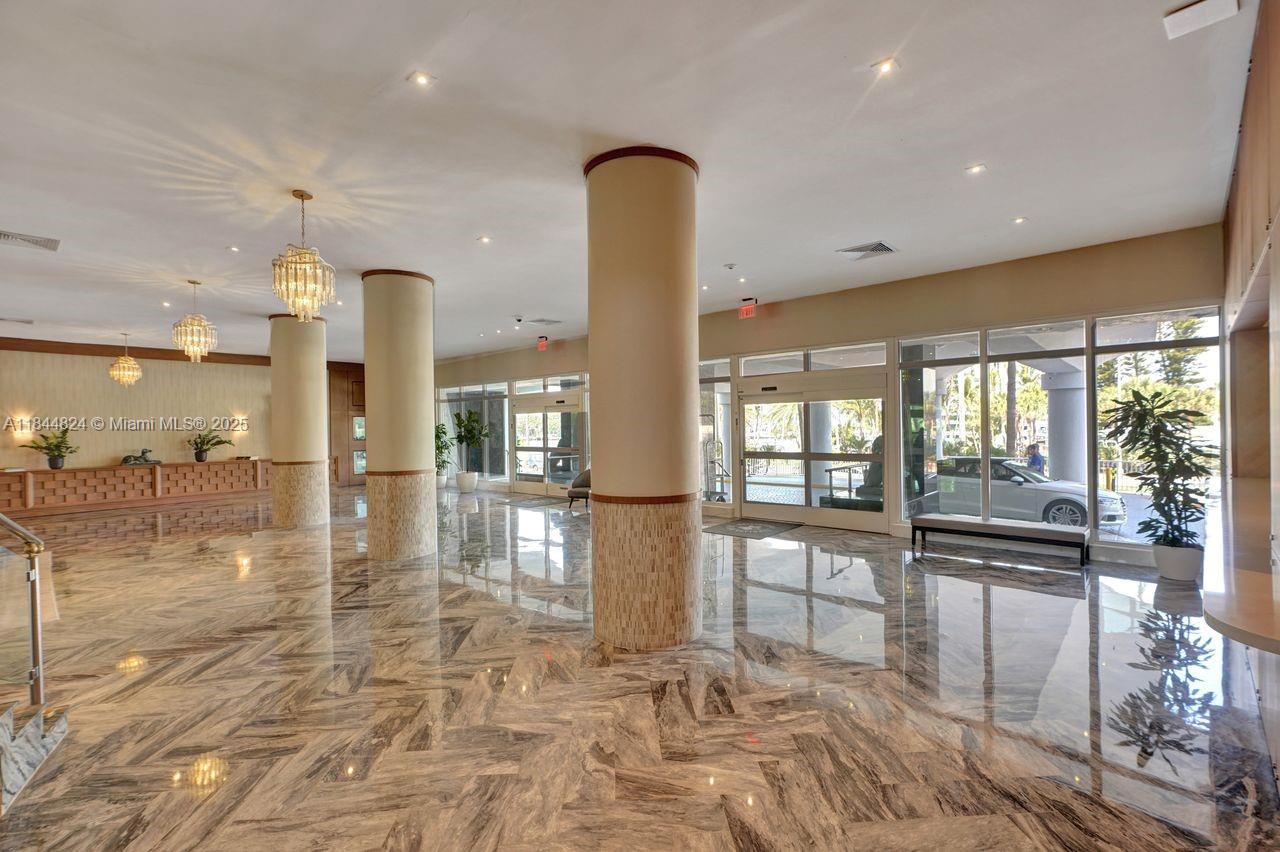 Oceanfront 2BD/2BA condo with split floor plan and 1,550 SqFt of spacious interior living. Electricity included in condo fees! No balcony plus bright and open layout with impact windows, marble and tile floors, remod kitchen and baths. Enjoy the convenience of an in-unit washer/dryer . Includes 1 assigned garage space +valet. Building offers resort-style amenities: direct beach access, tennis & racquetball courts, beauty salon, mini-market, dry cleaners/tailoring, internet/Wi-Fi, and a strong reserve fund. Perfect blend of luxury, space, and convenience in prime beachfront location. 50 Year certification completed. All utilities included in Condo Fees plus-water, sewer, trash, electricity, Internet & basic cable. Separate boat slip/boat dock available for sale. LOWEST P per SQFT OCEANFRONT